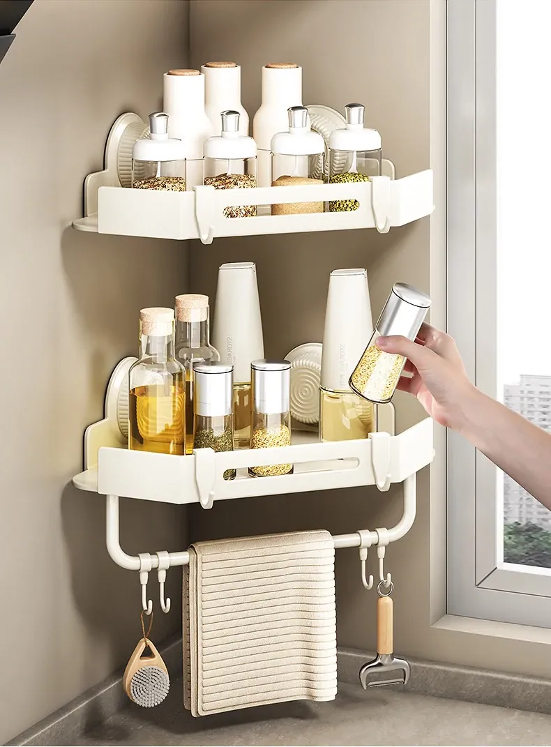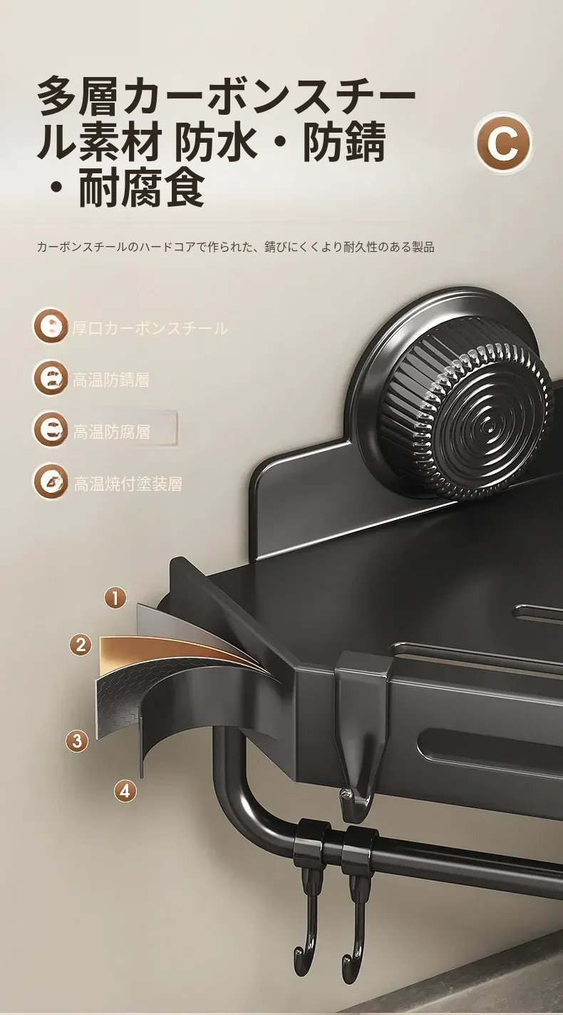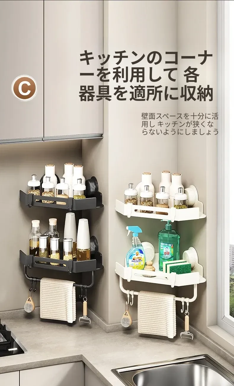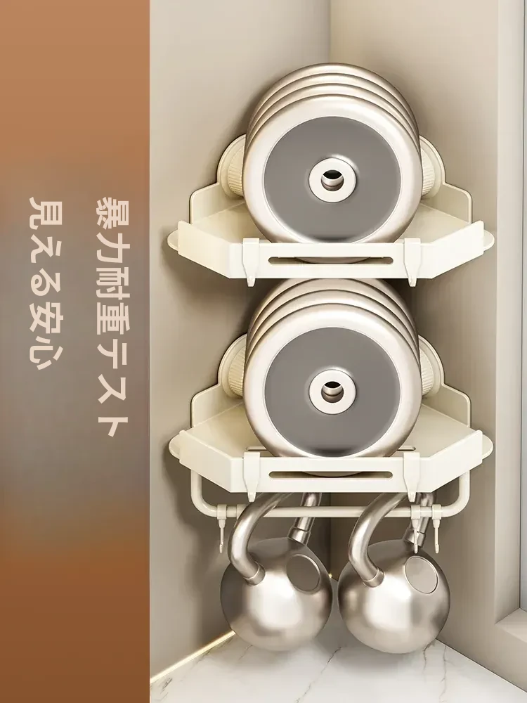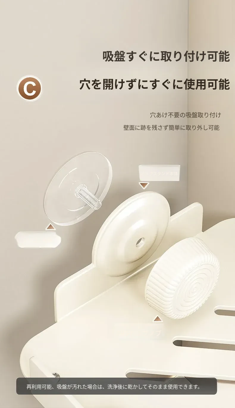 トイレ用吸盤三角収納ラック - 浴室の角にぴったり!穴を開けずに簡単取り付け、洗面台周りをスッキリ整理。使いやすさ抜群の壁掛け収納で、生活をもっと快適に!