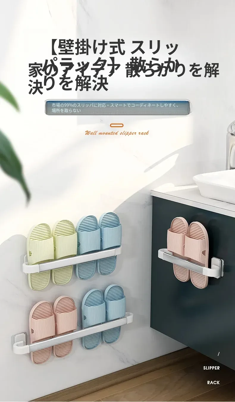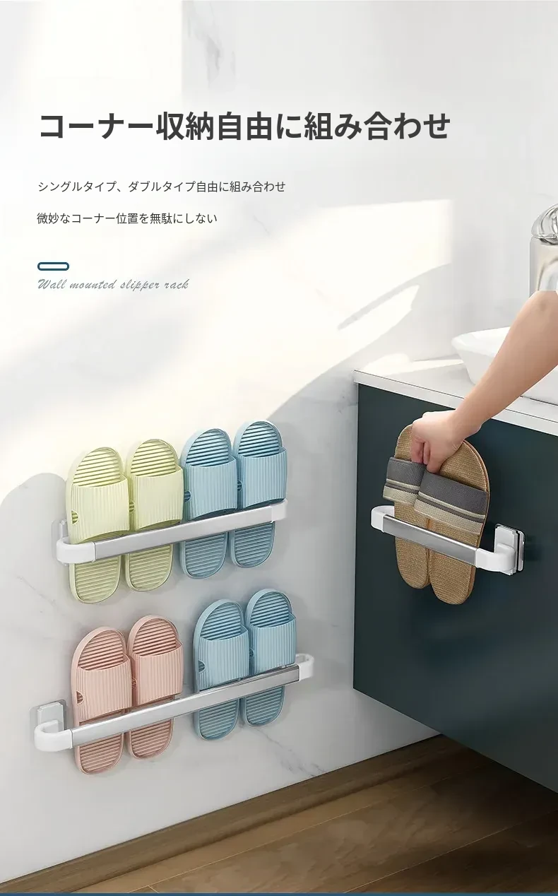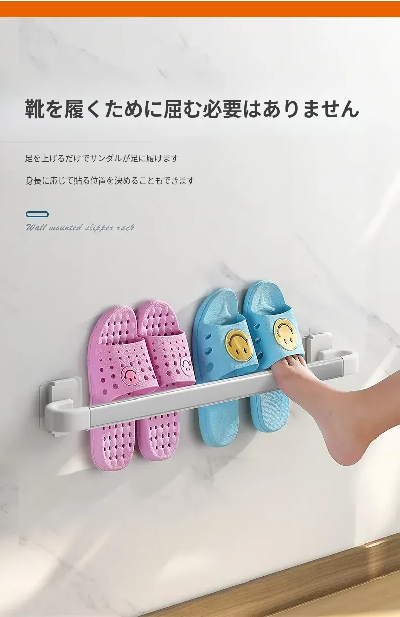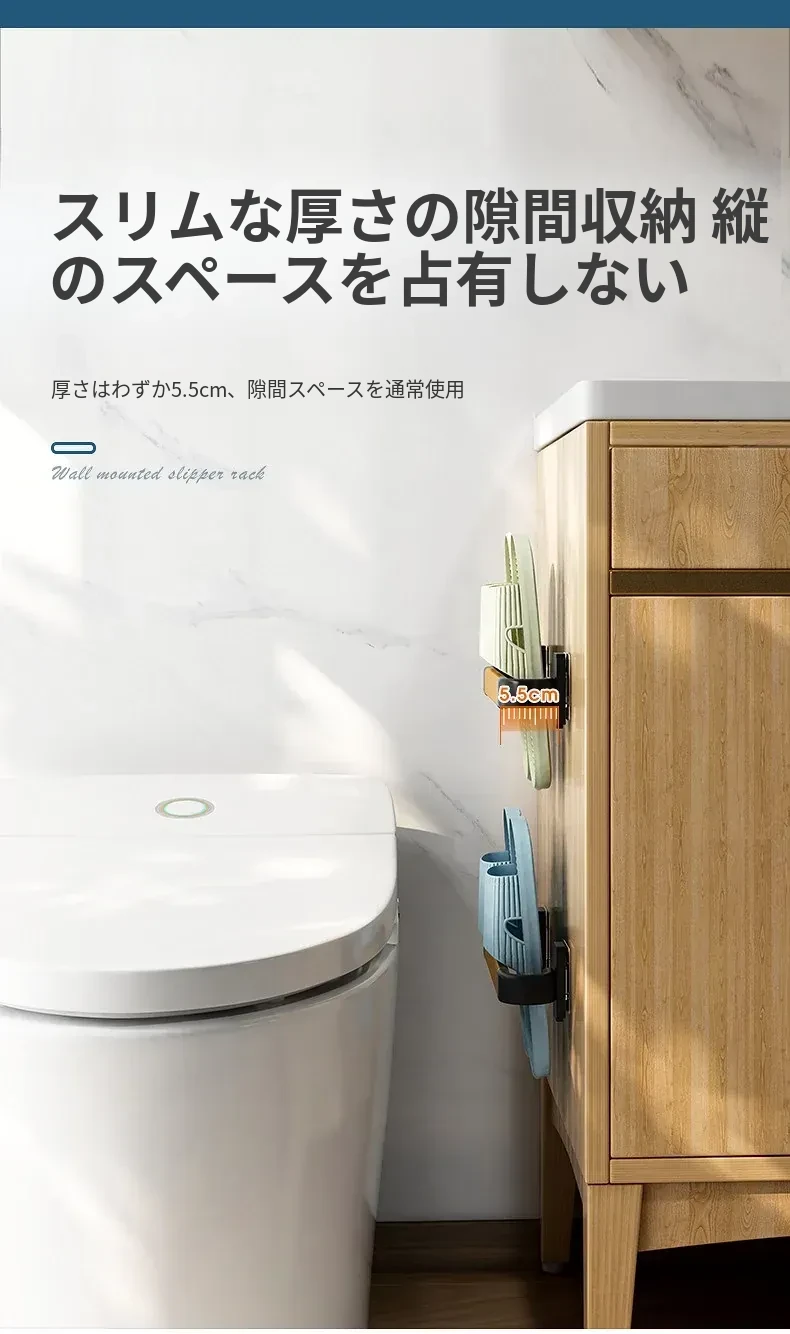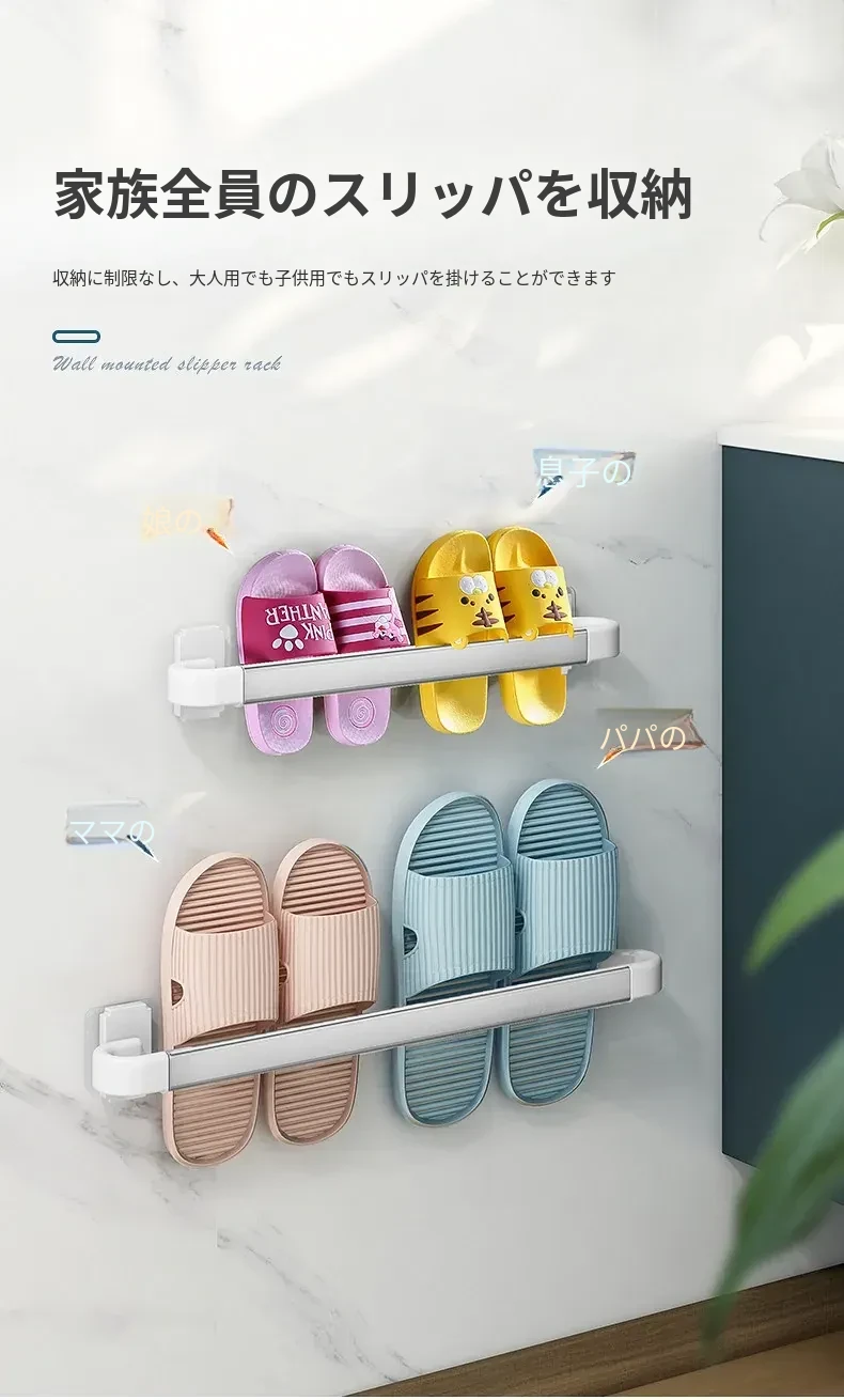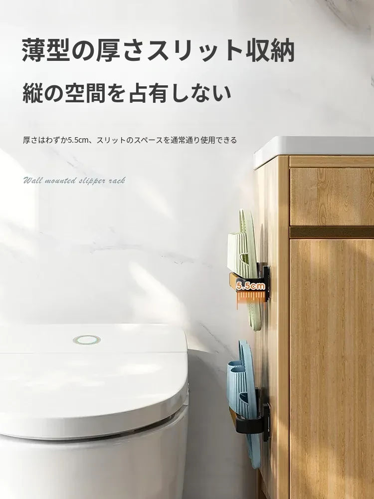 バスルーム用スリッパラック 壁掛け式 取り付け不要!トイレの収納に最適な防水スリッパ収納ハンガー、衛生的でスペースを有効活用!おしゃれで実用的なアイテム!