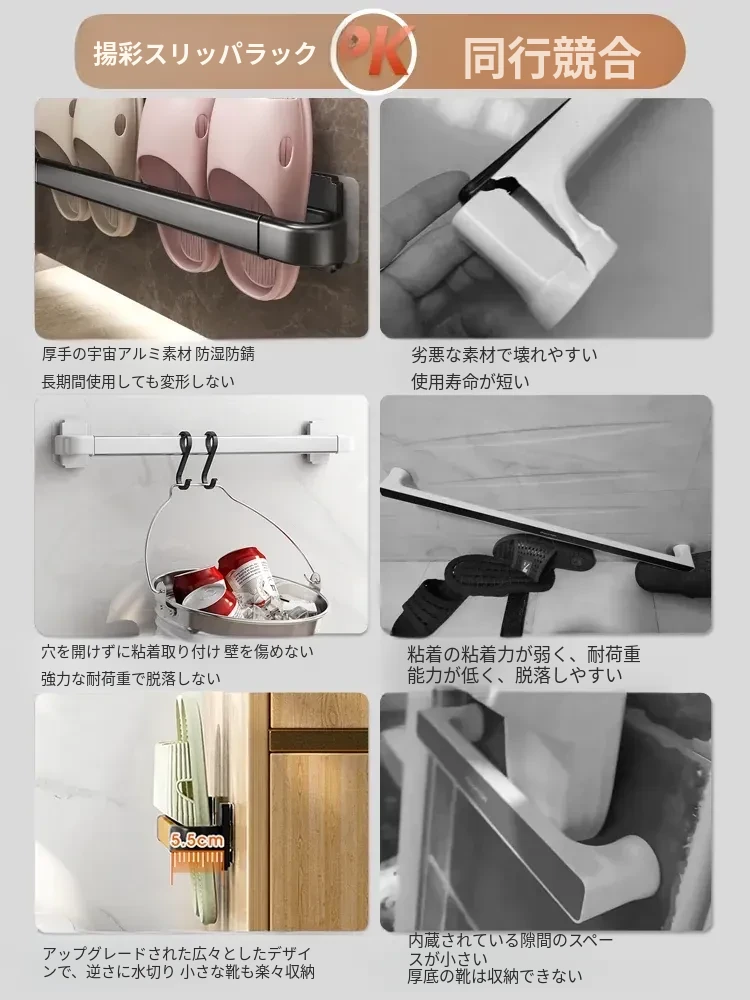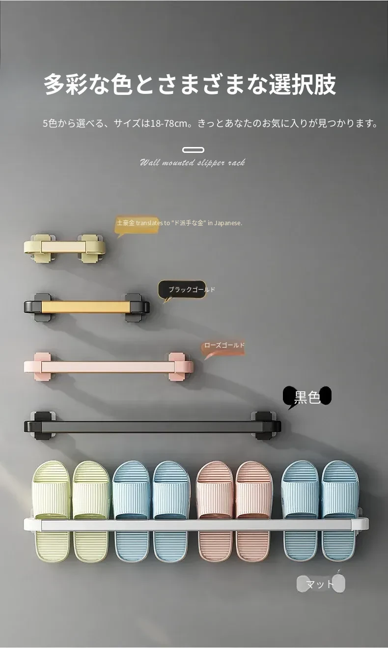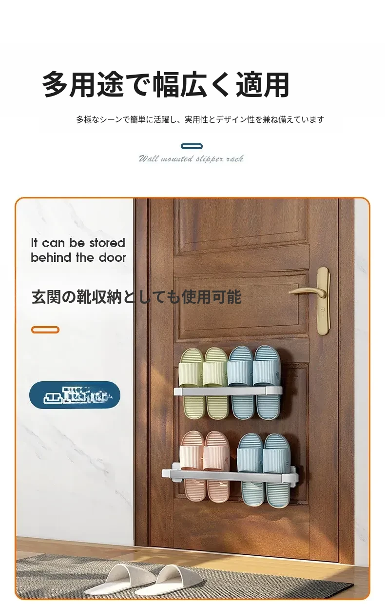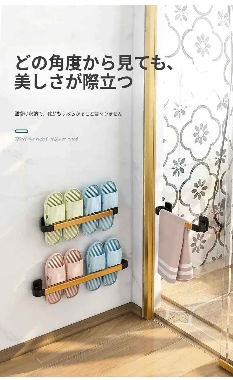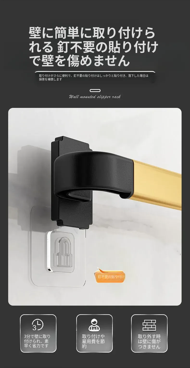 バスルーム用スリッパラック 壁掛け式 取り付け不要!トイレの収納に最適な防水スリッパ収納ハンガー、衛生的でスペースを有効活用!おしゃれで実用的なアイテム!