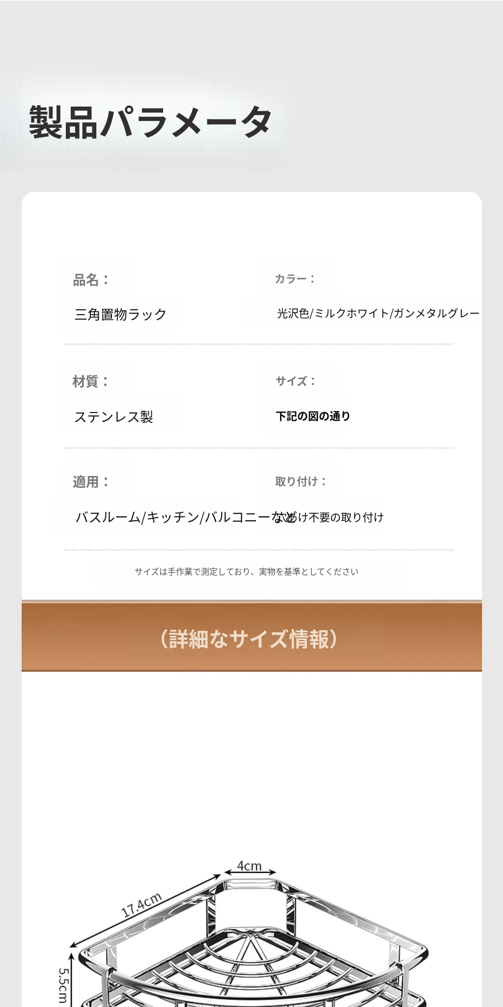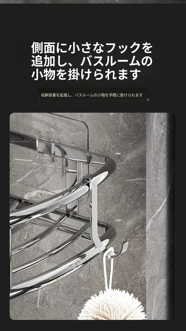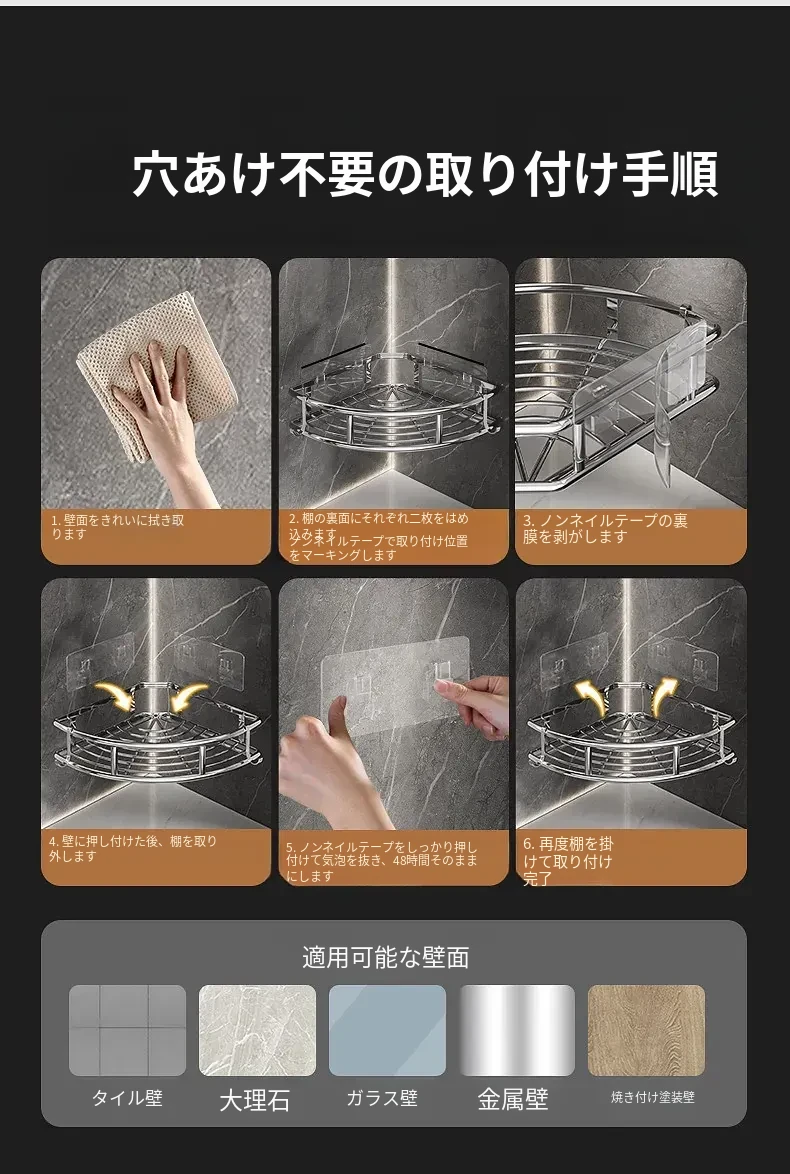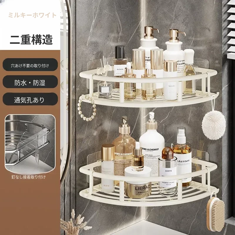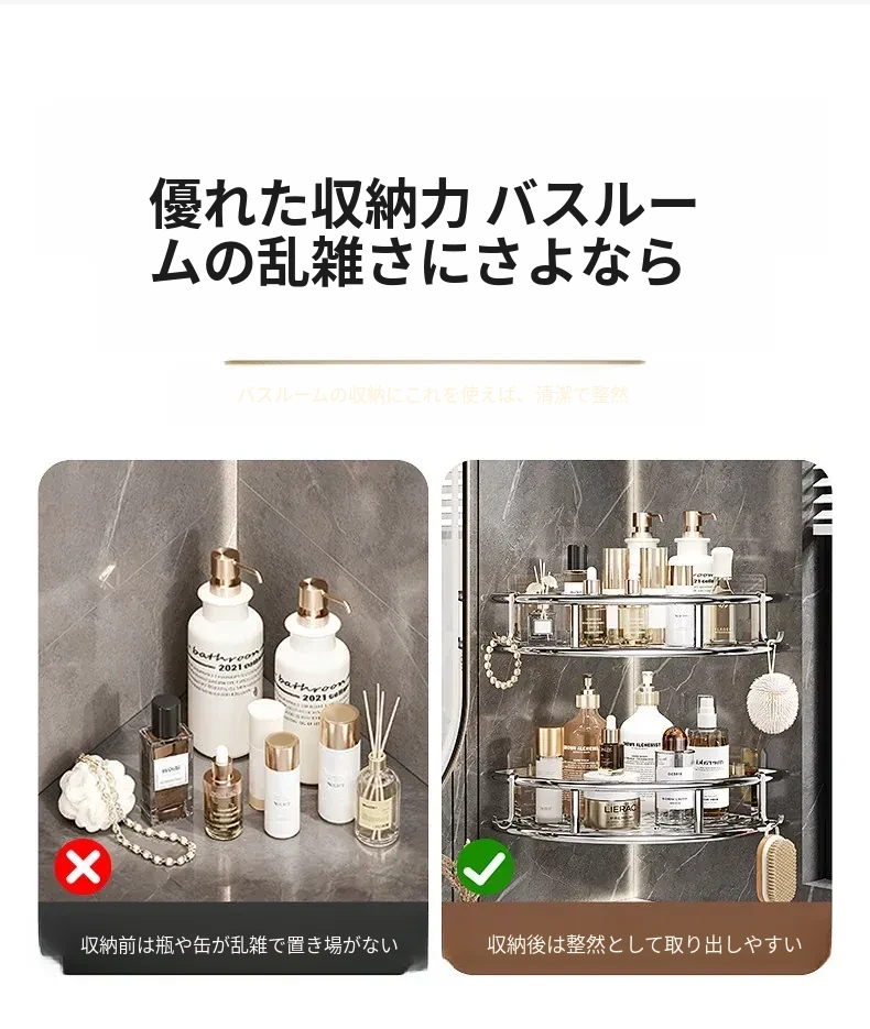 トイレやバスルームに最適!穴開け不要の三角形収納ラック - 洗面台やキッチンにぴったりの壁掛けコーナーシェルフで、スペースを有効活用してすっきり整理!