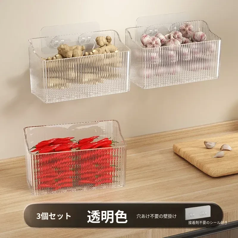 透明ホワイト【3個入り】ねぎしょうがにんにく収納ボックス
