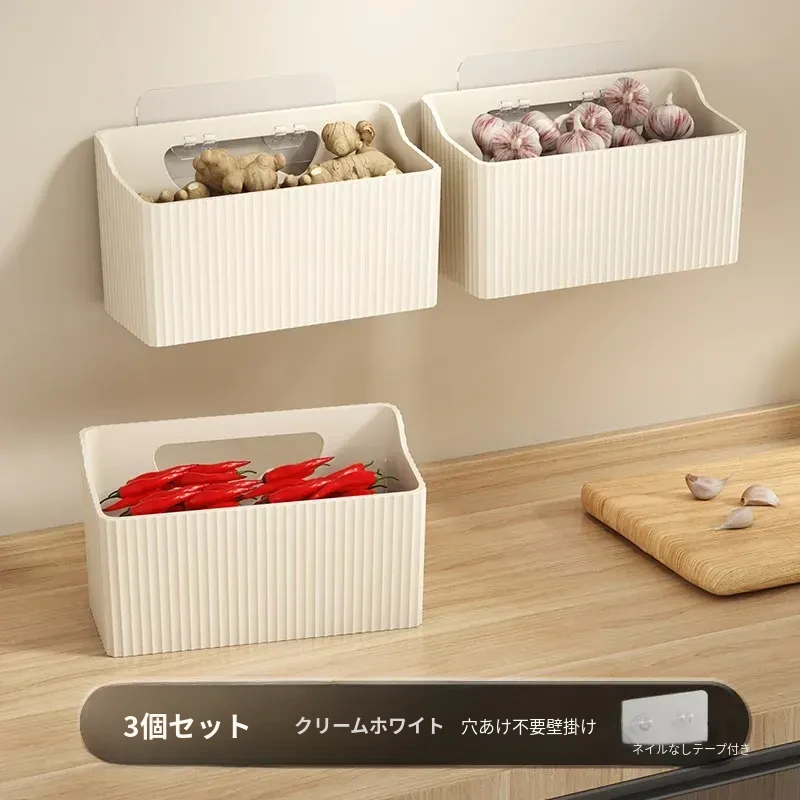 クリームホワイト【3個入り】ねぎしょうがにんにく収納ボックス