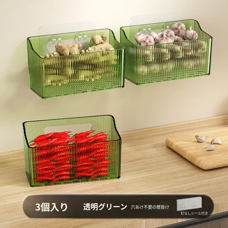 透明グリーン【3個入り】ねぎしょうがにんにく収納ボックス