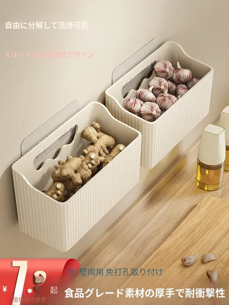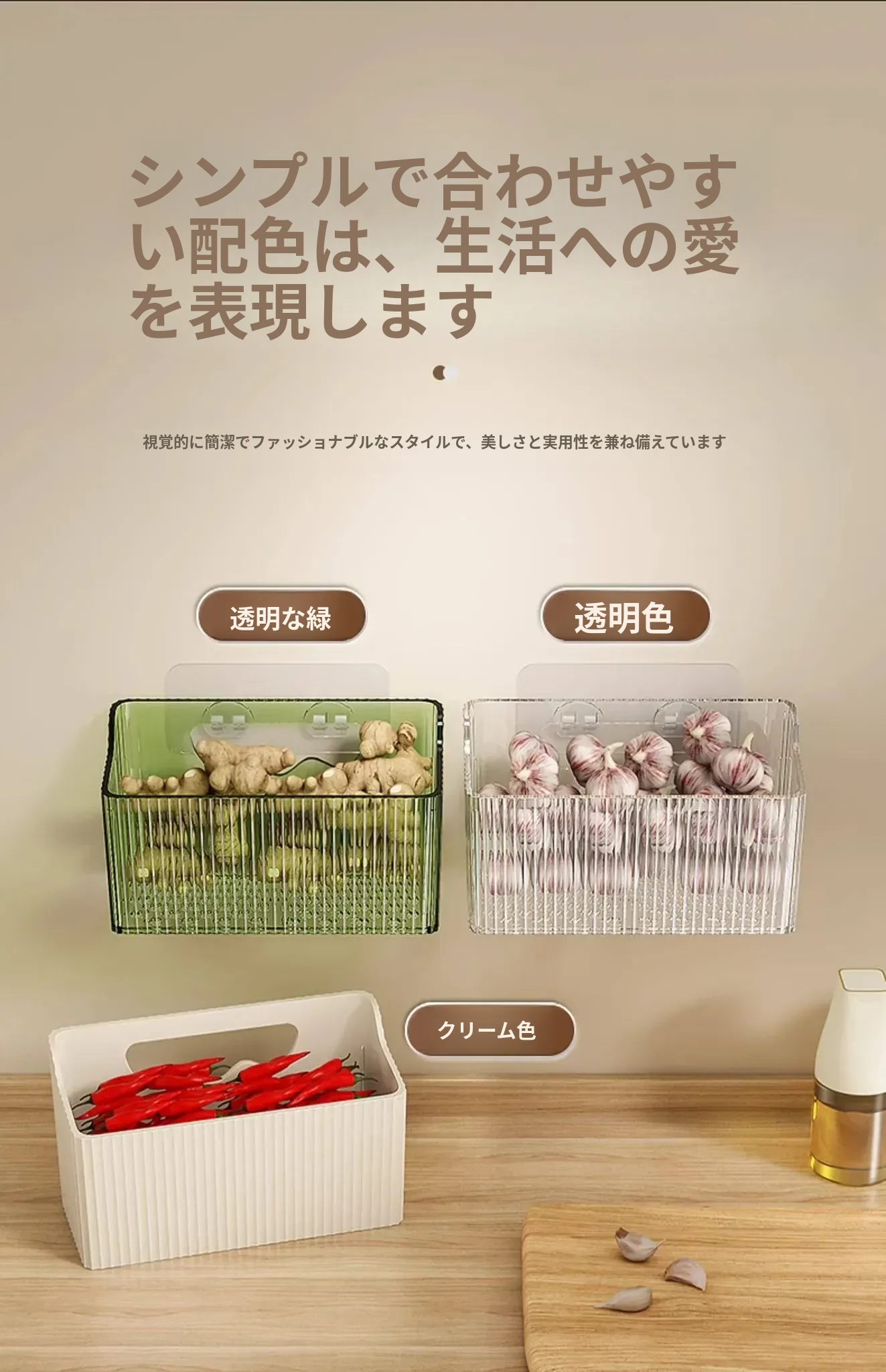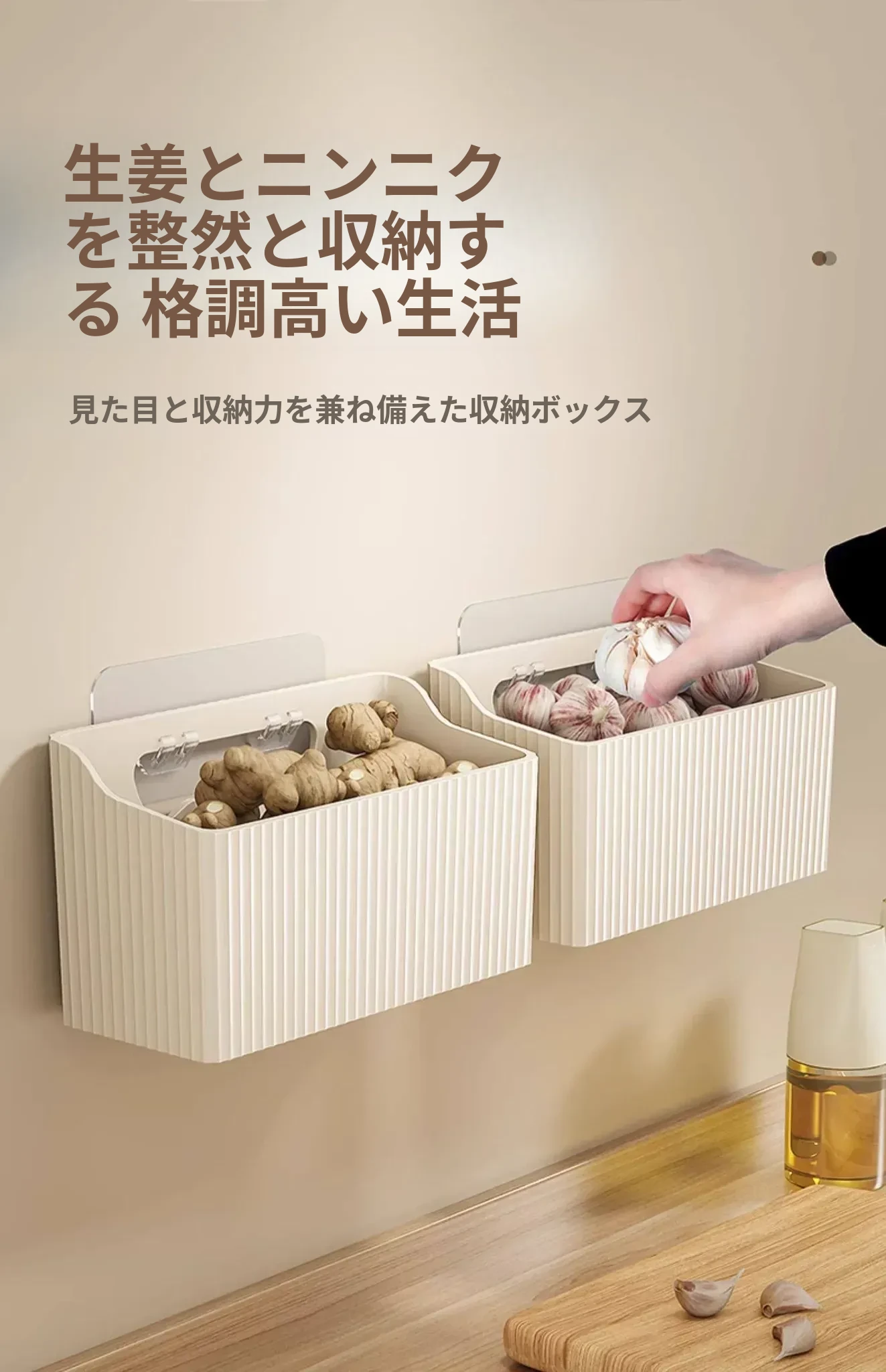 キッチン用ネギ、ショウガ、ニンニク収納ボックス 壁掛け型収納バスケット ニンニクや生姜をスッキリ整理!多機能姜バスケットで調理をもっと便利に!
