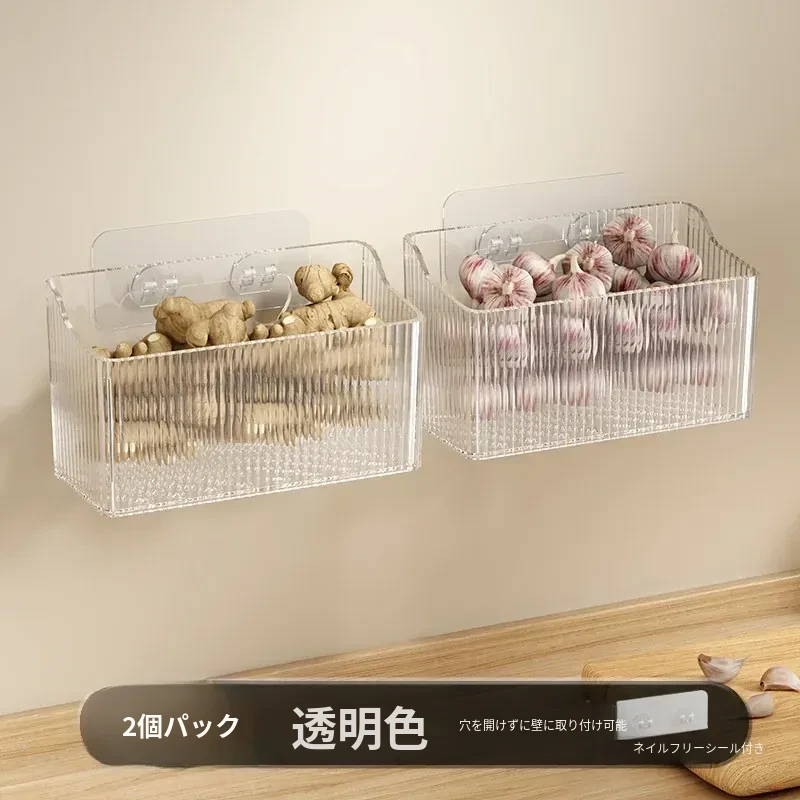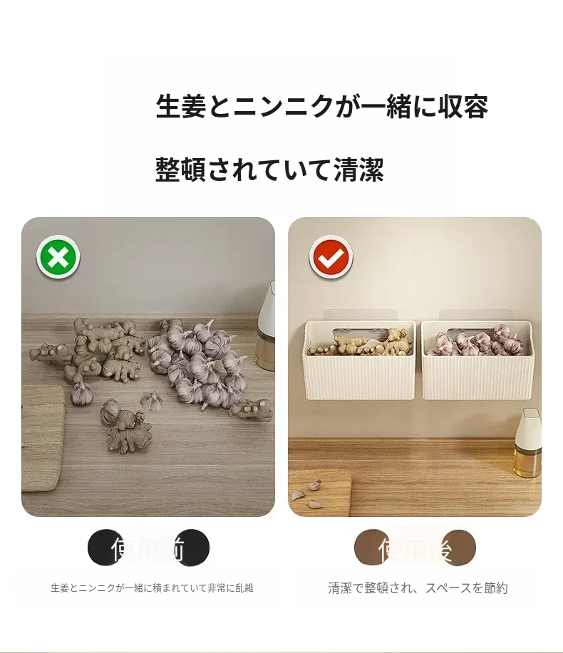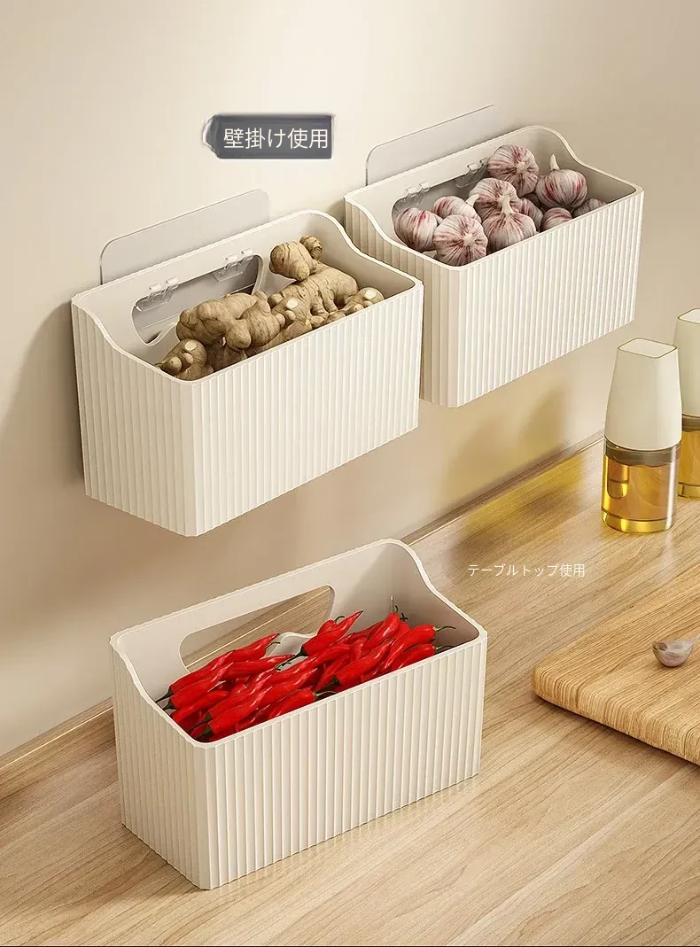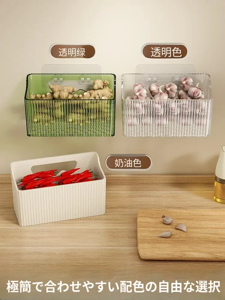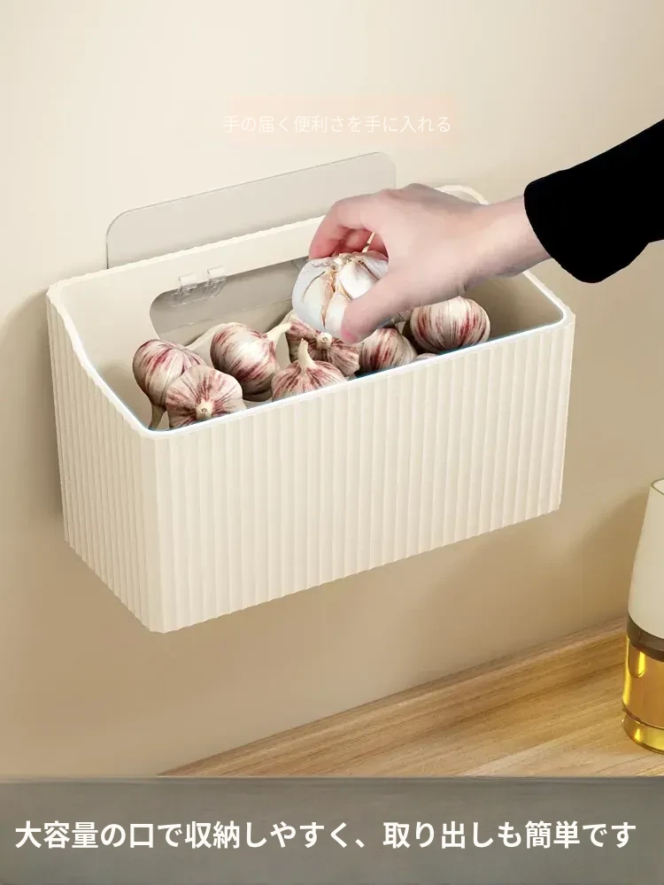 キッチン用ネギ、ショウガ、ニンニク収納ボックス 壁掛け型収納バスケット ニンニクや生姜をスッキリ整理!多機能姜バスケットで調理をもっと便利に!