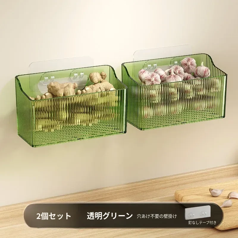 透明グリーン【2個入り】ねぎしょうがにんにく収納ボックス