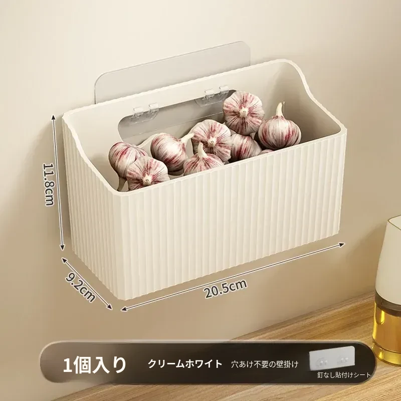 クリームホワイト【1個入り】ねぎしょうがにんにく収納ボックス