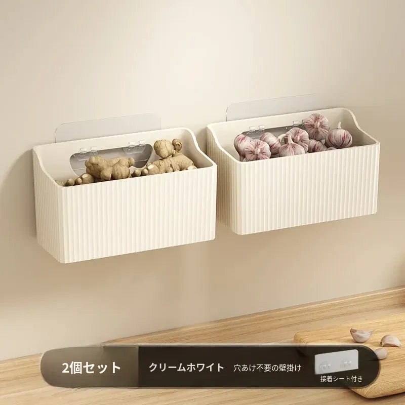 クリームホワイト【2個入り】ねぎしょうがにんにく収納ボックス