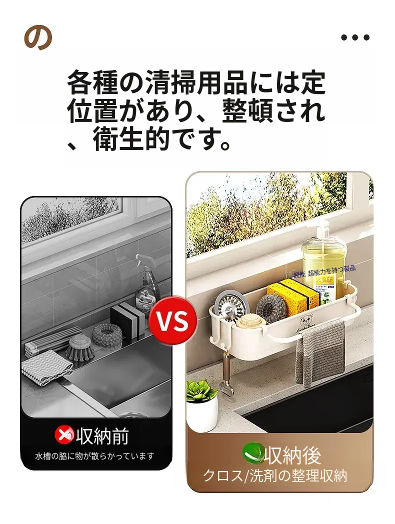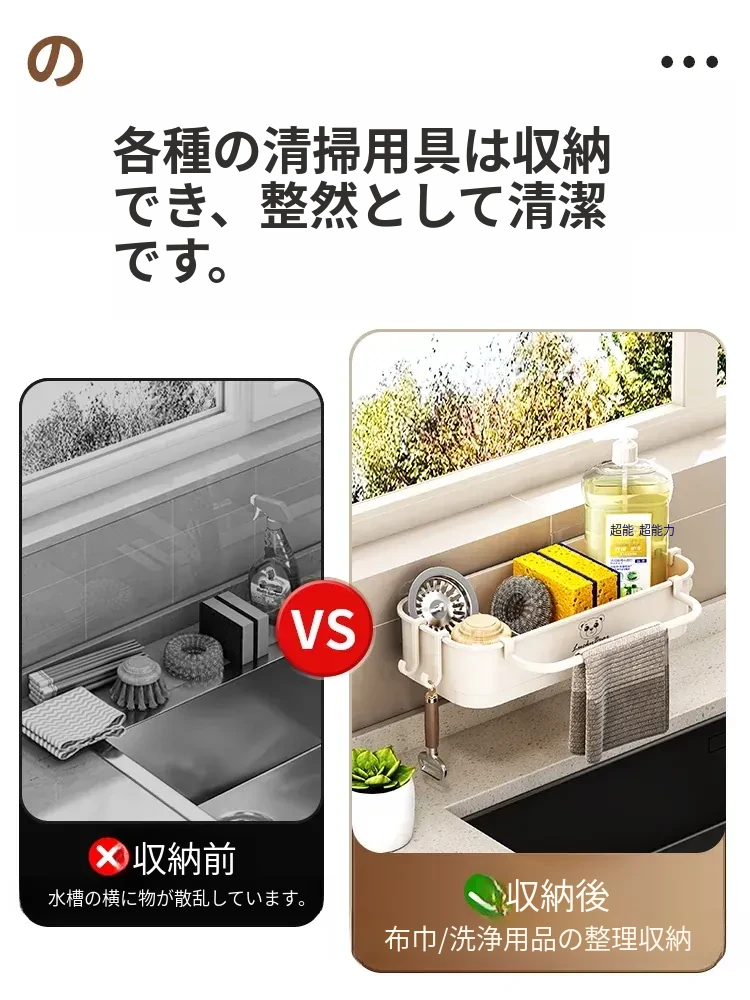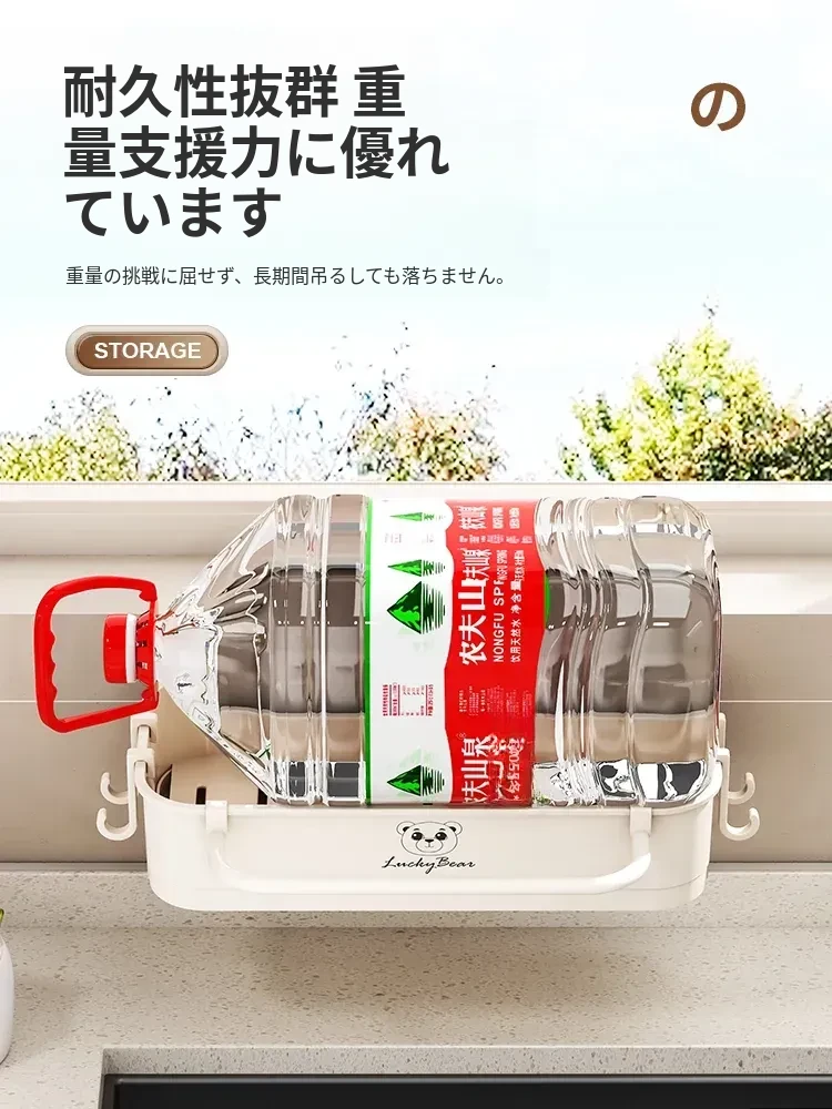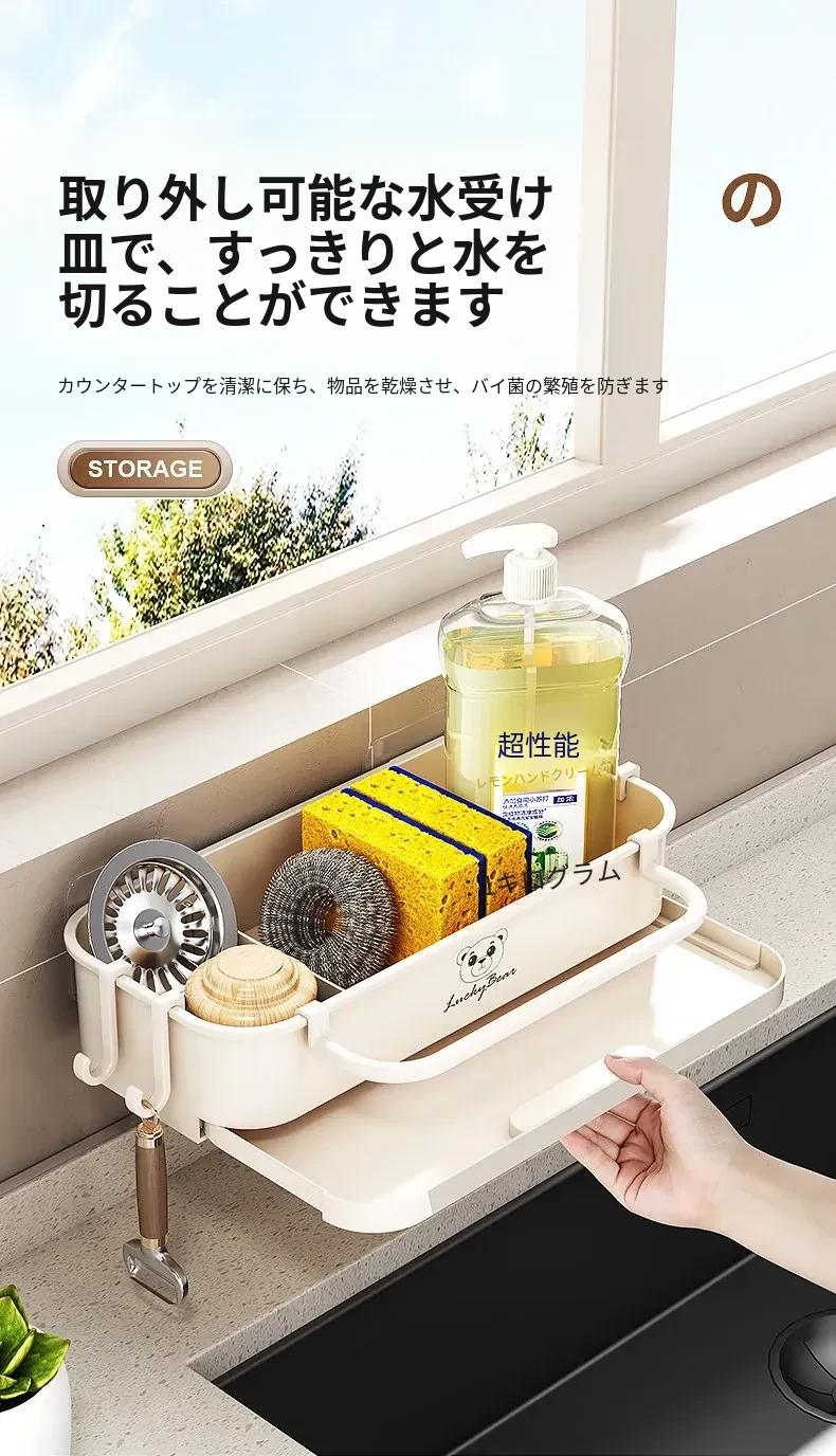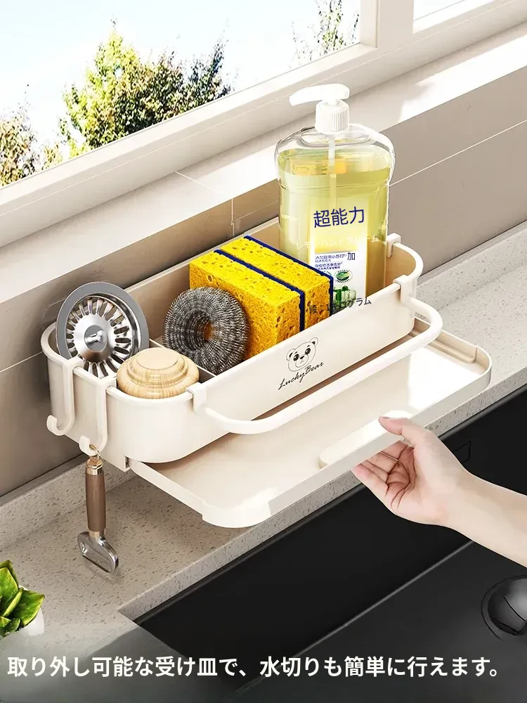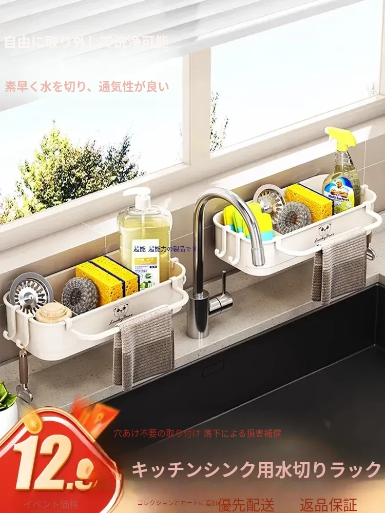 キッチン用取り付け不要のマルチ機能壁掛け収納ラック - 水切りバスケットとスポンジ収納に最適!省スペースで整理整頓も簡単!