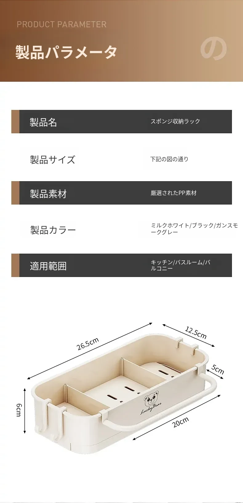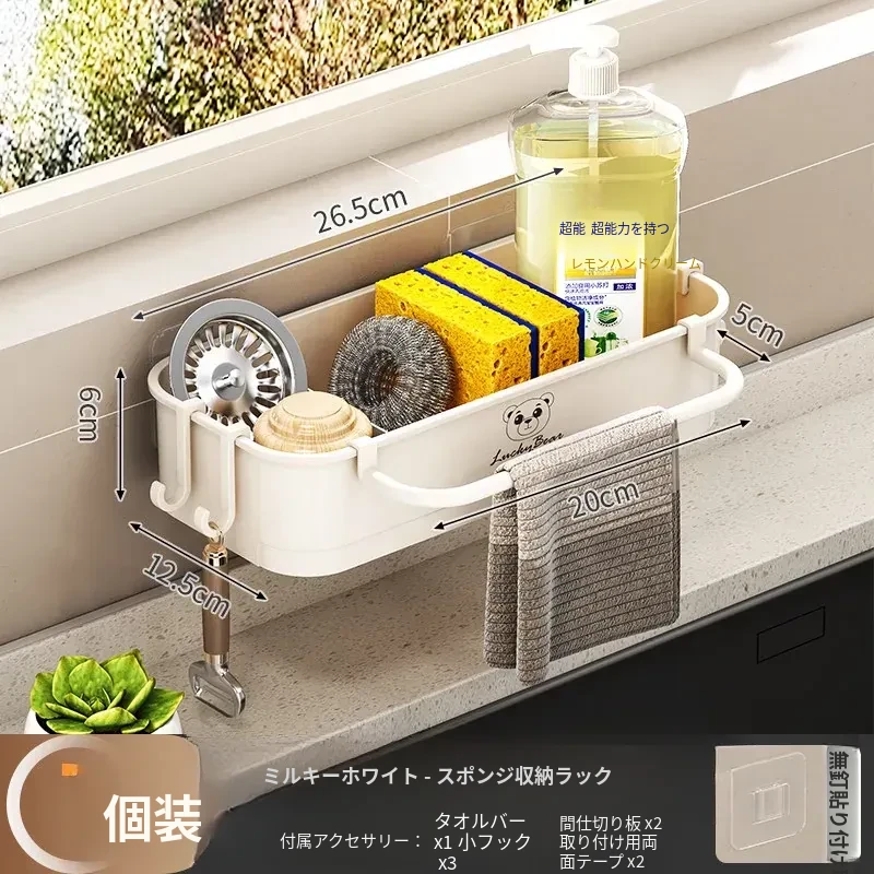 ミルクホワイト【1個入り】クロススポンジ収納ラック