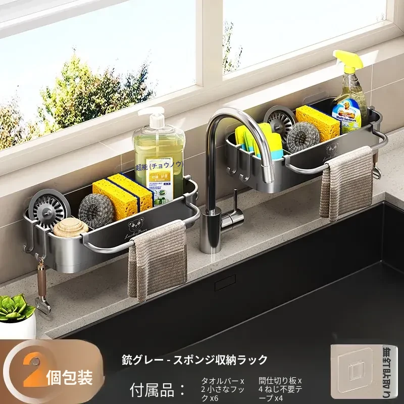 ガンメタル【2個入り】クロススポンジ収納ラック