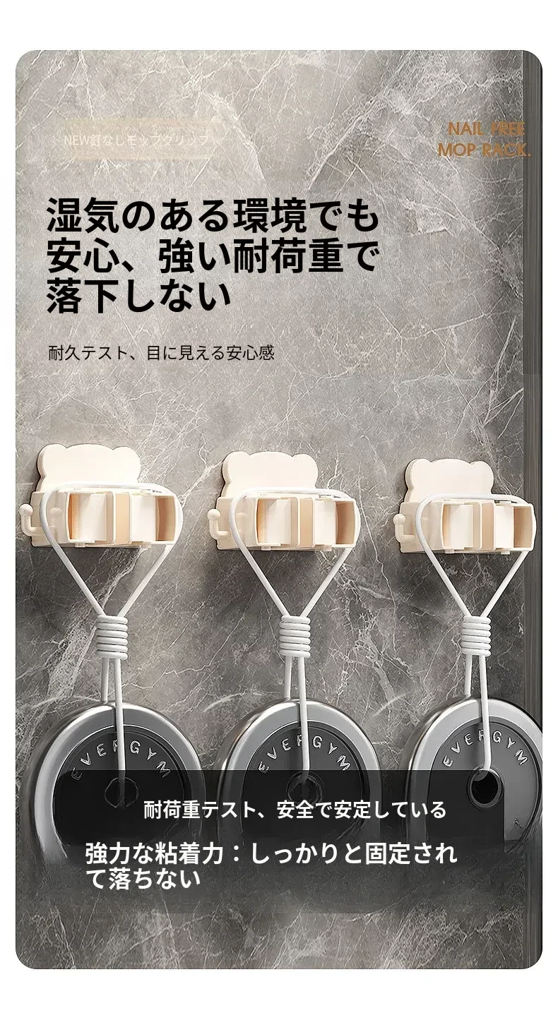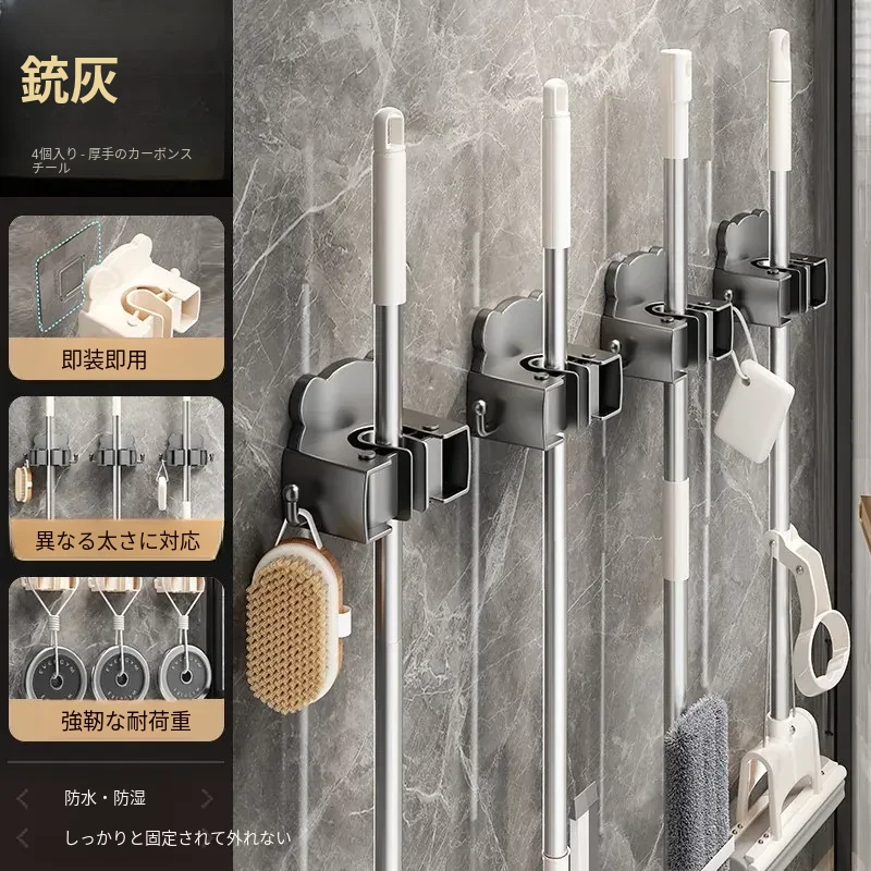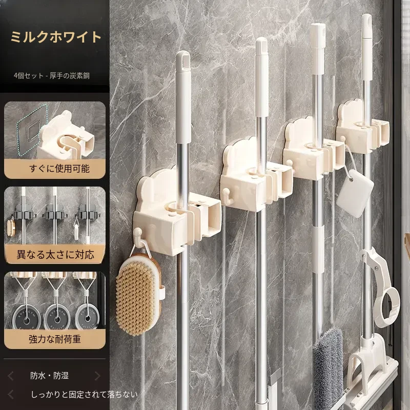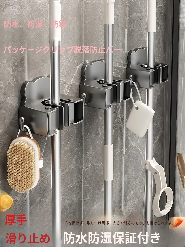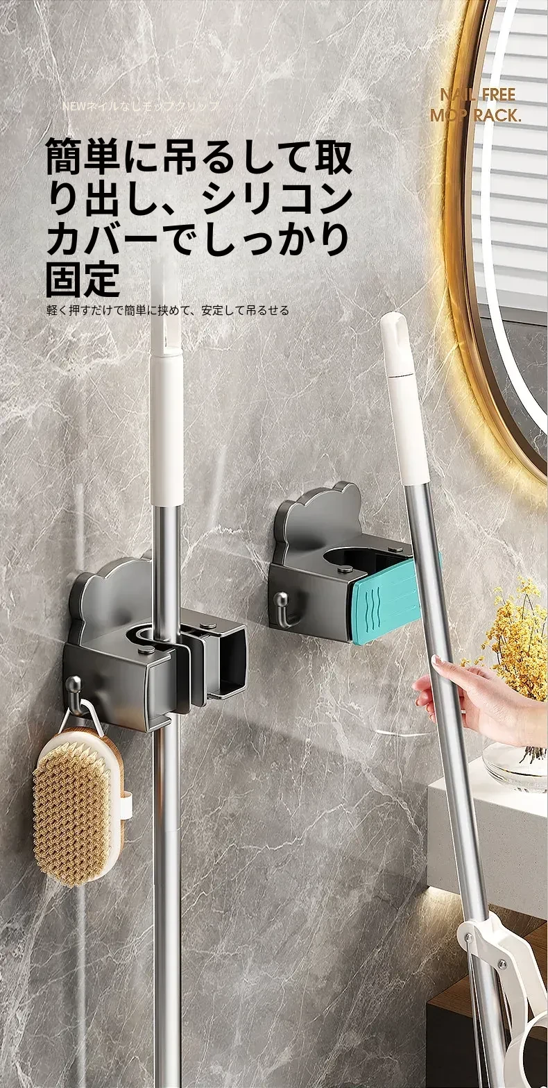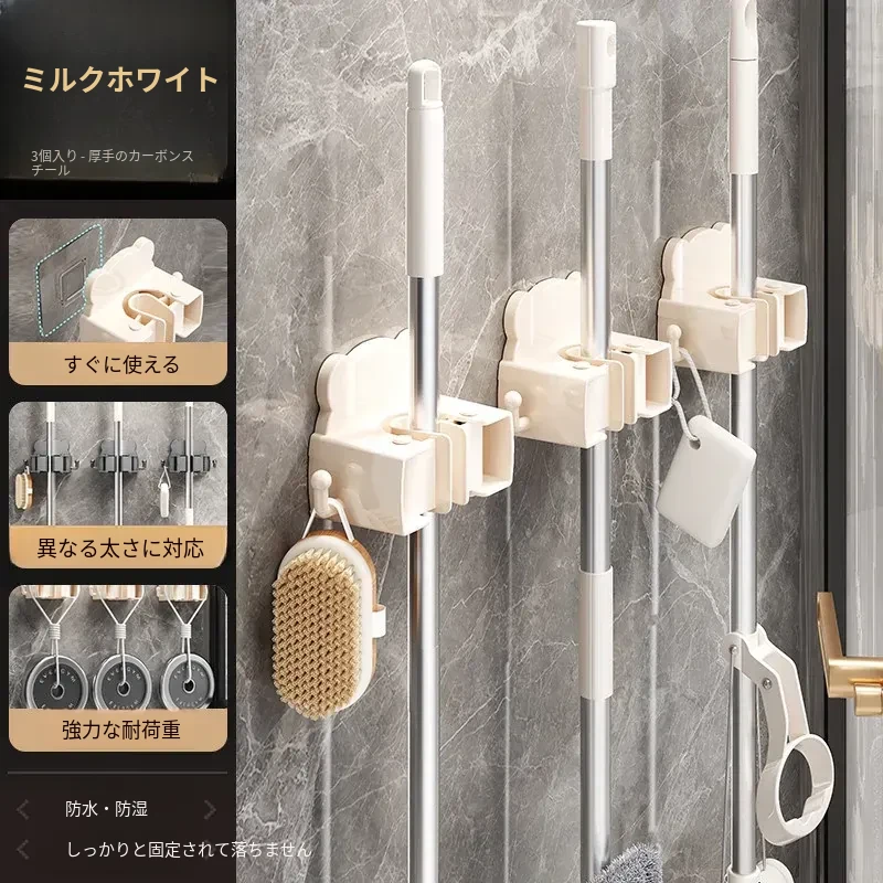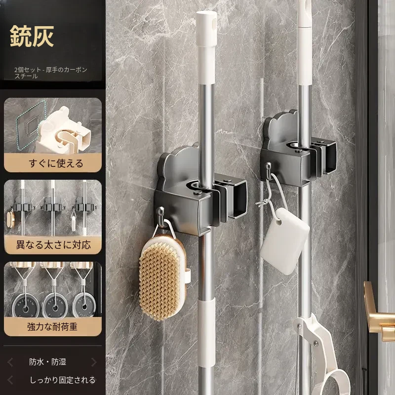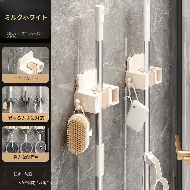 トイレ用モップ壁掛けクリップ - 便利な粘着フックで、掃除道具をスマートに収納!穴あけ不要で取り付け簡単、浴室も整頓!お掃除がもっと楽しくなる必須アイテム!