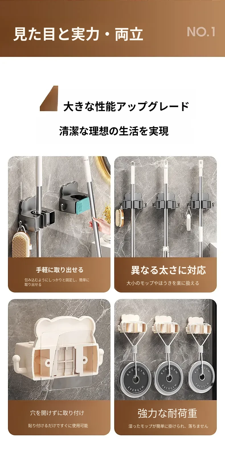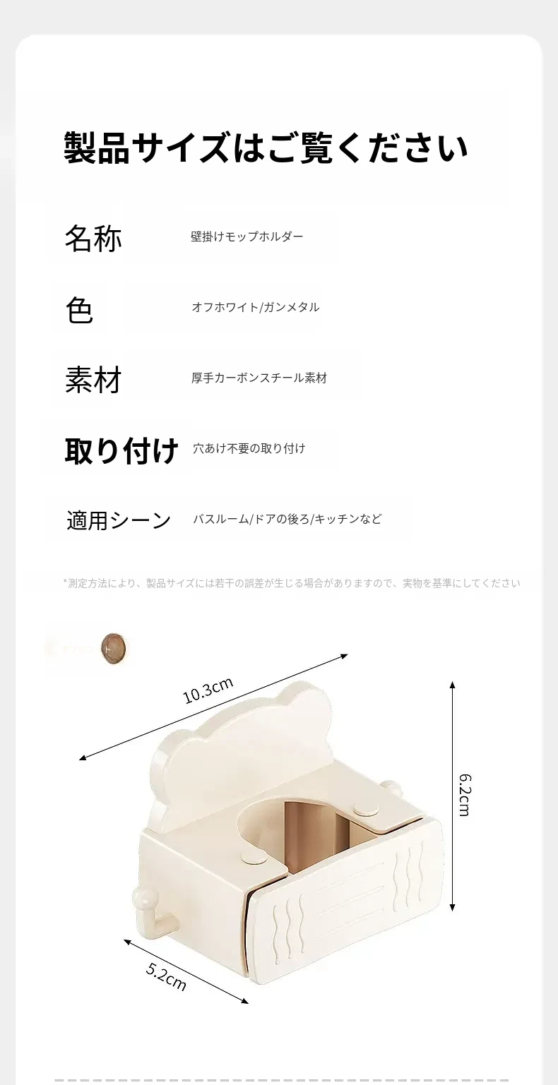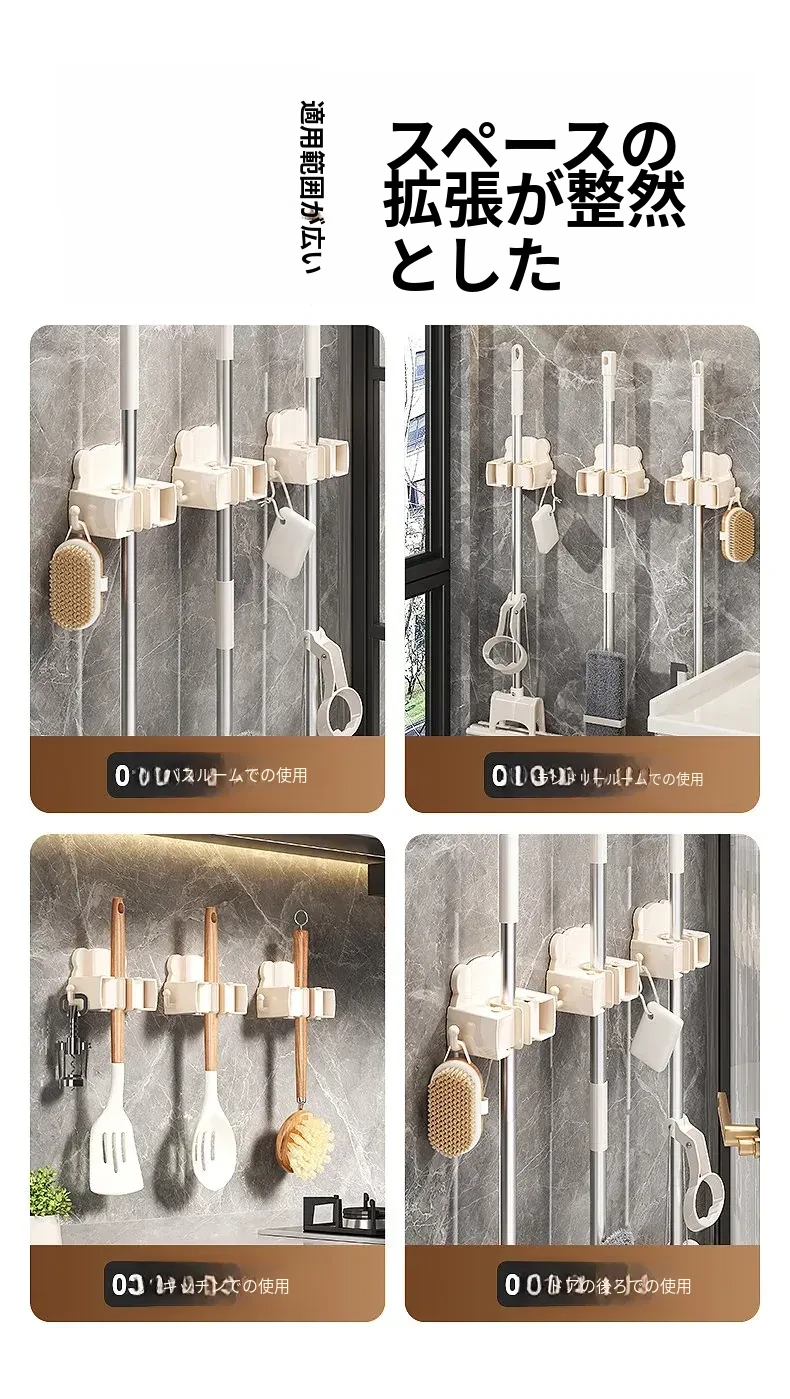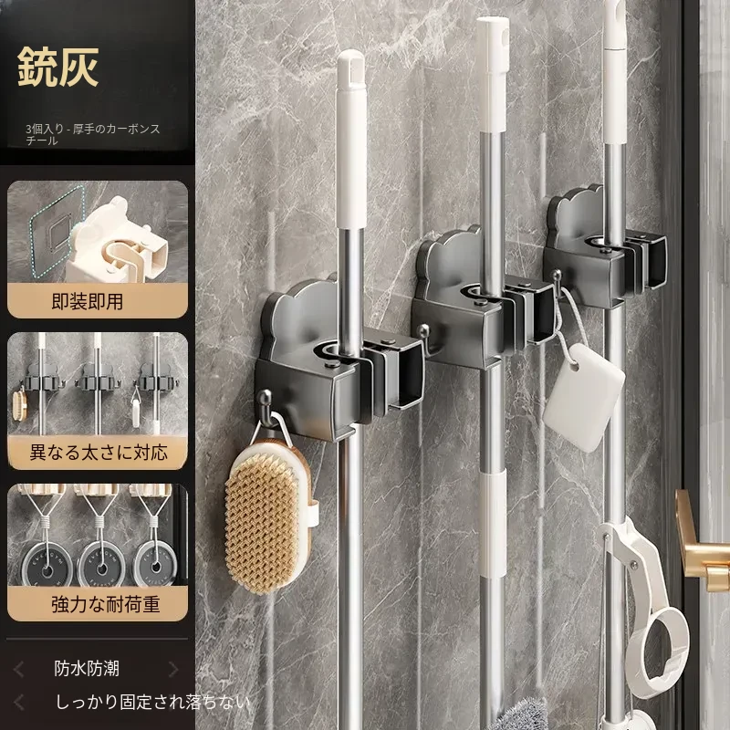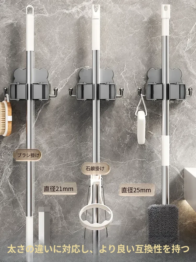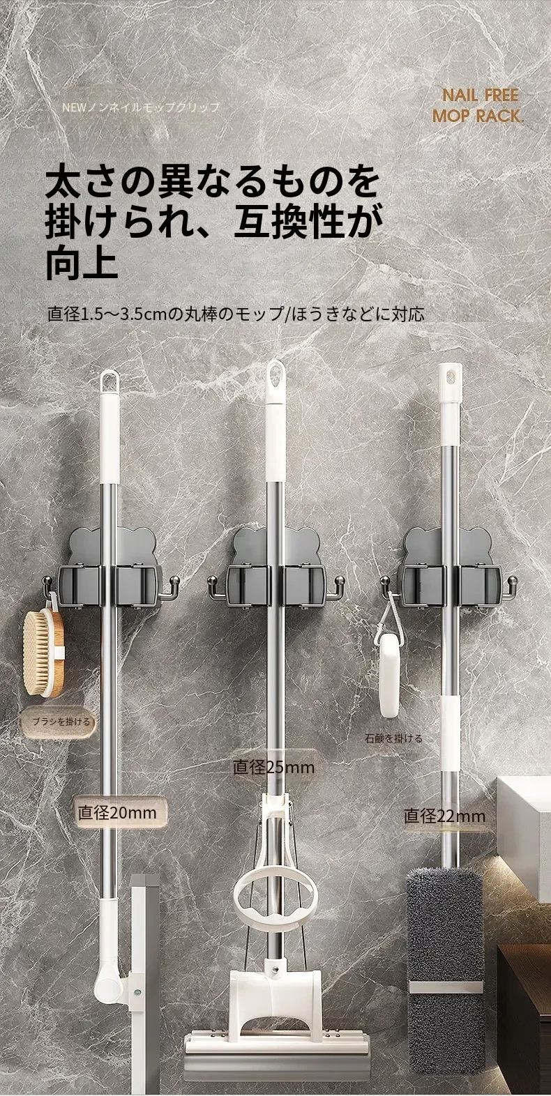 トイレ用モップ壁掛けクリップ - 便利な粘着フックで、掃除道具をスマートに収納!穴あけ不要で取り付け簡単、浴室も整頓!お掃除がもっと楽しくなる必須アイテム!