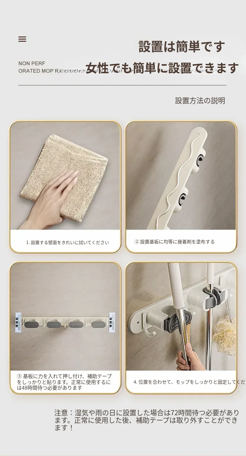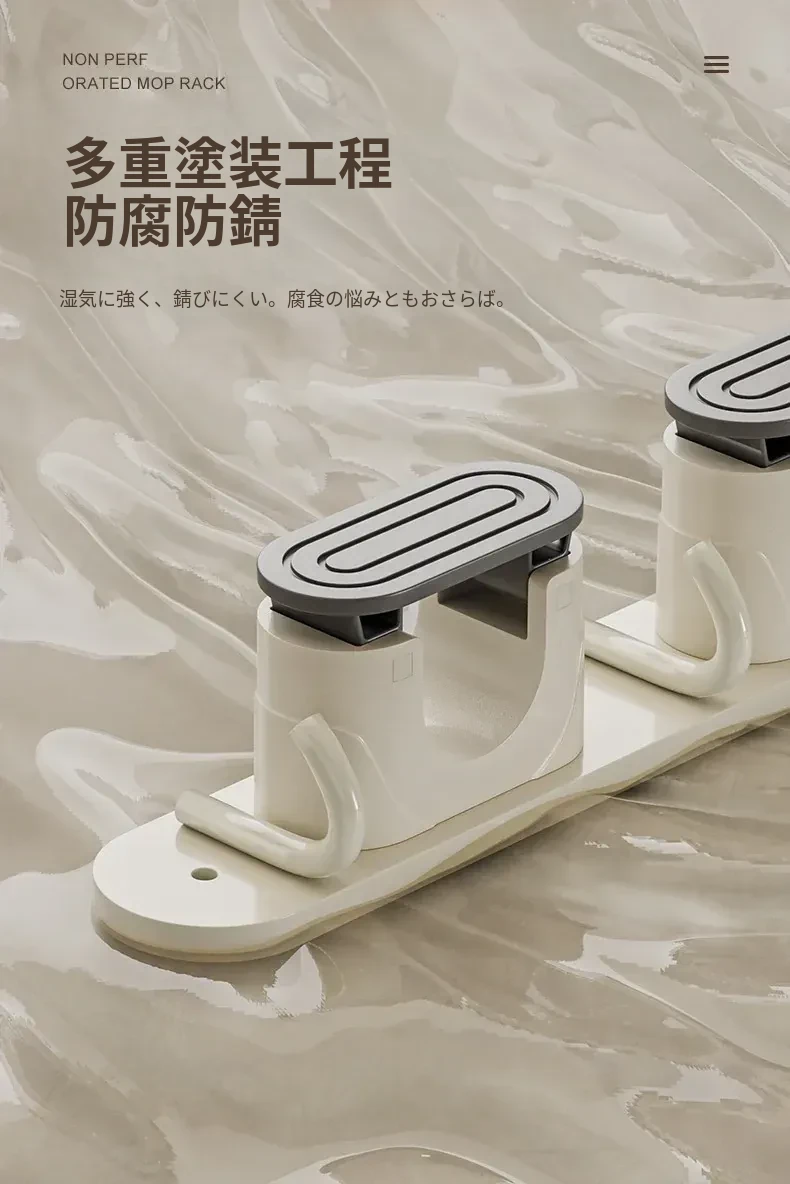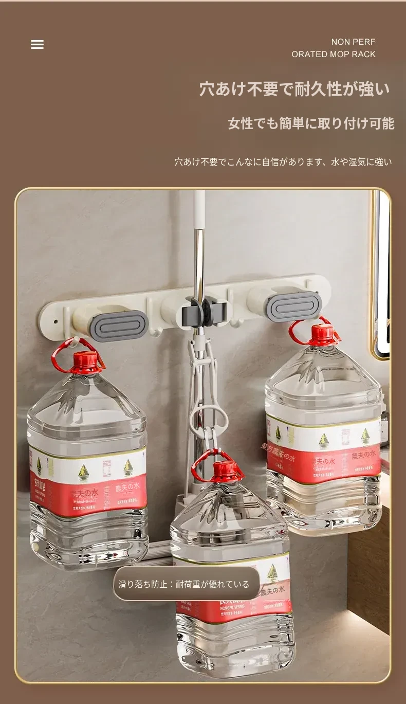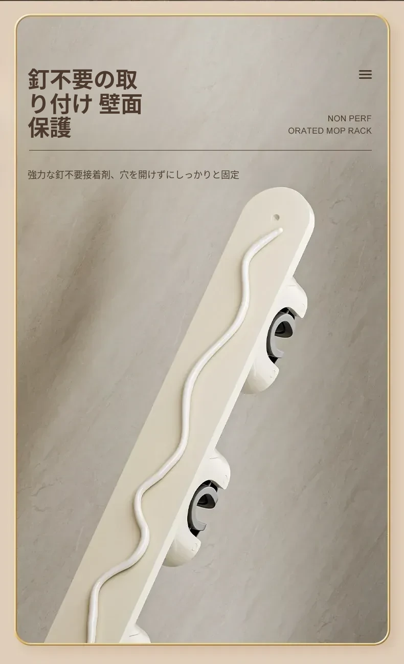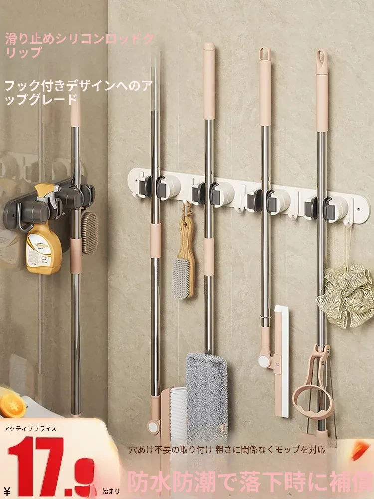 壁掛けモップクリップフック - 穴あけ不要!トイレ用モップやほうきをすっきり収納できる便利な収納ラック。省スペースで整理整頓を実現!お掃除がもっと楽になるアイテムです!
