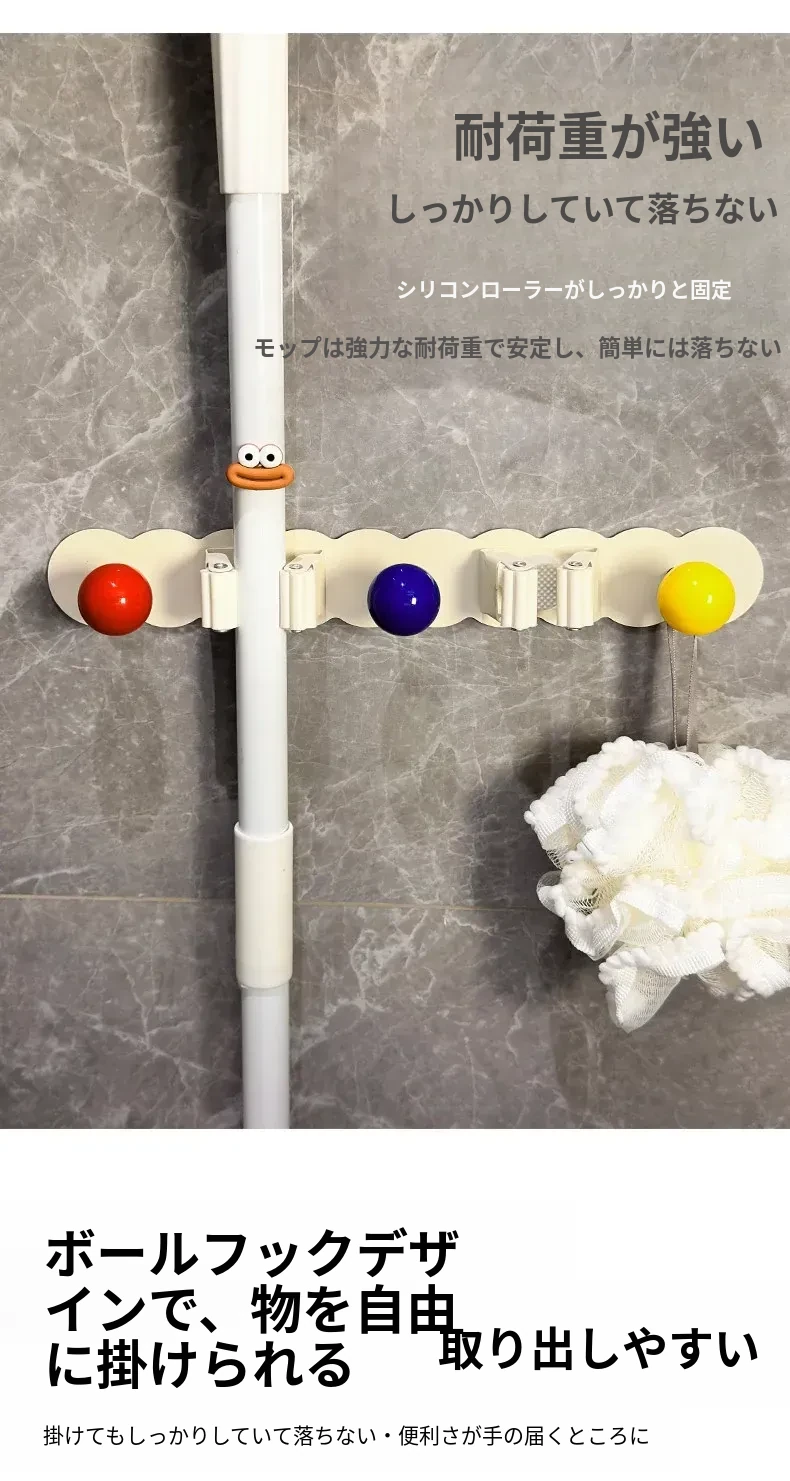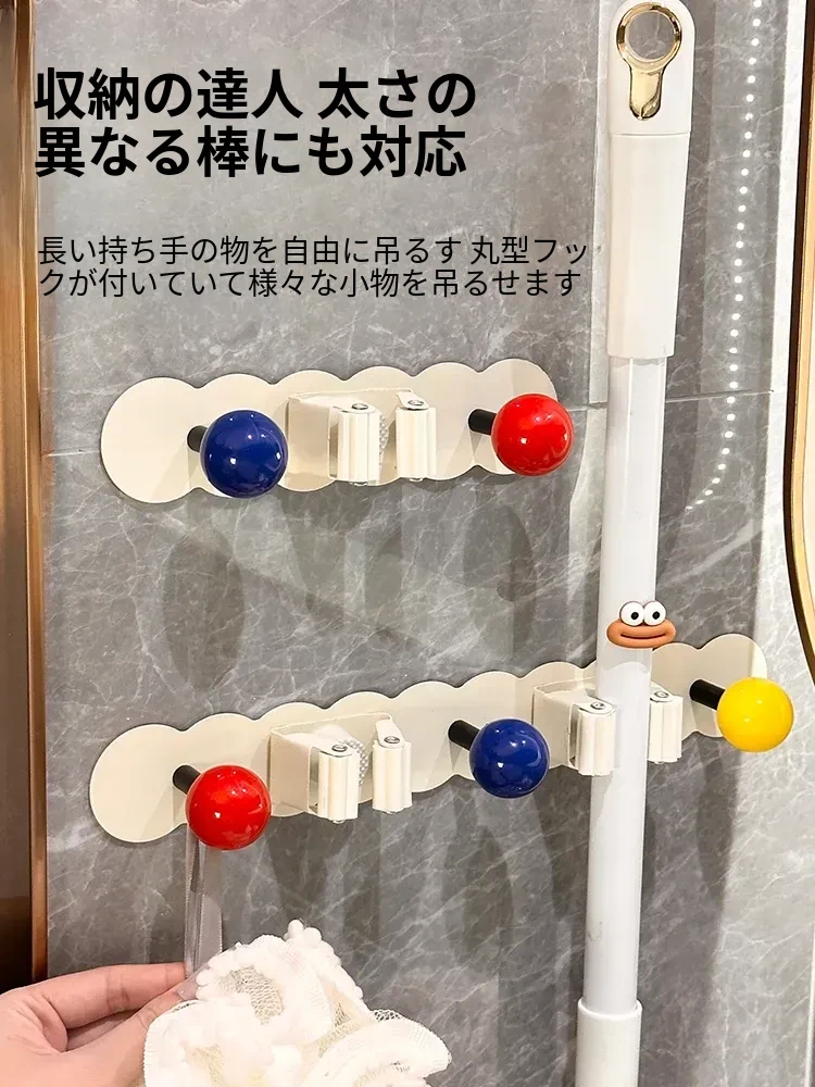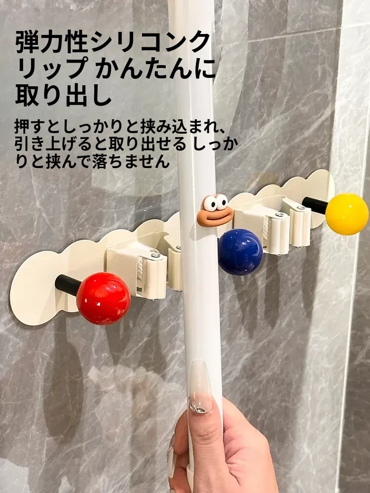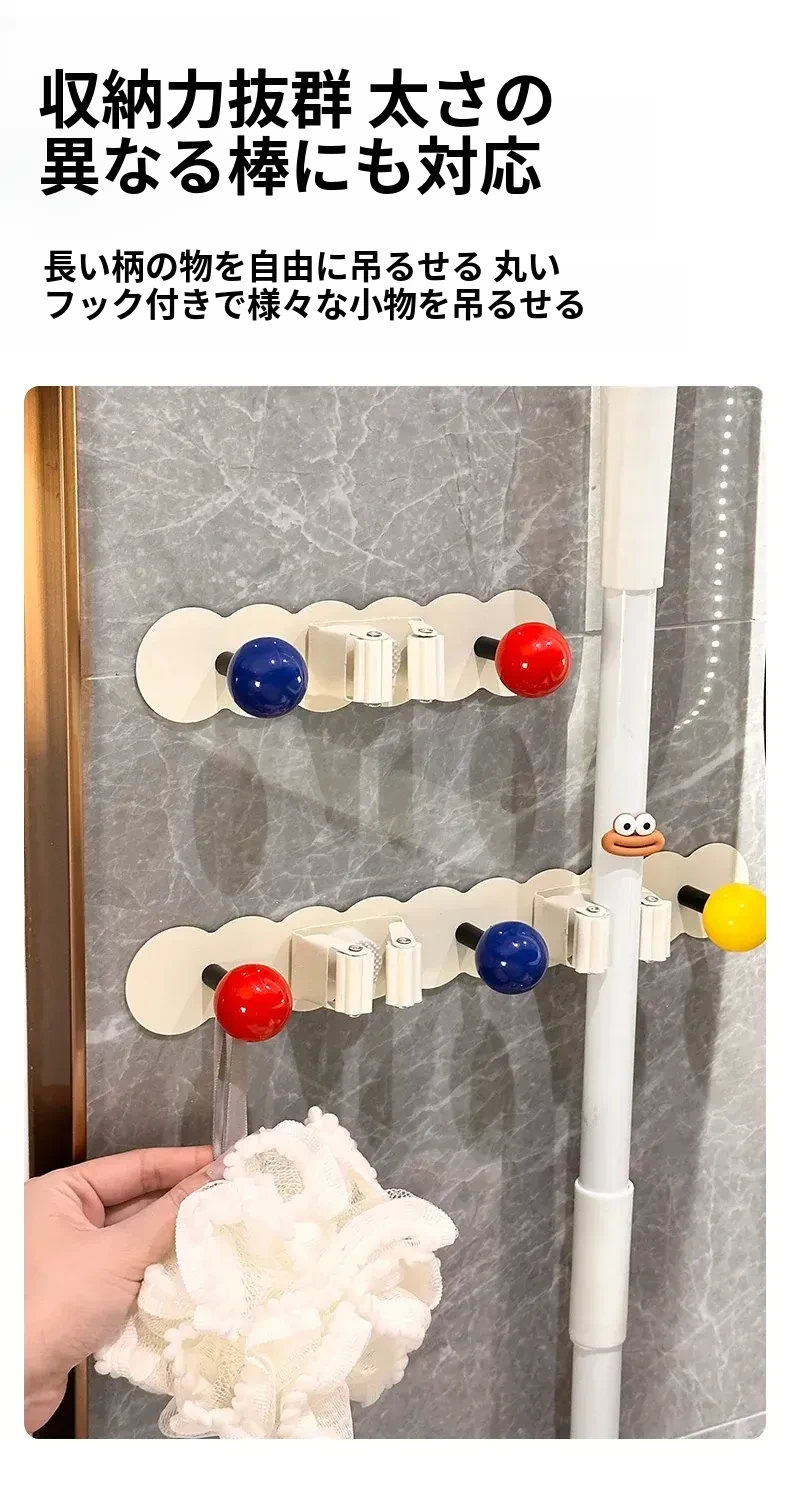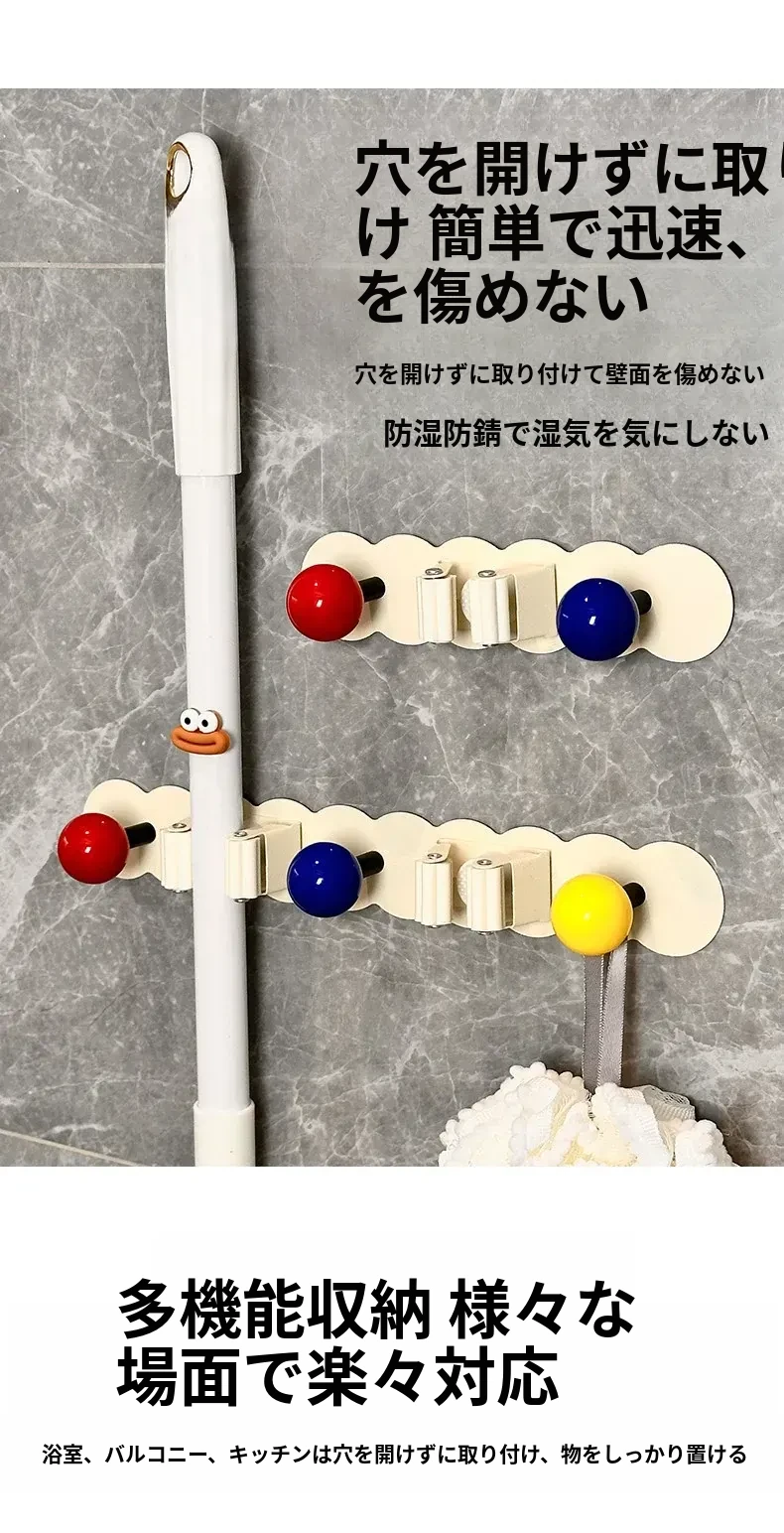 壁掛けモップホルダー - 穴あけ不要!おしゃれな収納アイテムで、トイレやキッチンをスッキリ整理。掃除道具をしっかり固定でき、使いやすさ抜群の便利グッズ!