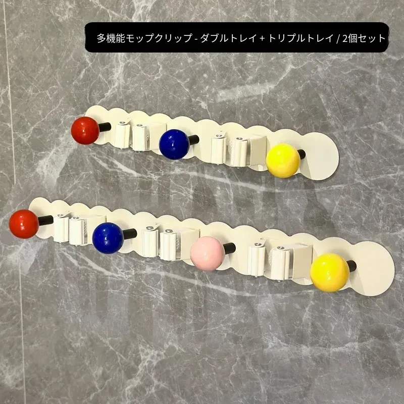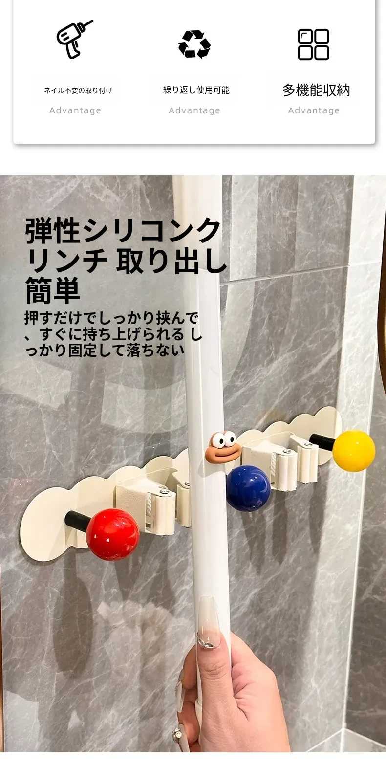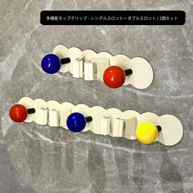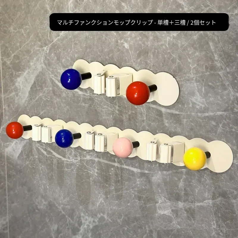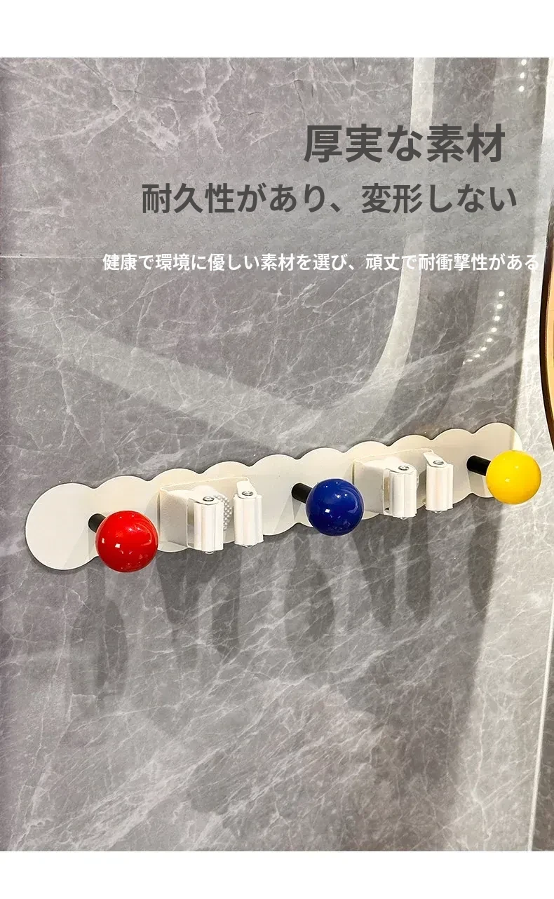 壁掛けモップホルダー - 穴あけ不要!おしゃれな収納アイテムで、トイレやキッチンをスッキリ整理。掃除道具をしっかり固定でき、使いやすさ抜群の便利グッズ!