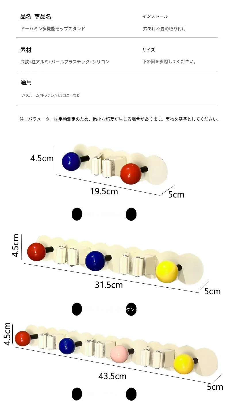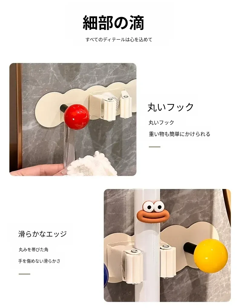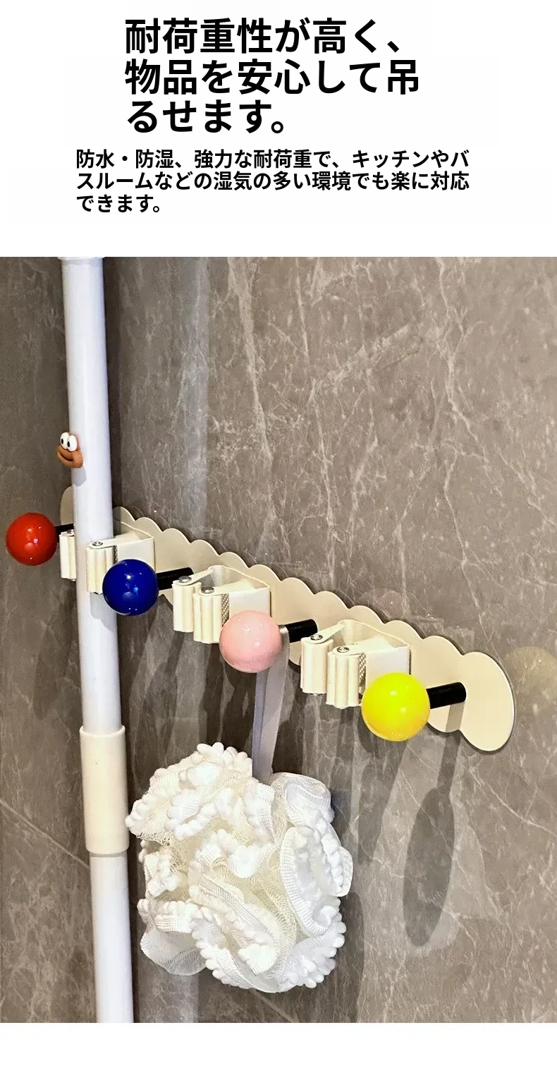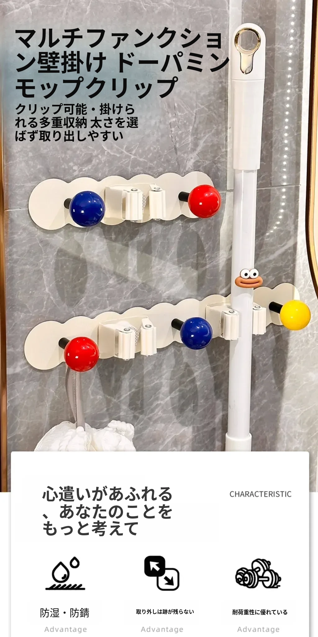 壁掛けモップホルダー - 穴あけ不要!おしゃれな収納アイテムで、トイレやキッチンをスッキリ整理。掃除道具をしっかり固定でき、使いやすさ抜群の便利グッズ!