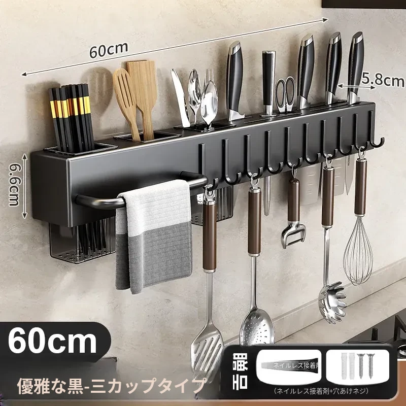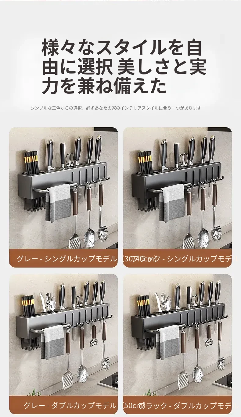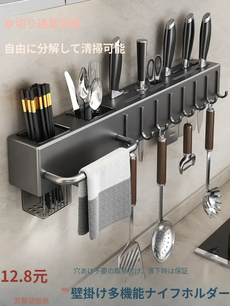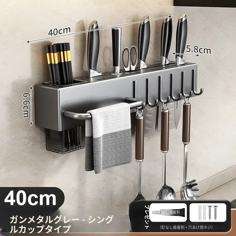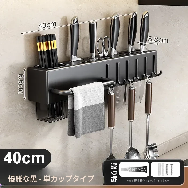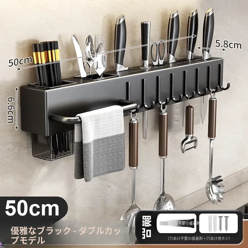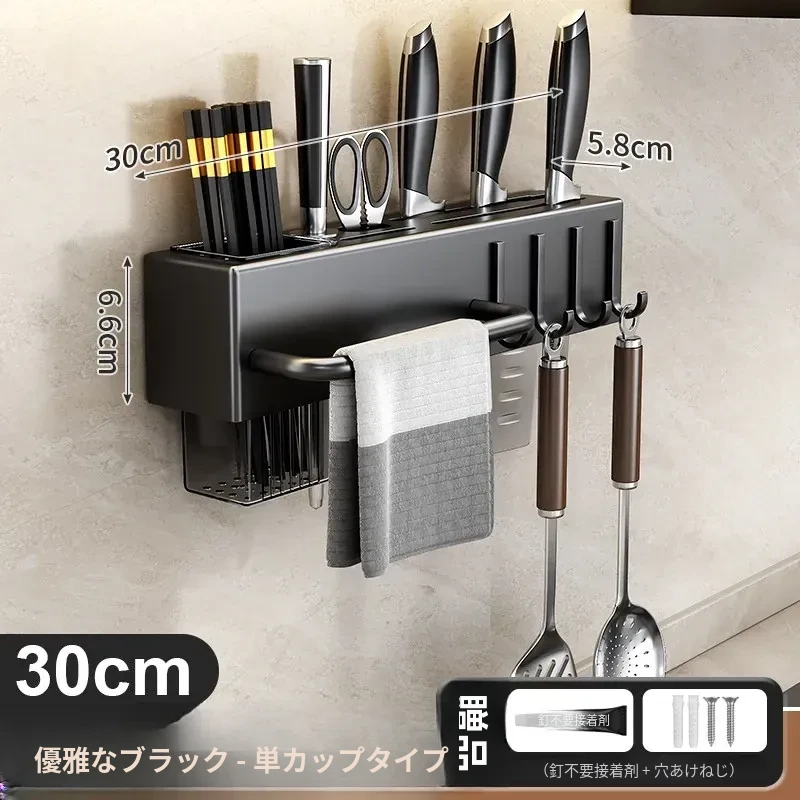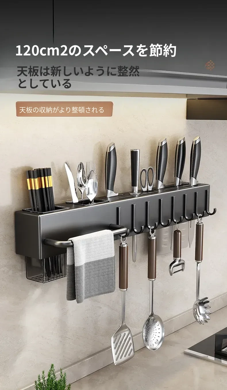 キッチン収納ラック 壁掛け式 取り付け不要!多機能で省スペースなナイフ&箸収納ホルダー 家庭用の便利アイテムが揃ったお得なセットです!