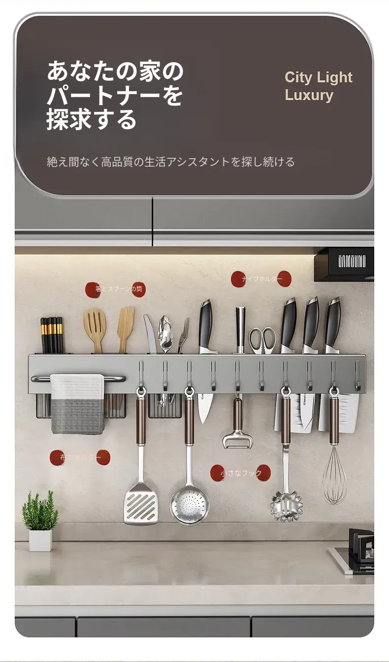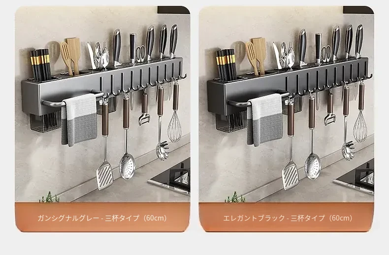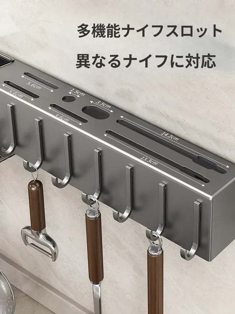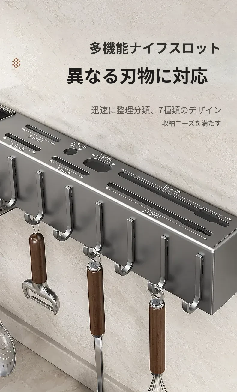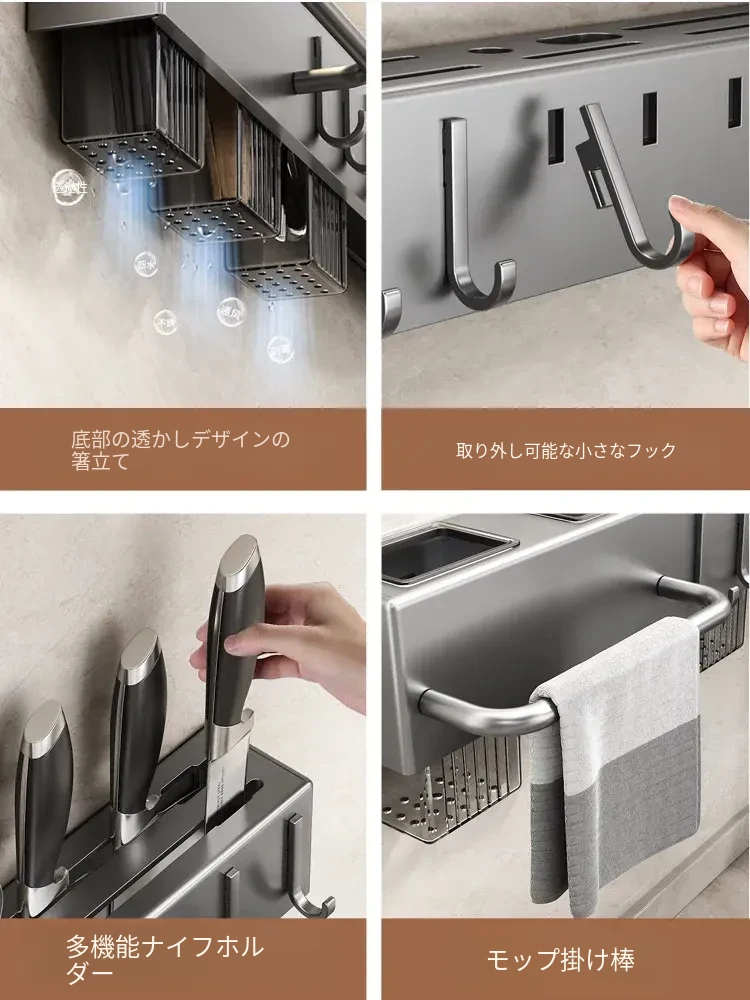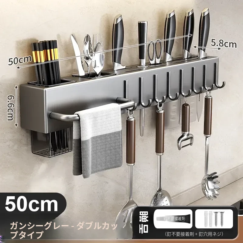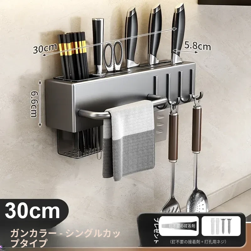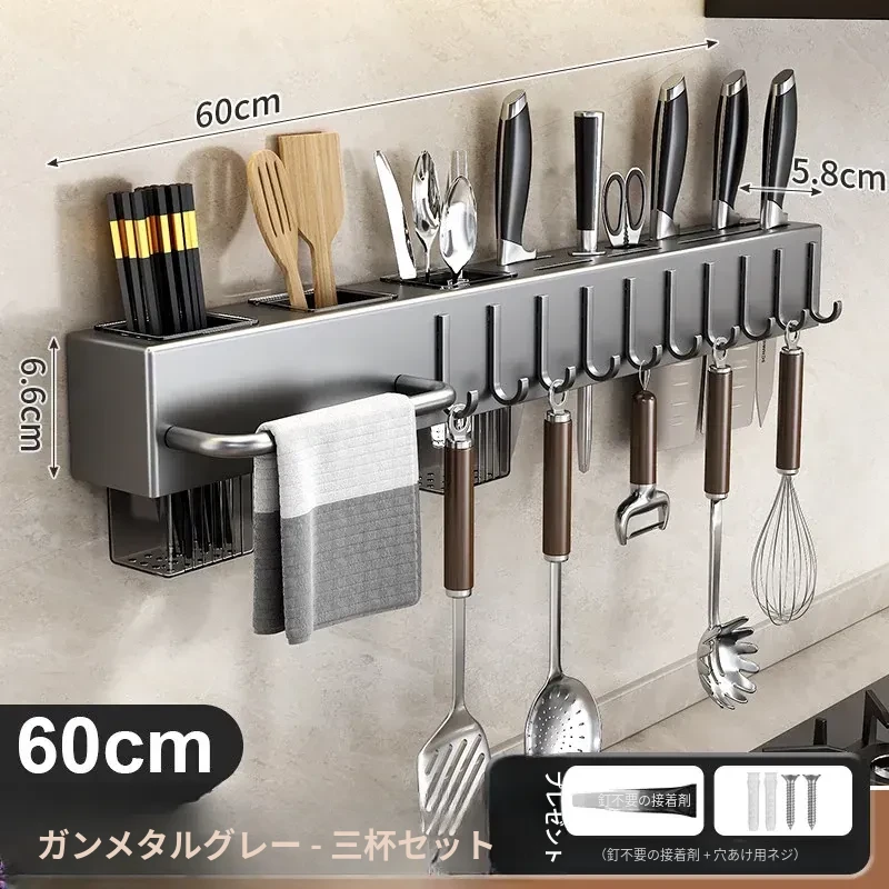 キッチン収納ラック 壁掛け式 取り付け不要!多機能で省スペースなナイフ&箸収納ホルダー 家庭用の便利アイテムが揃ったお得なセットです!