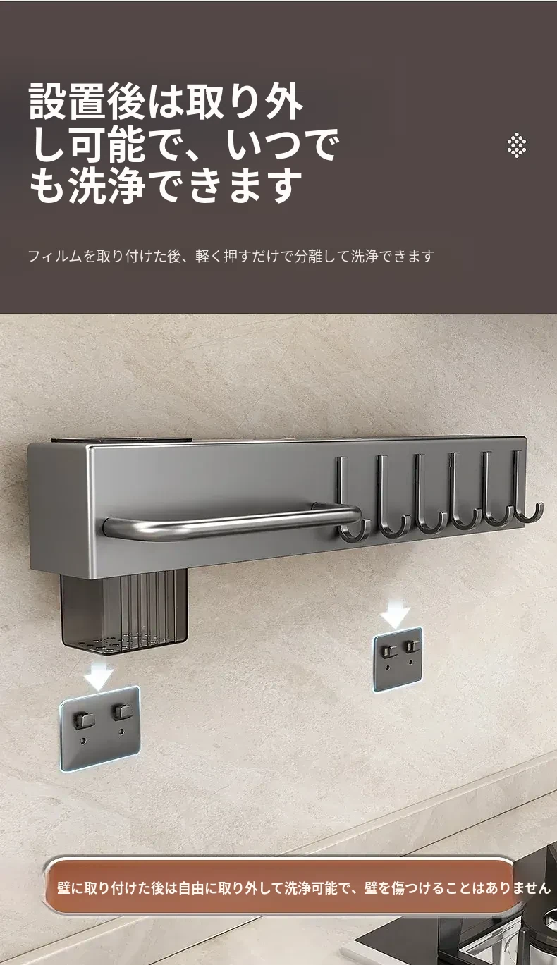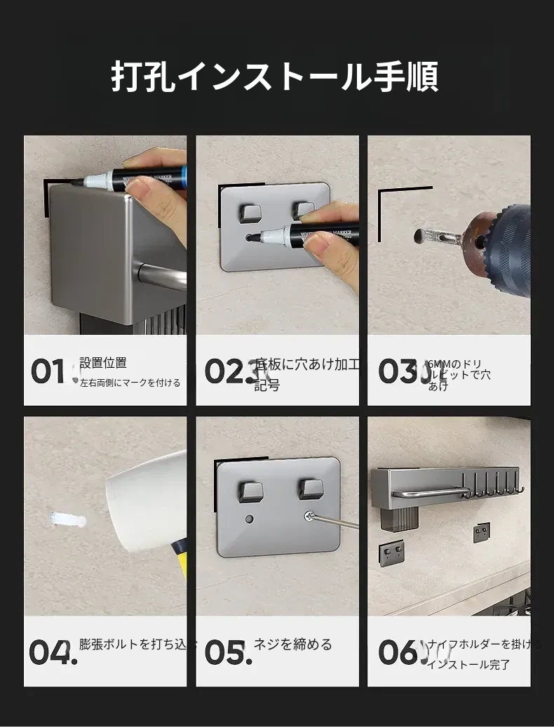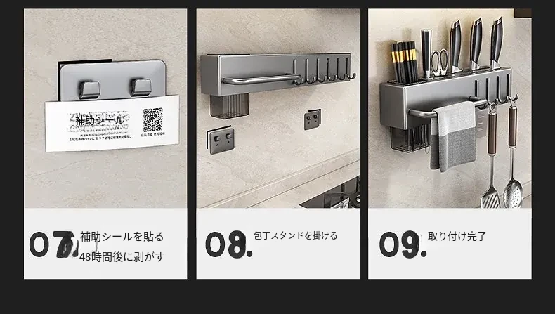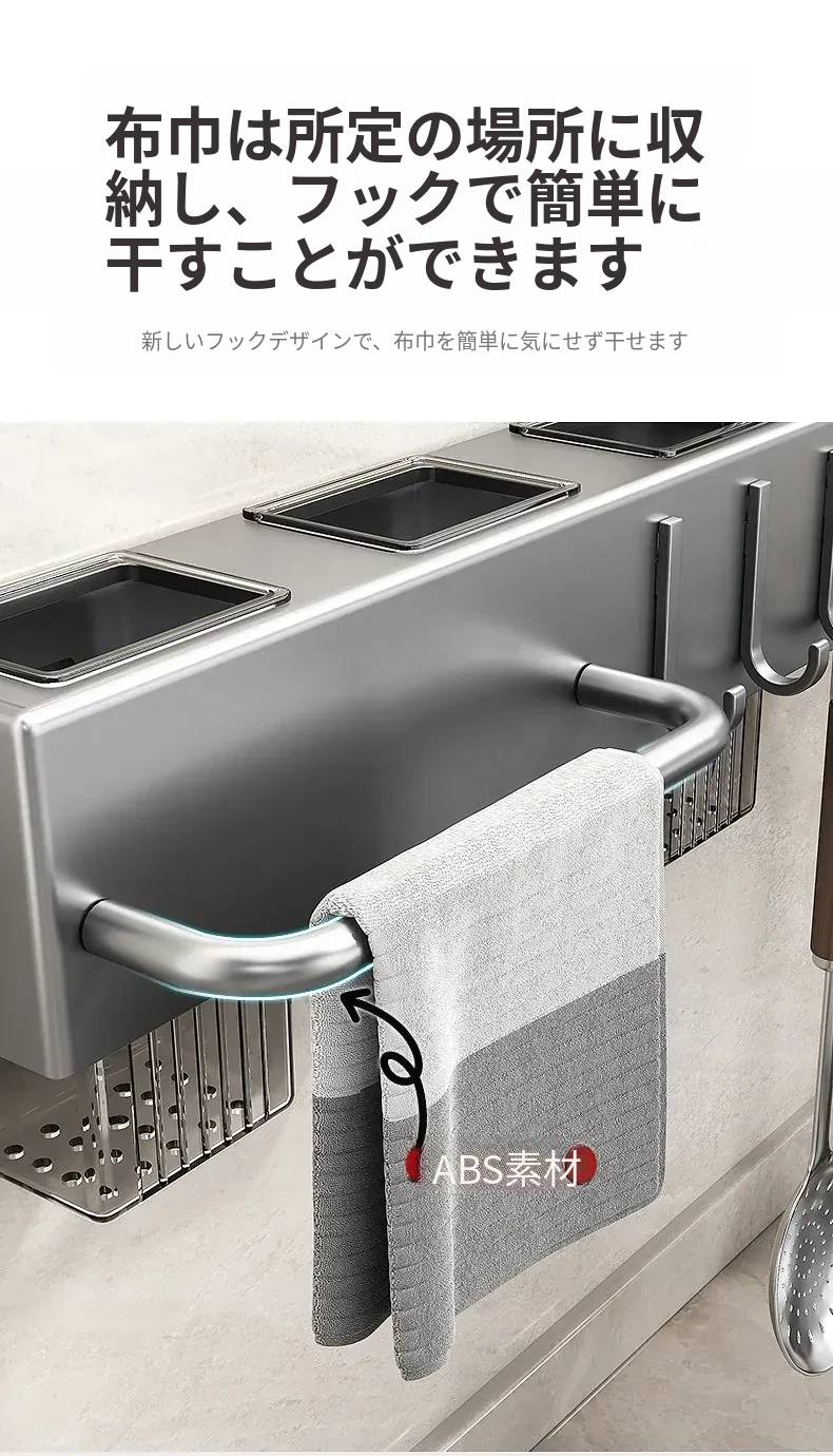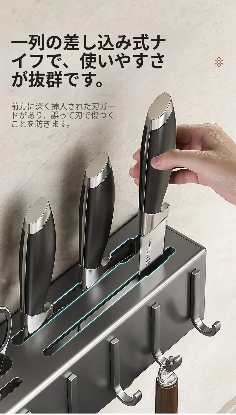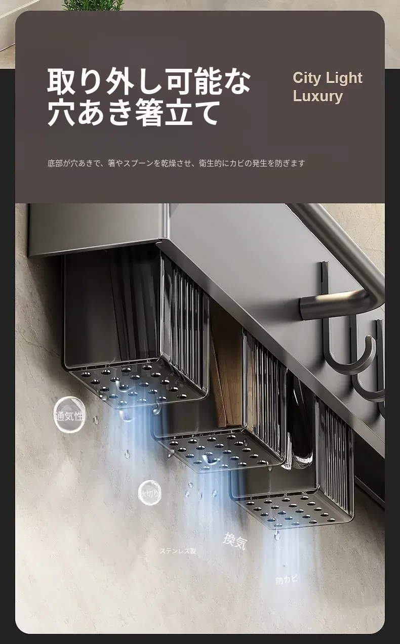 キッチン収納ラック 壁掛け式 取り付け不要!多機能で省スペースなナイフ&箸収納ホルダー 家庭用の便利アイテムが揃ったお得なセットです!