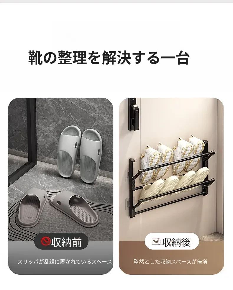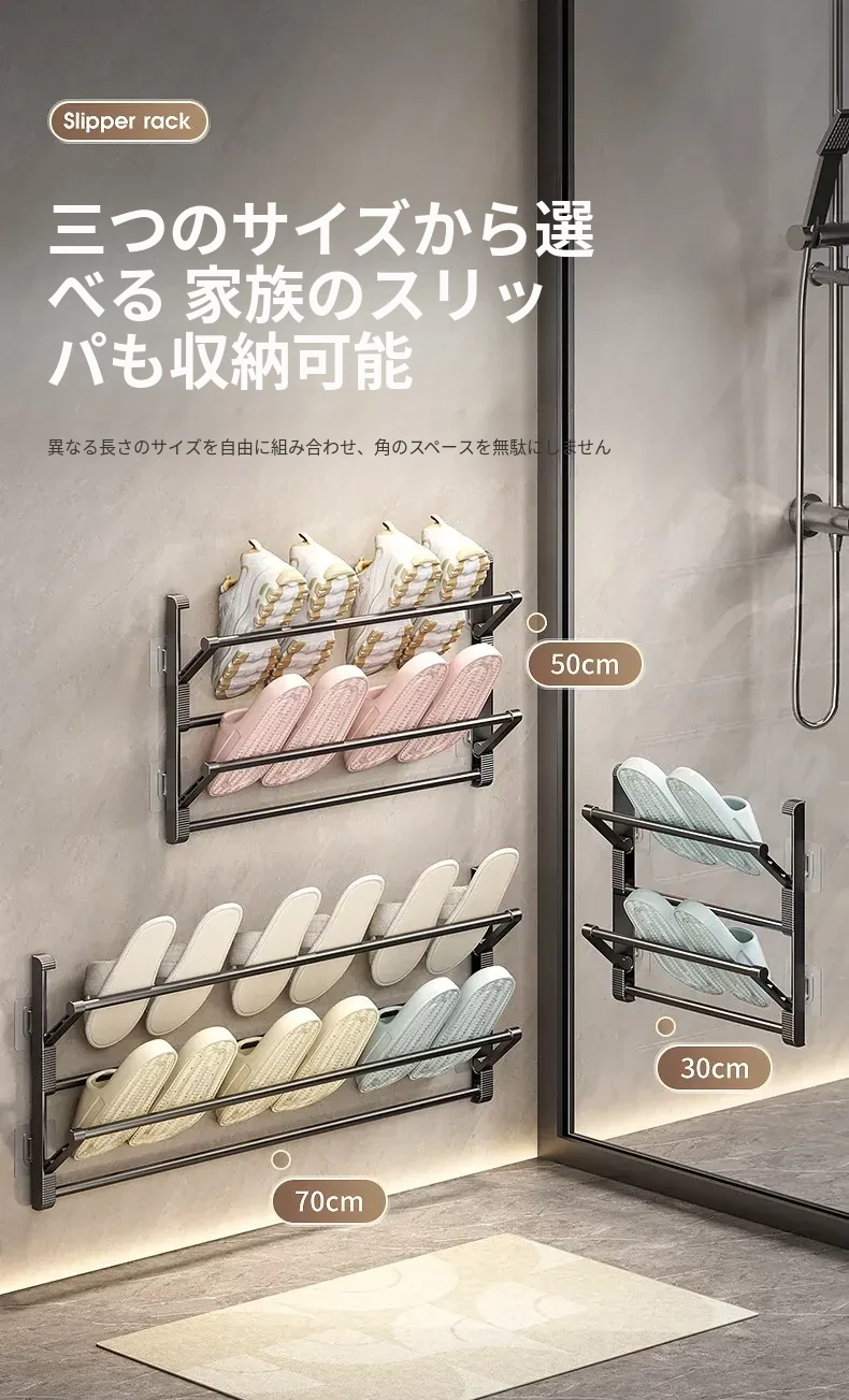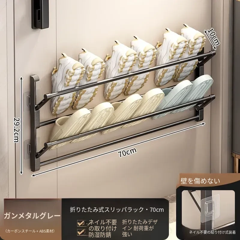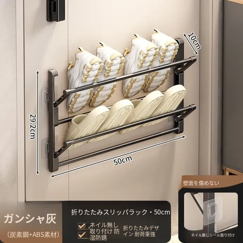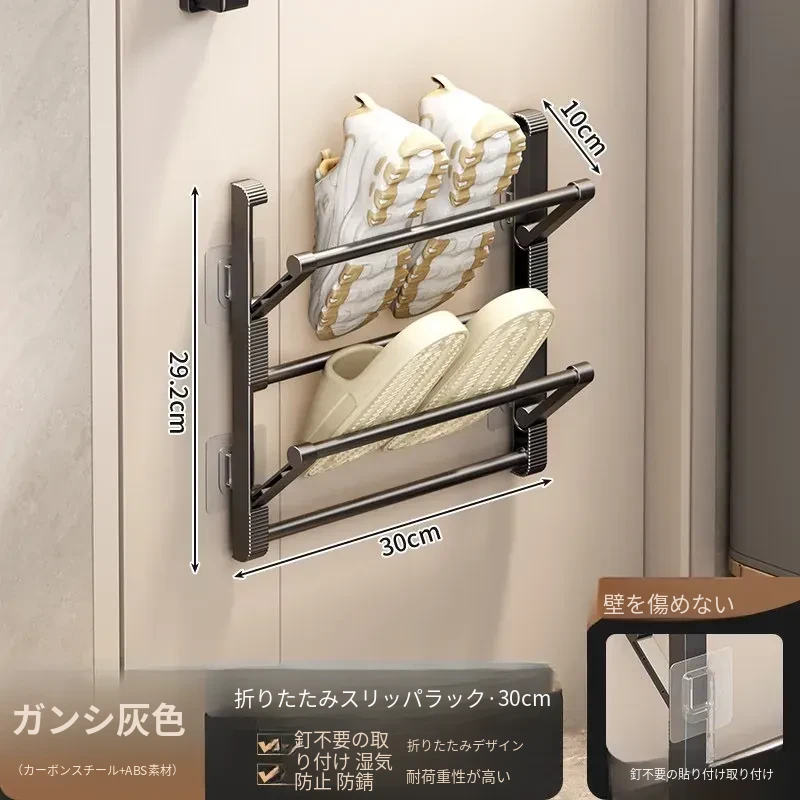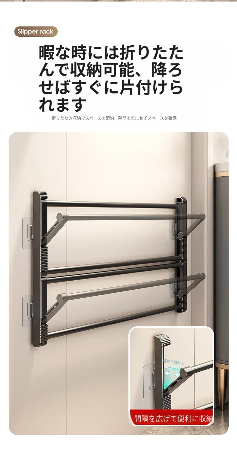 バスルーム用スリッパラック 壁掛け式・ドア裏設置・水切り機能付き 折りたたみ二段収納シューズオーガナイザー!スペースを有効活用して、清潔で整理整頓されたバスルームを実現!