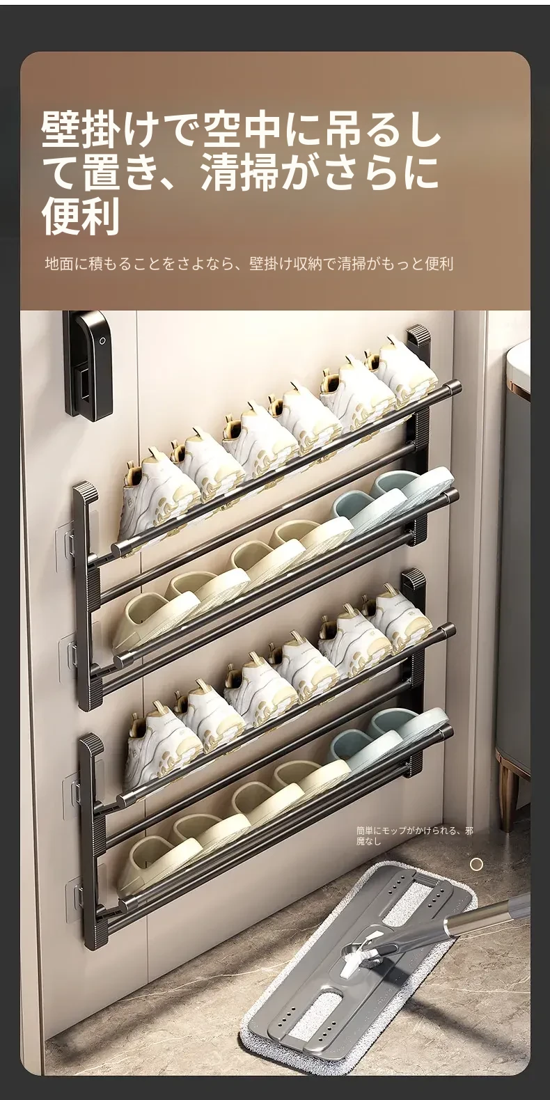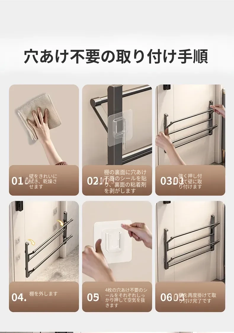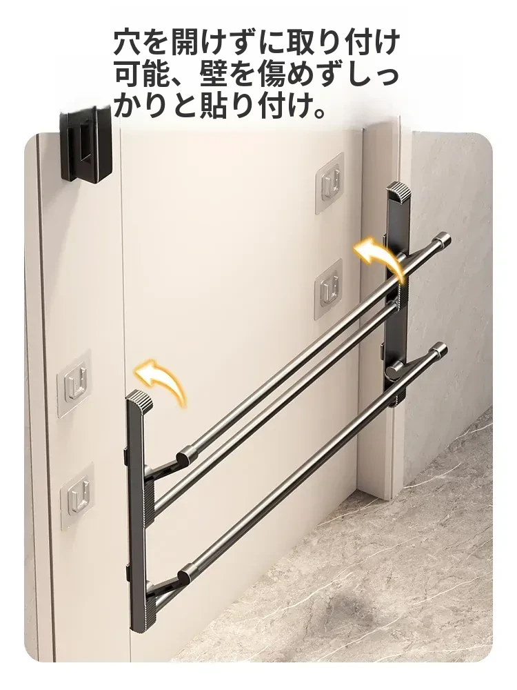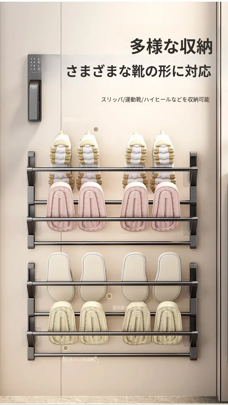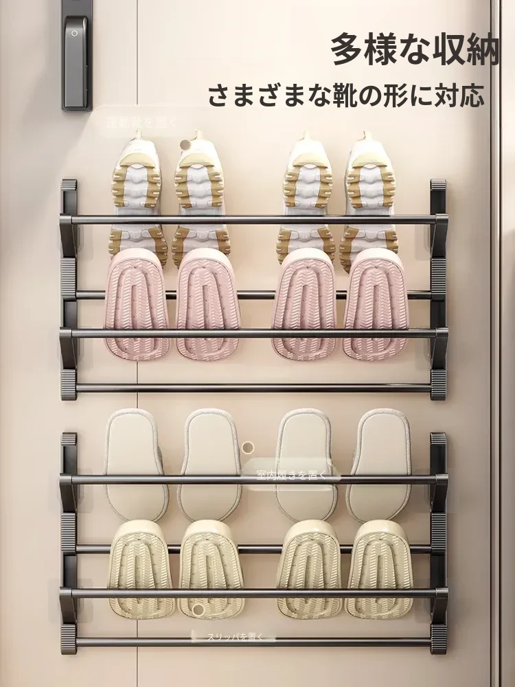 バスルーム用スリッパラック 壁掛け式・ドア裏設置・水切り機能付き 折りたたみ二段収納シューズオーガナイザー!スペースを有効活用して、清潔で整理整頓されたバスルームを実現!