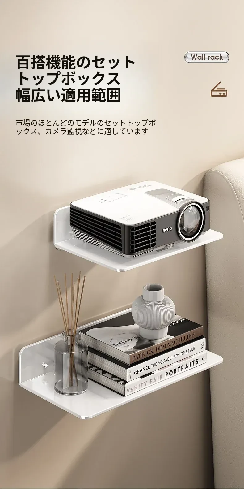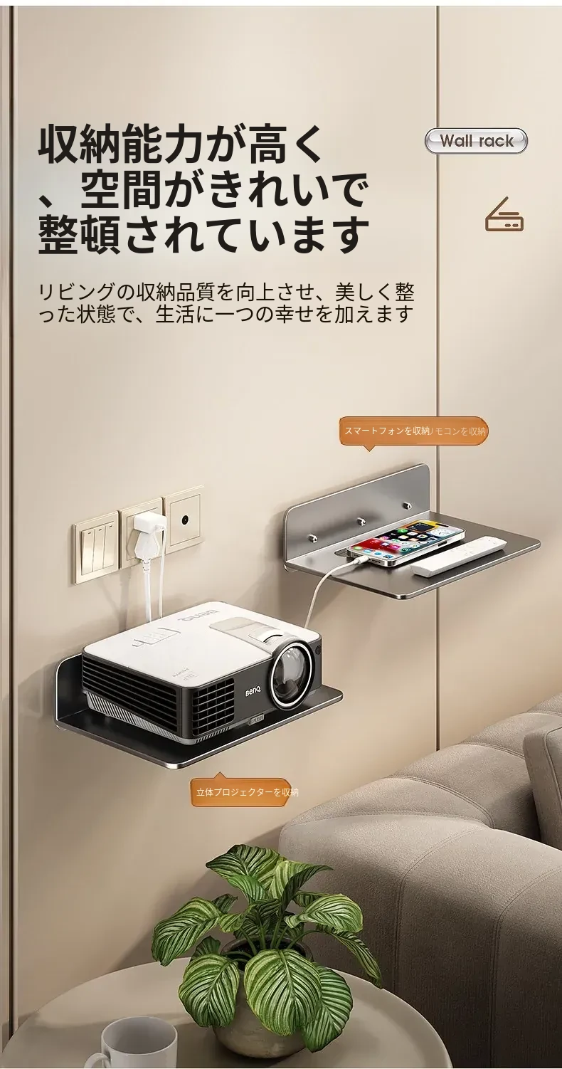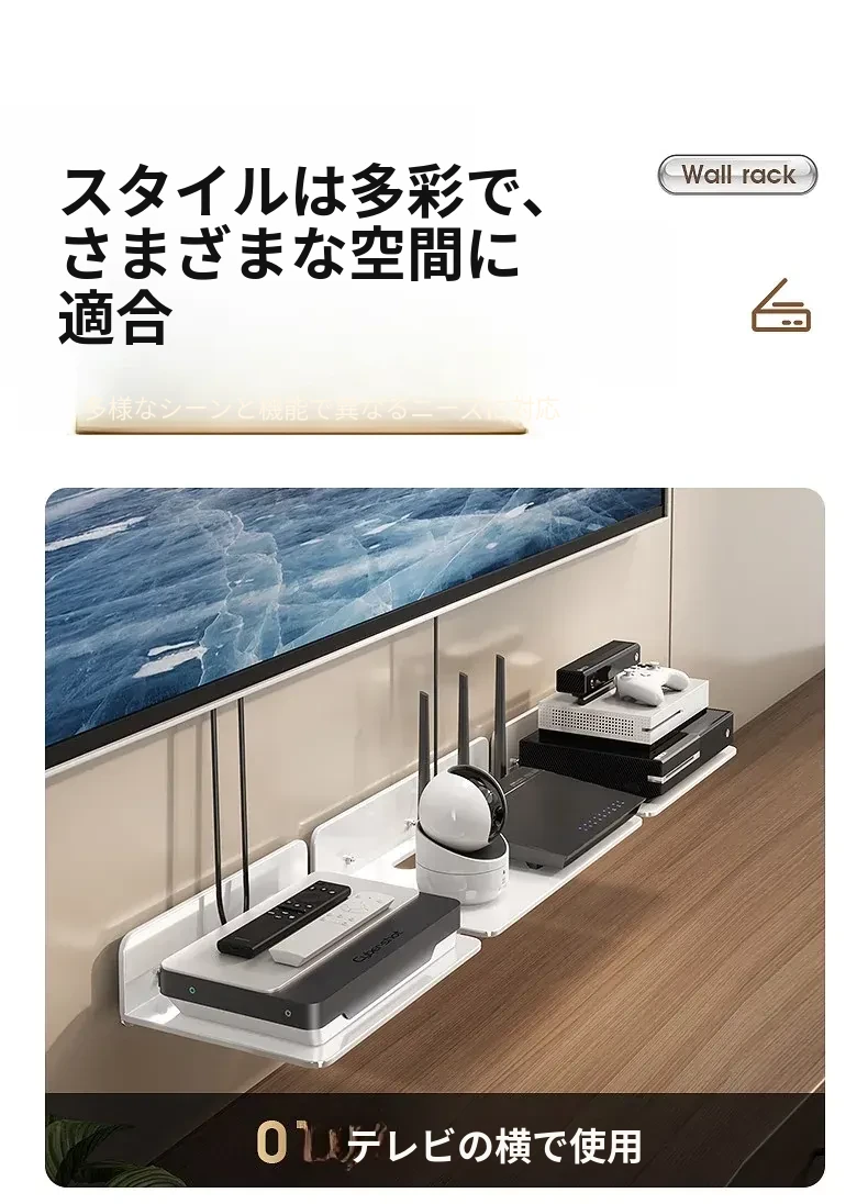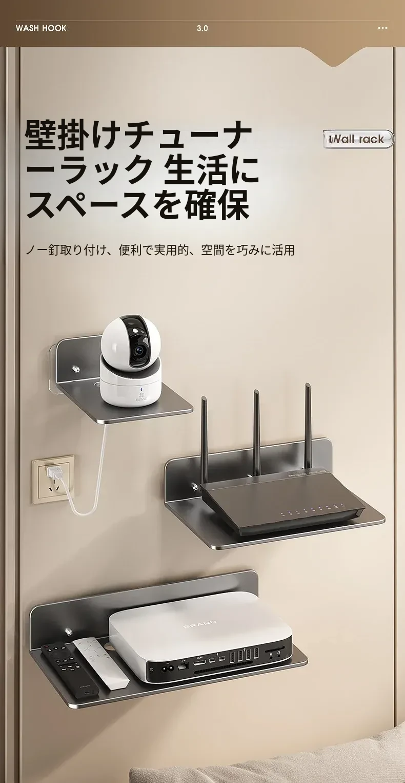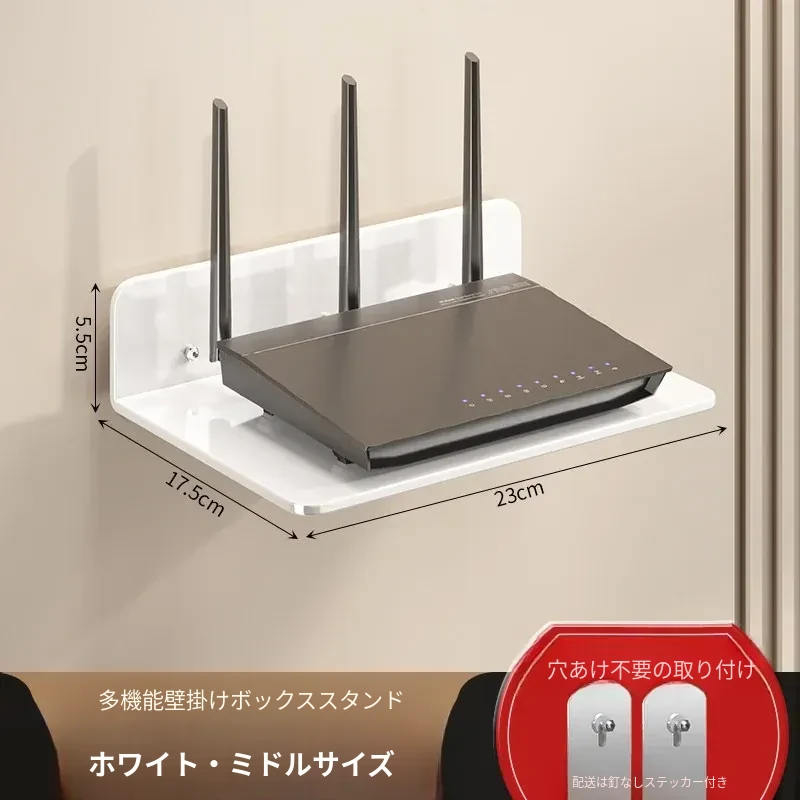 壁掛けルーターラック - ネジなしで簡単取り付け!光モデムやWi-Fiボックス、監視カメラの収納に最適。スッキリ整理して、空間を有効活用!