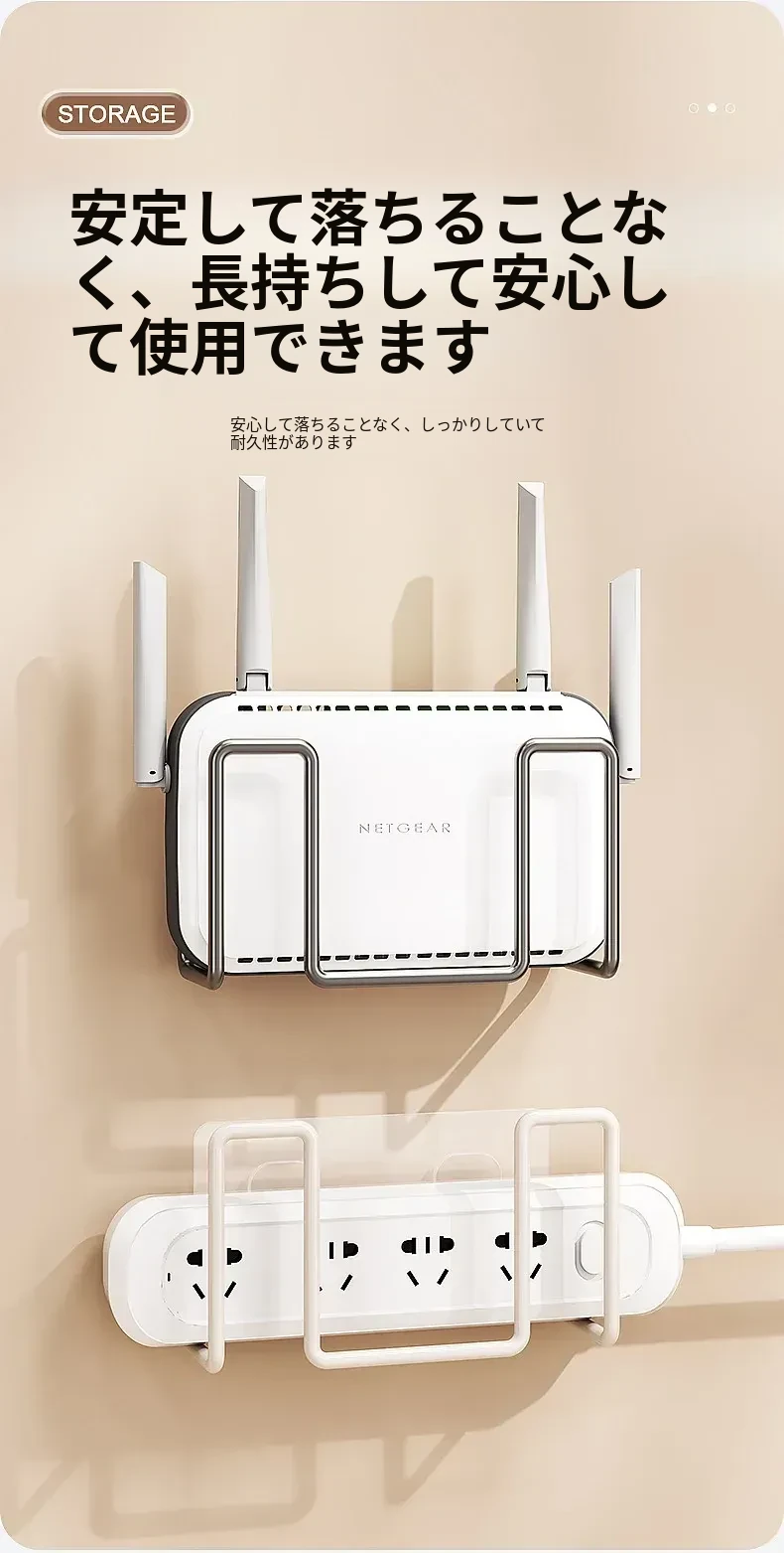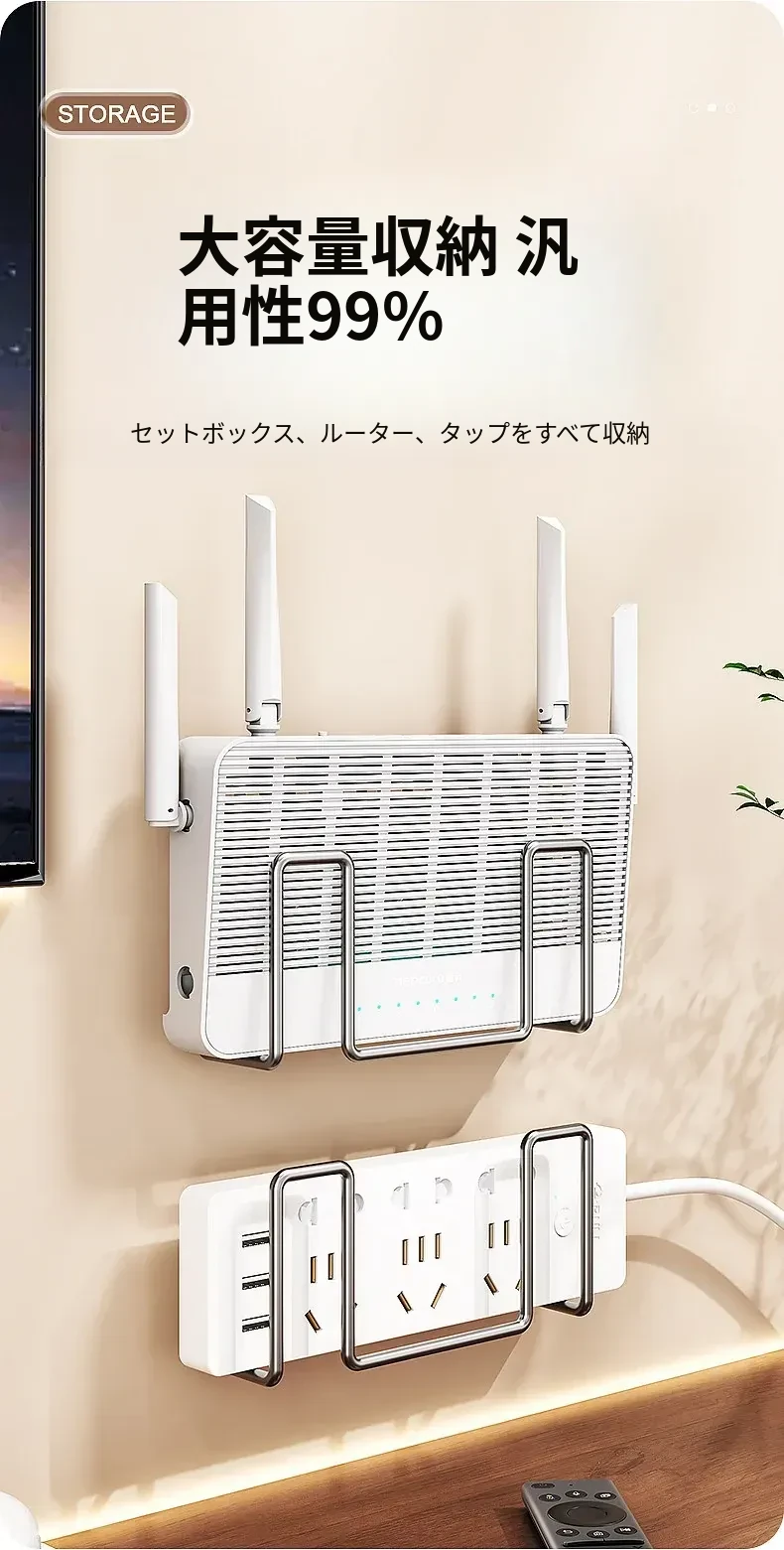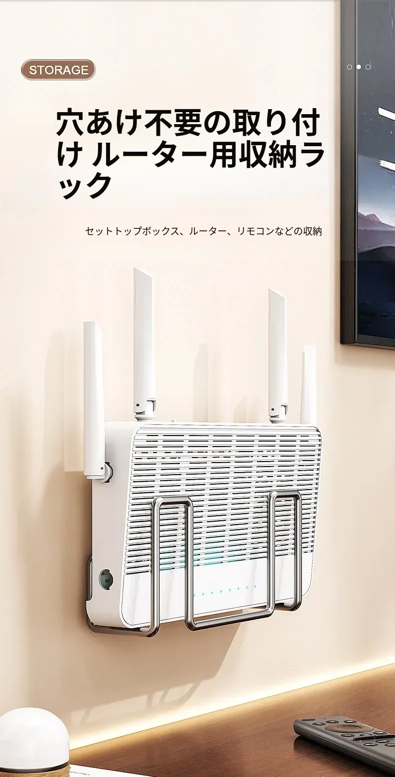 壁掛けルーター収納ラック|穴あけ不要のWi-Fi置き場|コンセント固定器付き|テレビボックスもすっきり収納!お部屋をスッキリさせる便利アイテム!