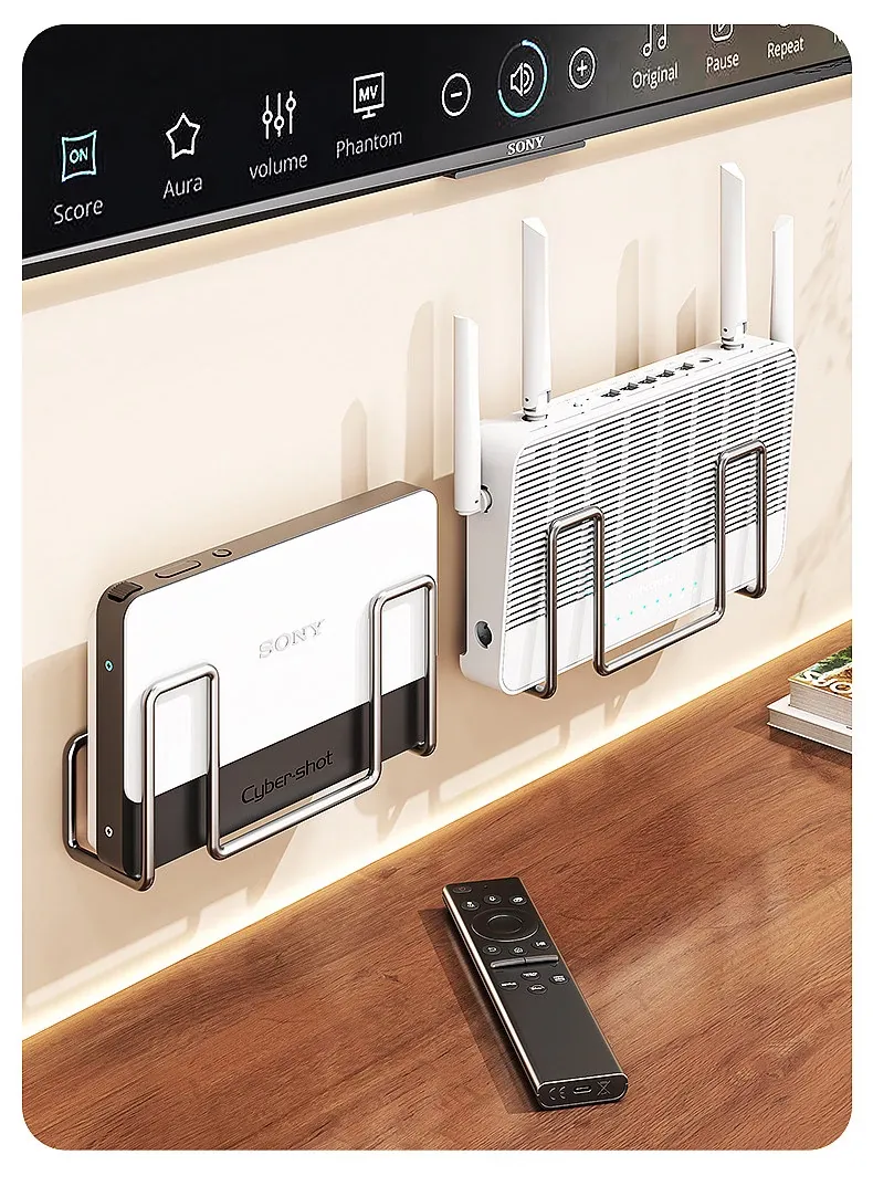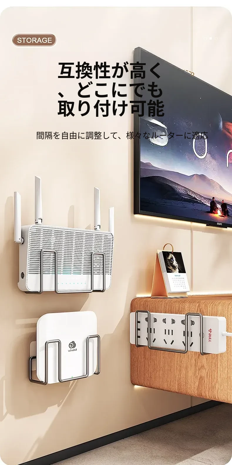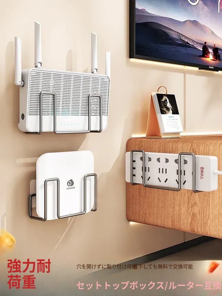 壁掛けルーター収納ラック|穴あけ不要のWi-Fi置き場|コンセント固定器付き|テレビボックスもすっきり収納!お部屋をスッキリさせる便利アイテム!