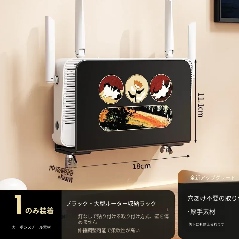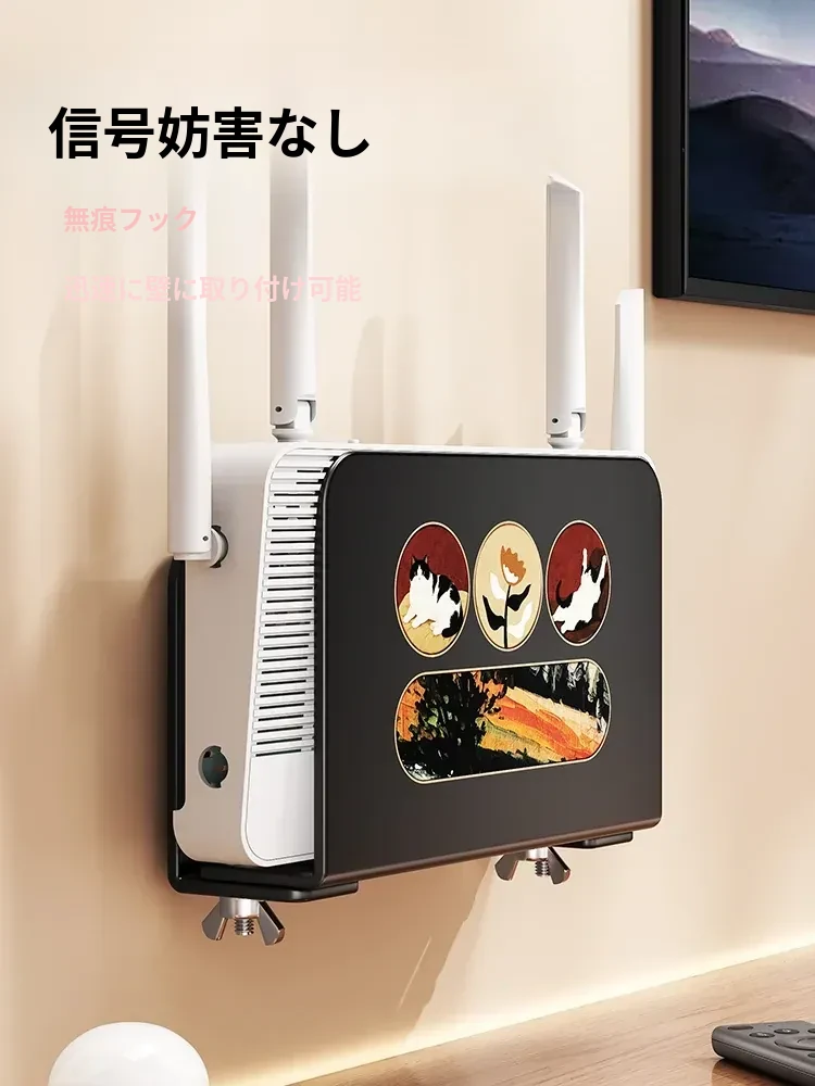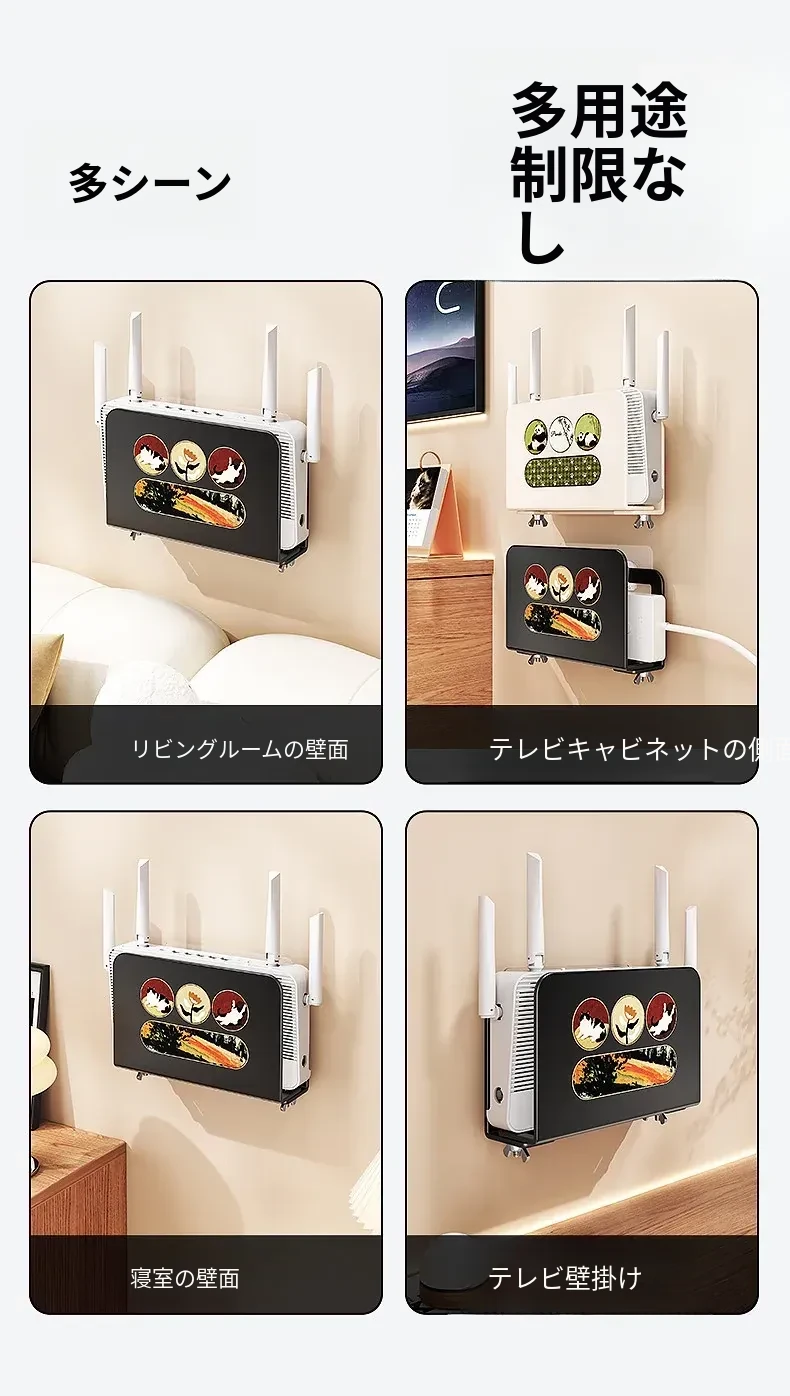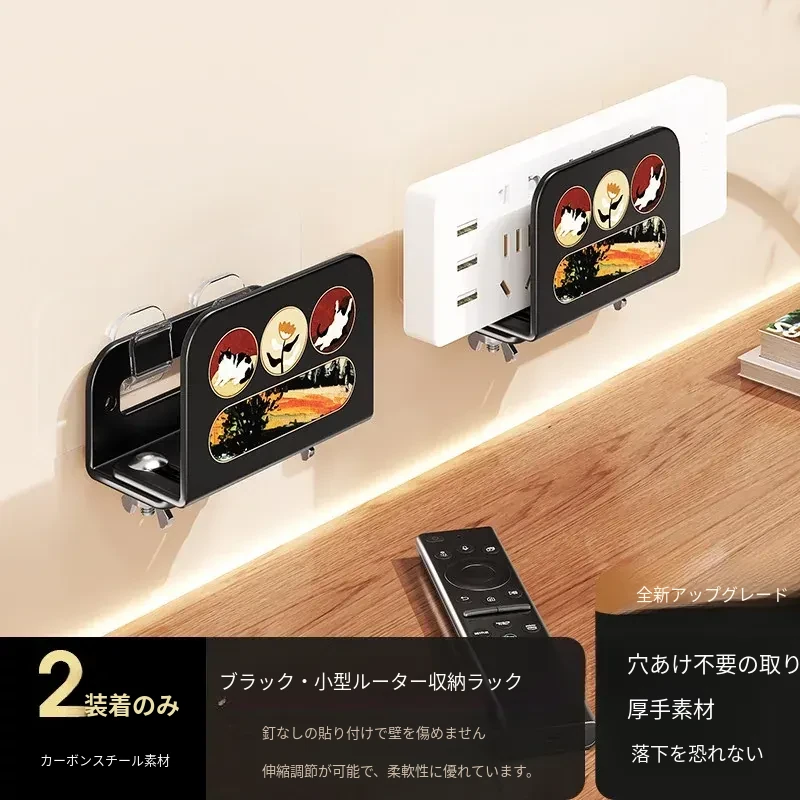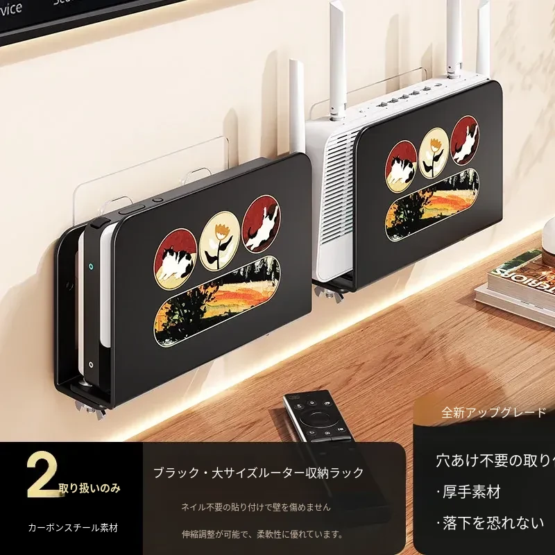 壁掛けルーター収納ラック - Wi-Fi機器、タップ固定器、セットトップボックス用、穴なし取り付け、スマートな整理整頓でスッキリ!
