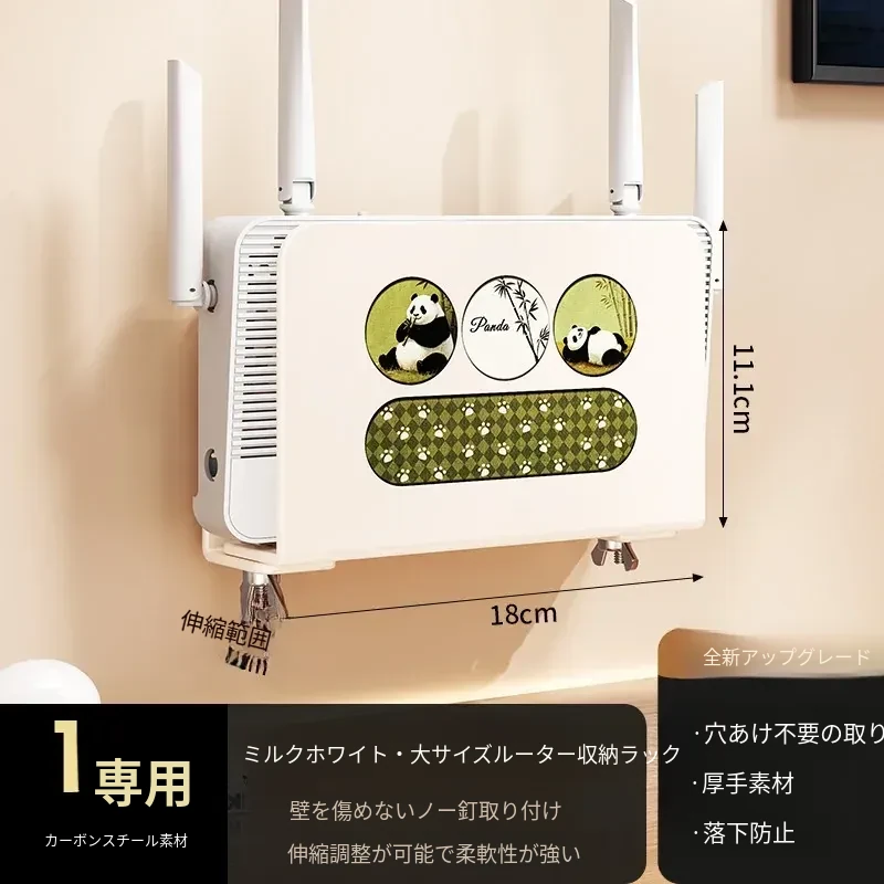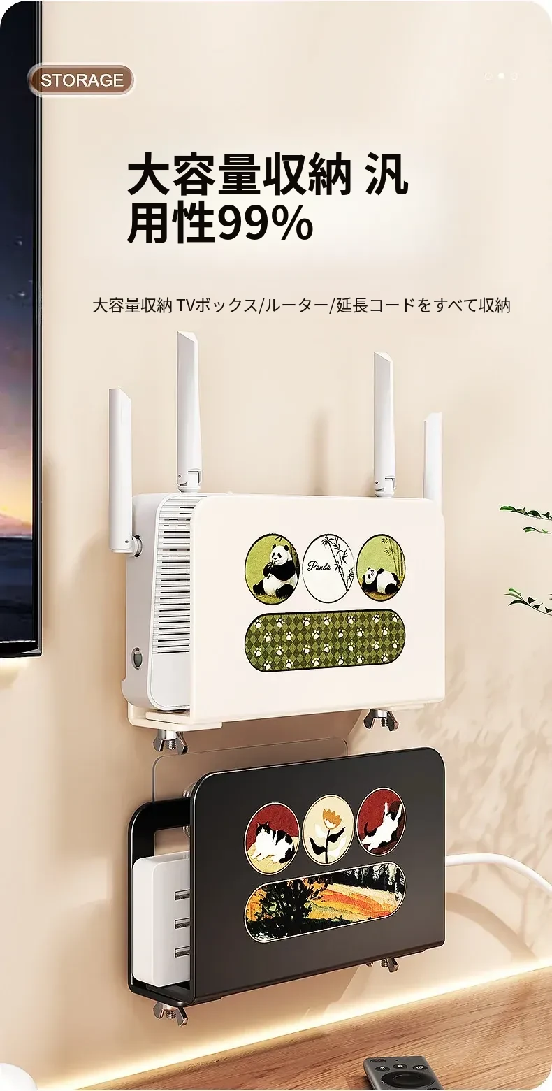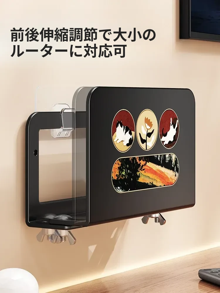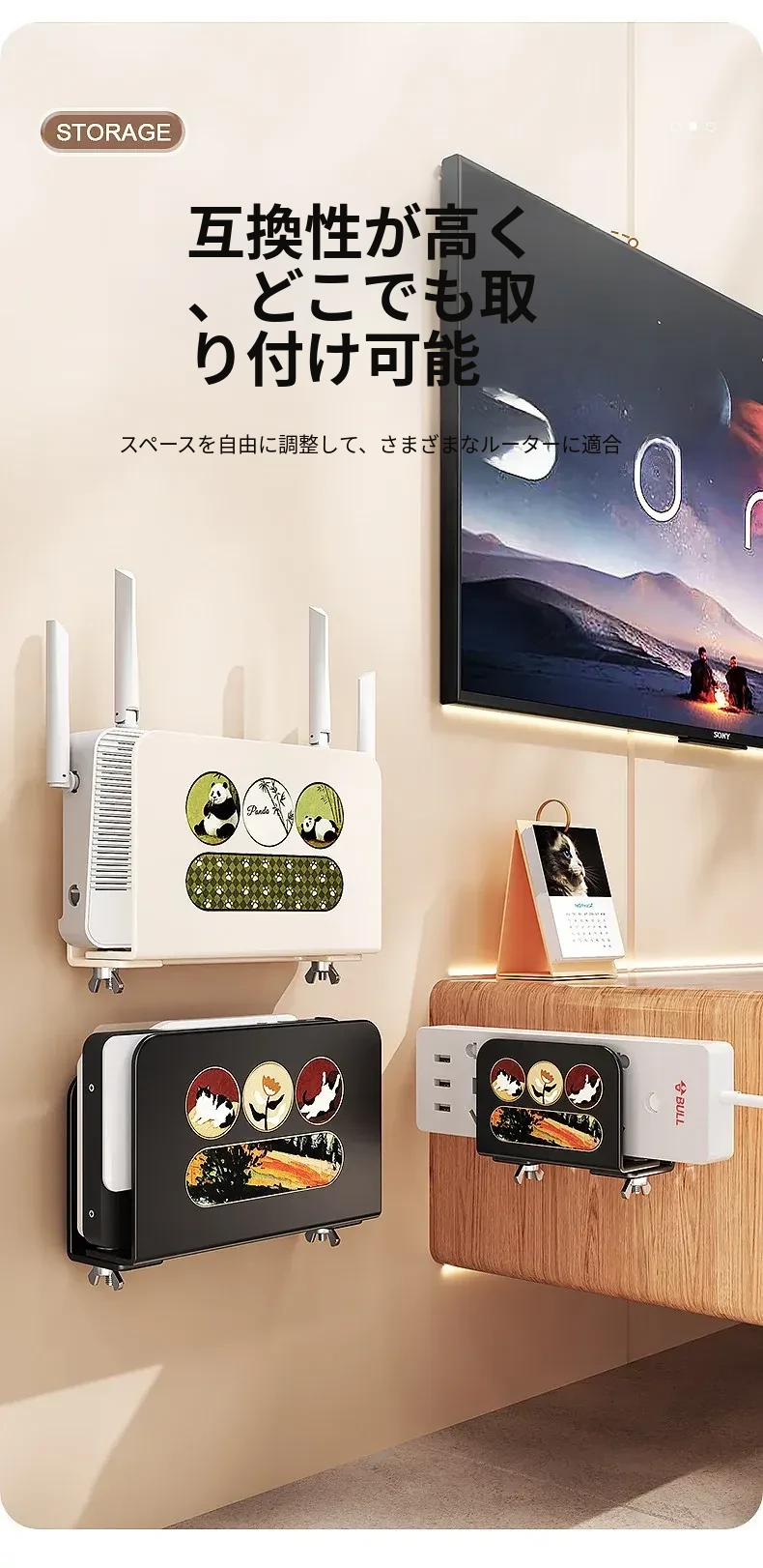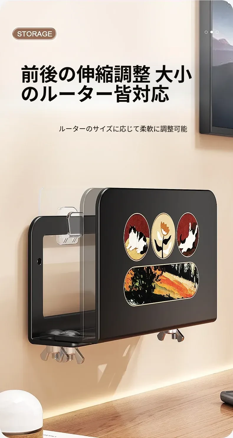 壁掛けルーター収納ラック - Wi-Fi機器、タップ固定器、セットトップボックス用、穴なし取り付け、スマートな整理整頓でスッキリ!