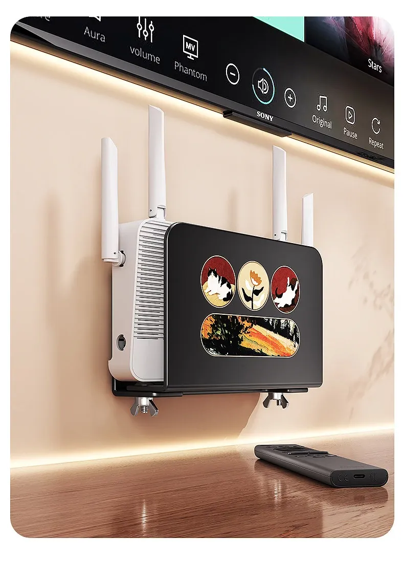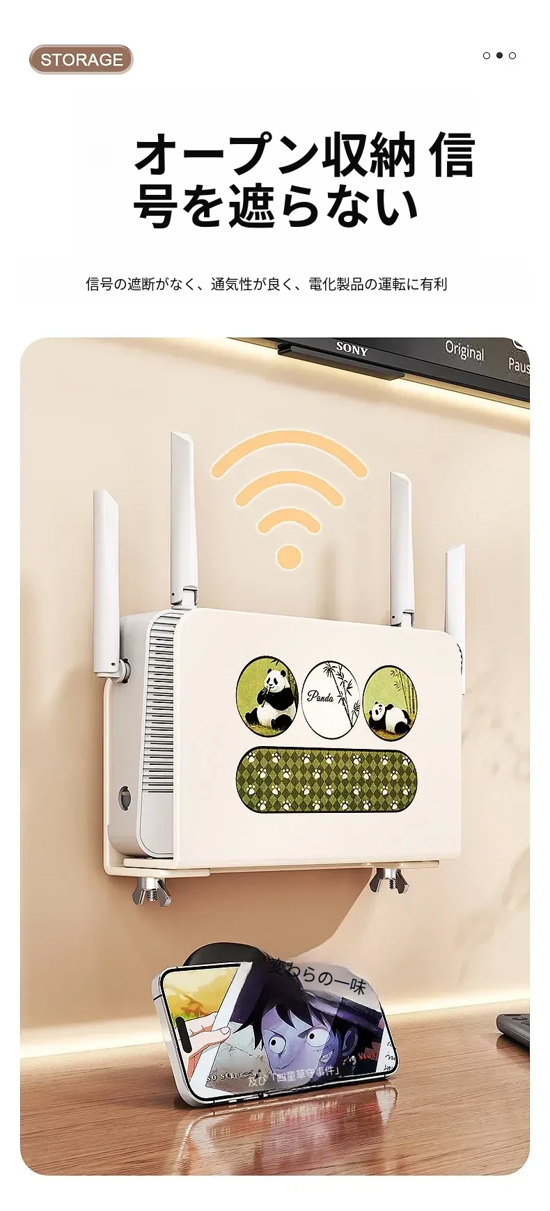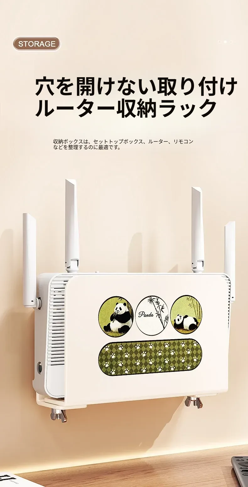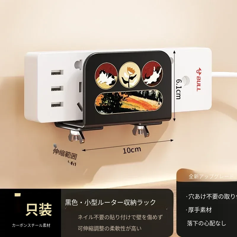 壁掛けルーター収納ラック - Wi-Fi機器、タップ固定器、セットトップボックス用、穴なし取り付け、スマートな整理整頓でスッキリ!