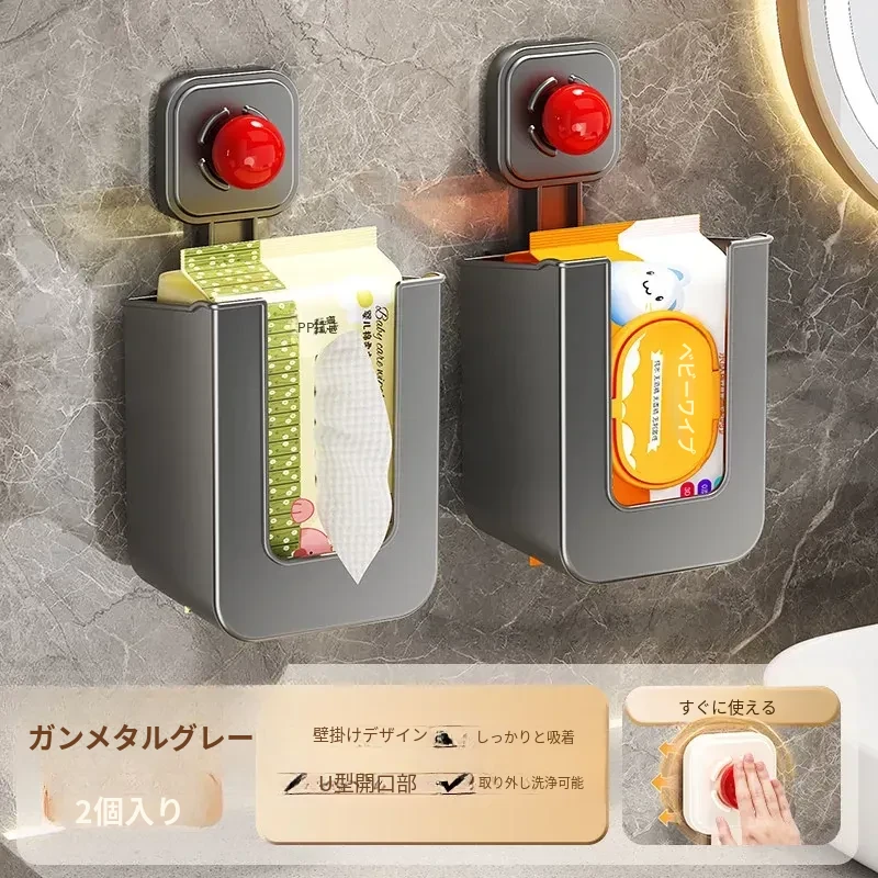 ガンメタリック●吸盤ティッシュホルダー【2個セット】