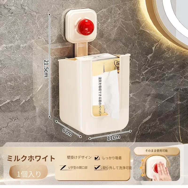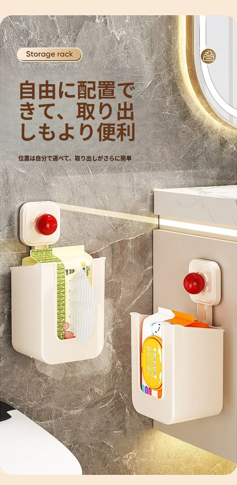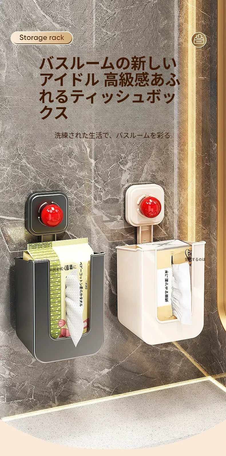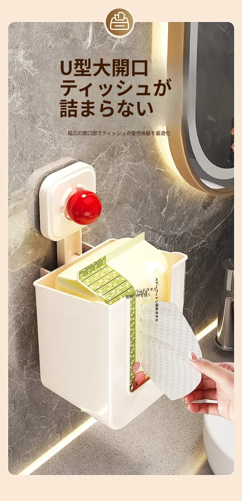吸盤式トイレットペーパー収納ボックス - 壁掛け設計で簡単取り付け、穴あけ不要!バスルームやトイレに最適なティッシュケース、洗面台周りをスッキリ整理!家庭用にもピッタリ!