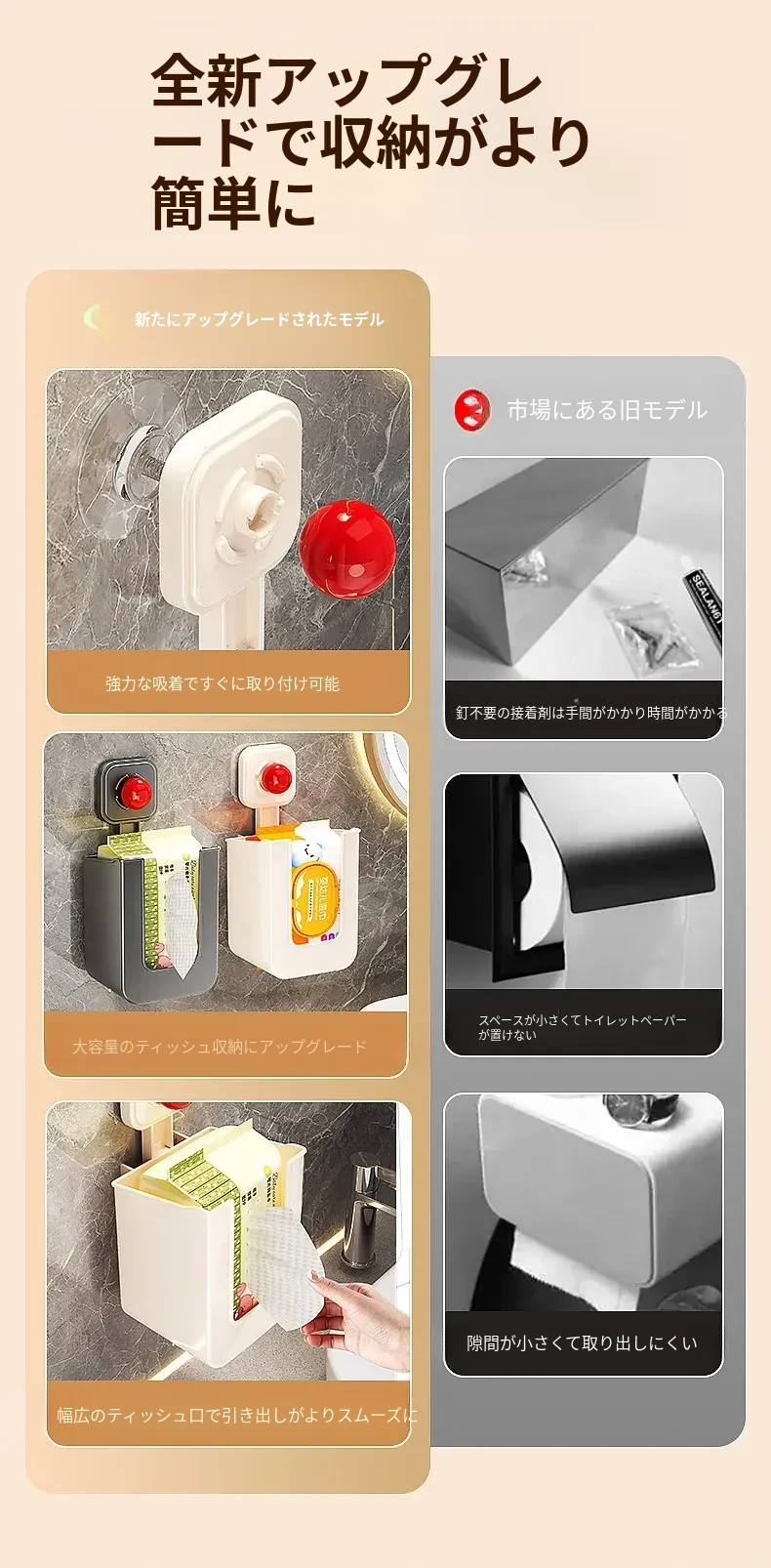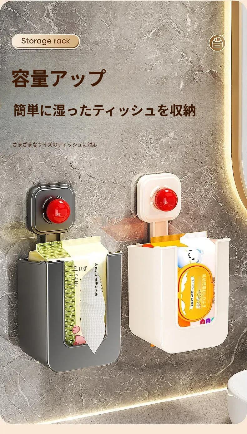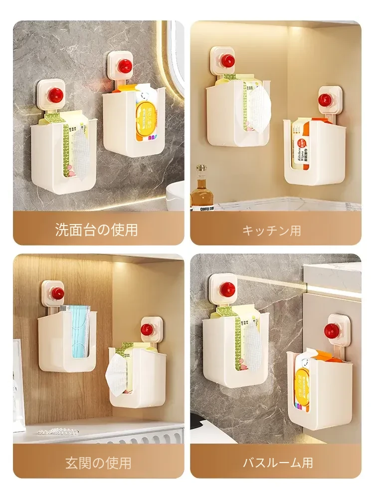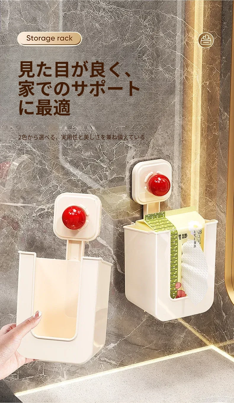 吸盤式トイレットペーパー収納ボックス - 壁掛け設計で簡単取り付け、穴あけ不要!バスルームやトイレに最適なティッシュケース、洗面台周りをスッキリ整理!家庭用にもピッタリ!