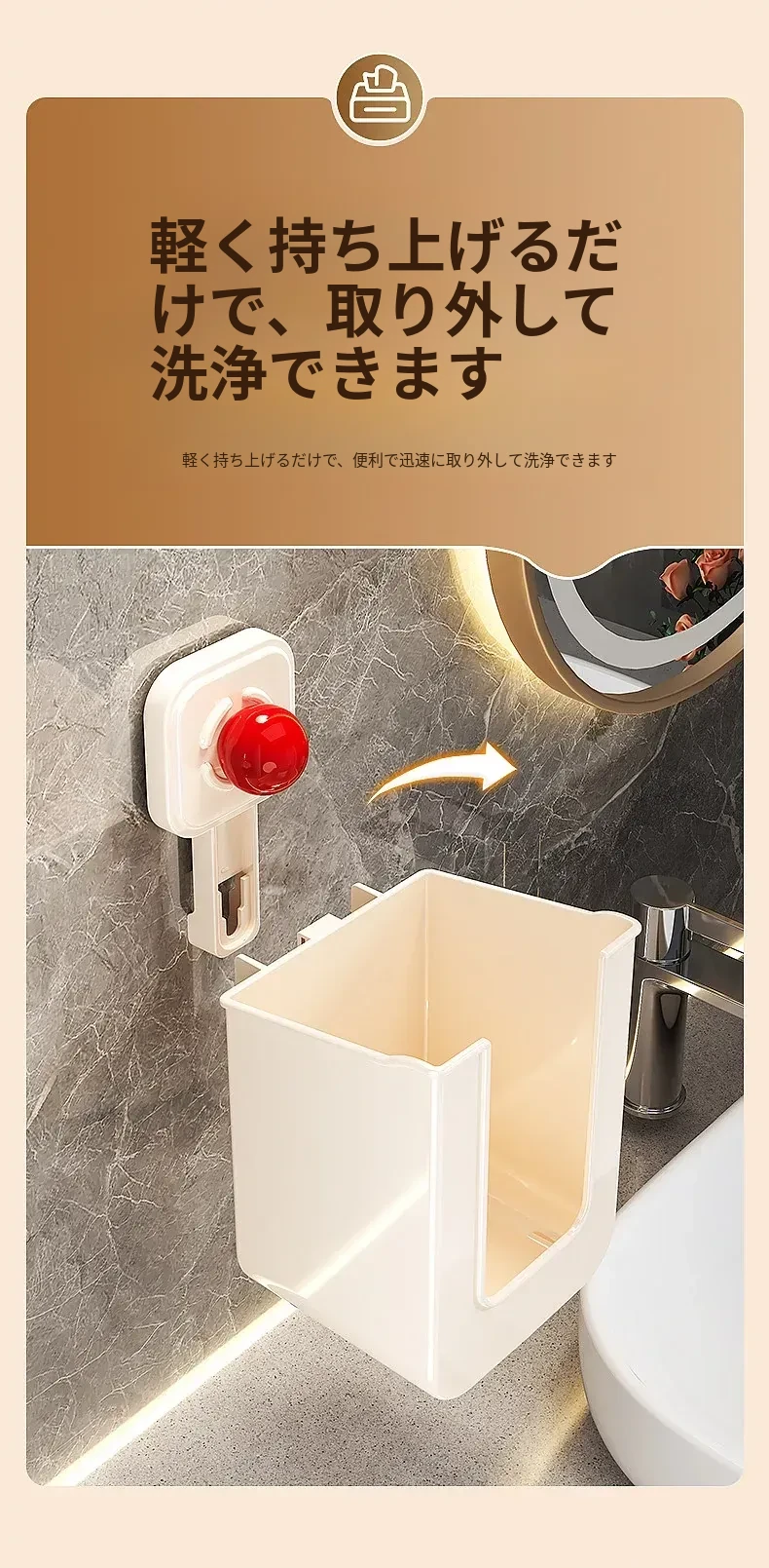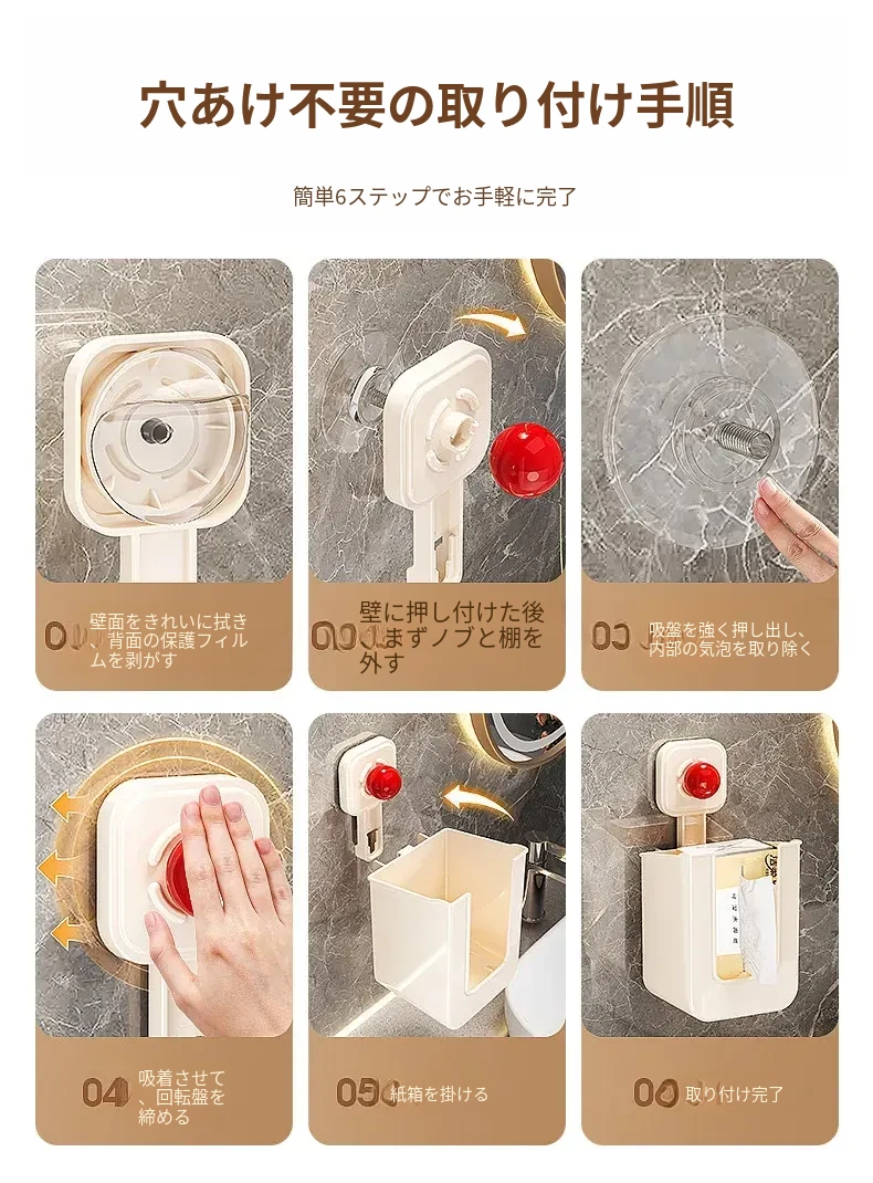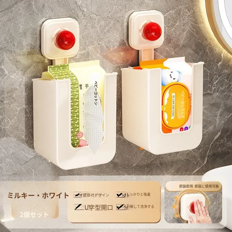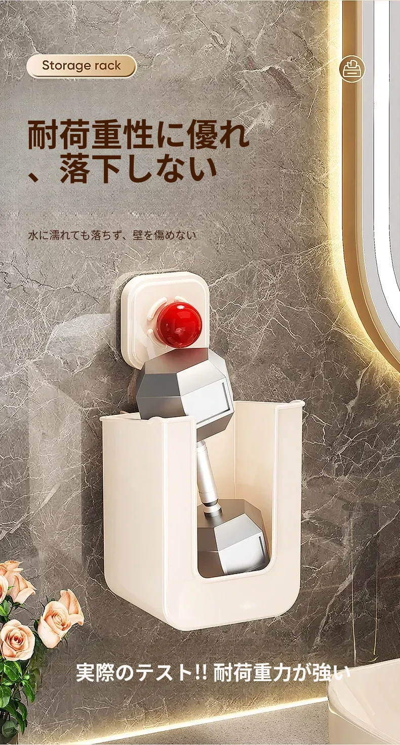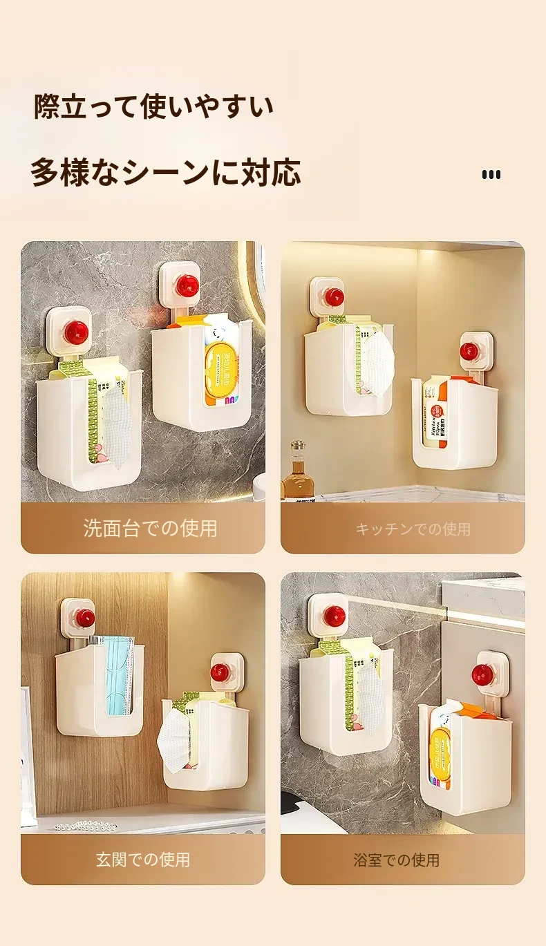 吸盤式トイレットペーパー収納ボックス - 壁掛け設計で簡単取り付け、穴あけ不要!バスルームやトイレに最適なティッシュケース、洗面台周りをスッキリ整理!家庭用にもピッタリ!