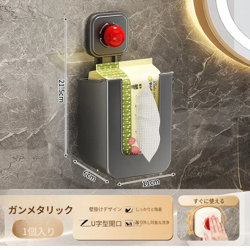 ガンメタリック●吸盤ティッシュホルダー【1個セット】
