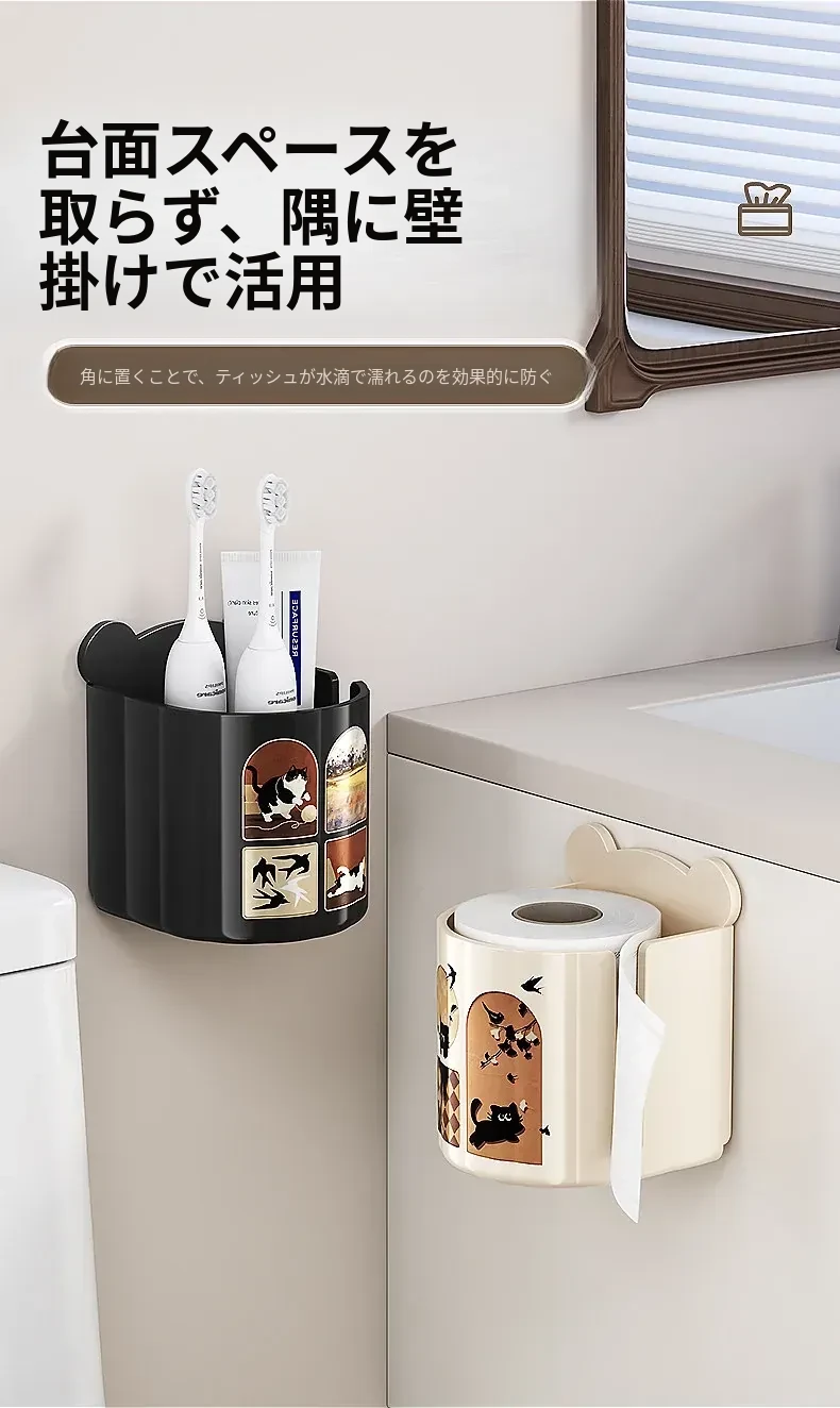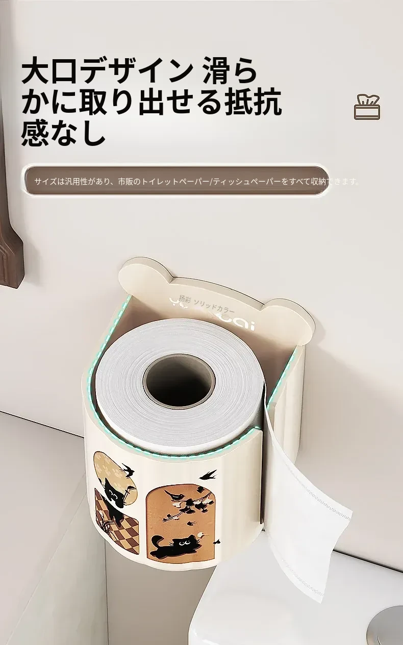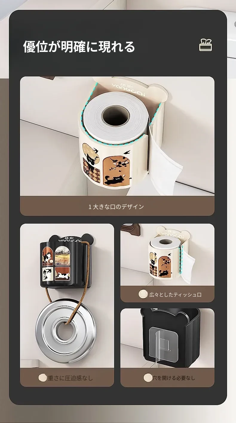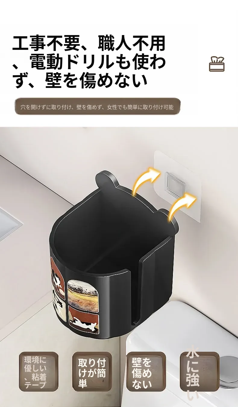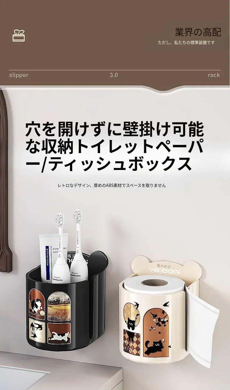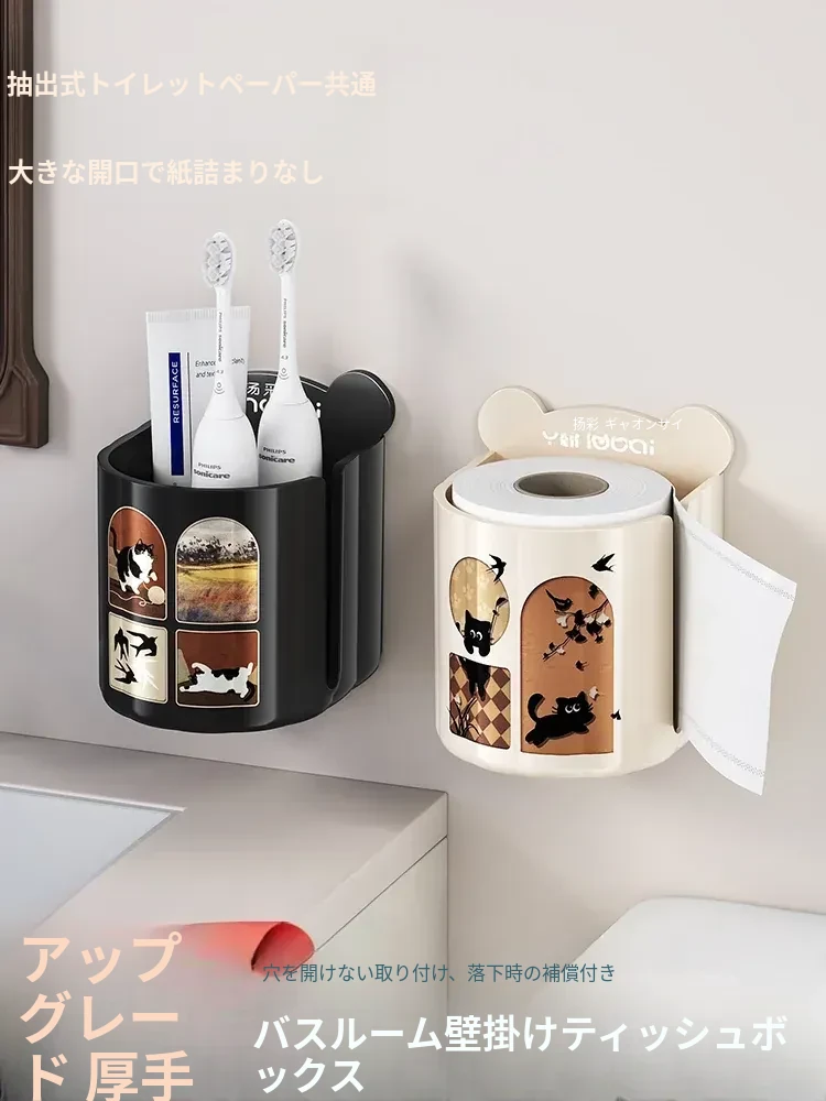壁掛け式ティッシュボックス - 洗面所やトイレに最適!穴を開けずに取り付けられる便利な収納ボックス。トイレットペーパーやティッシュをスッキリ整理!おしゃれで機能的なアイテムで、空間を美しく演出します。