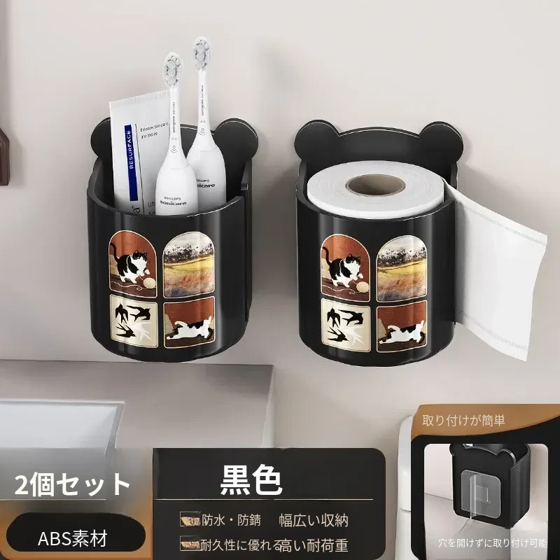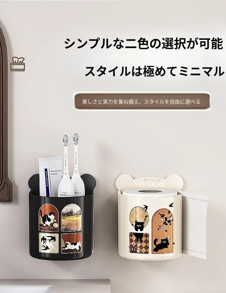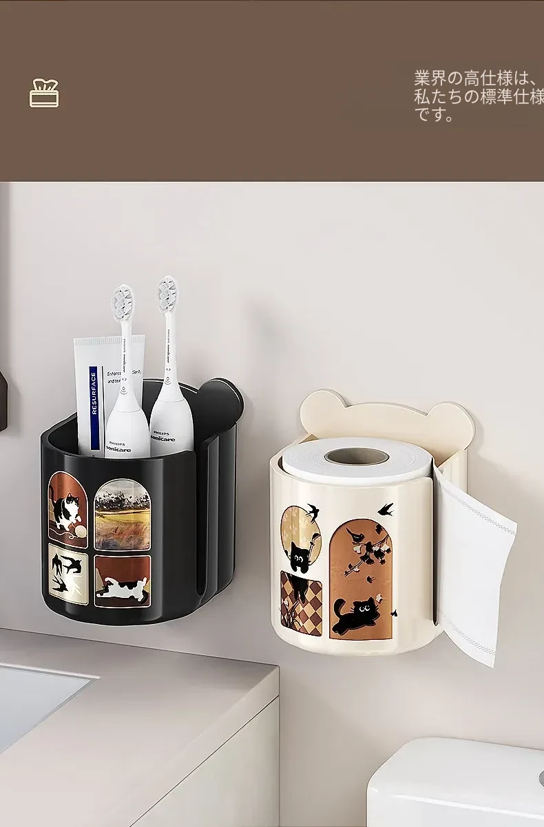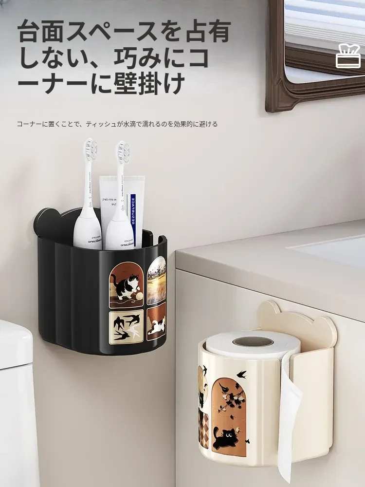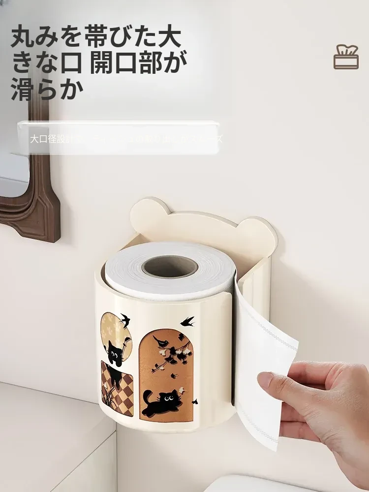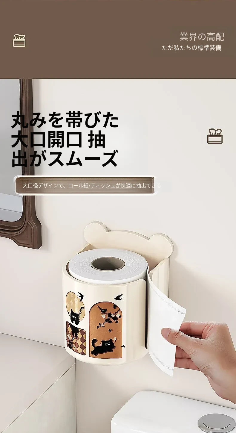 壁掛け式ティッシュボックス - 洗面所やトイレに最適!穴を開けずに取り付けられる便利な収納ボックス。トイレットペーパーやティッシュをスッキリ整理!おしゃれで機能的なアイテムで、空間を美しく演出します。