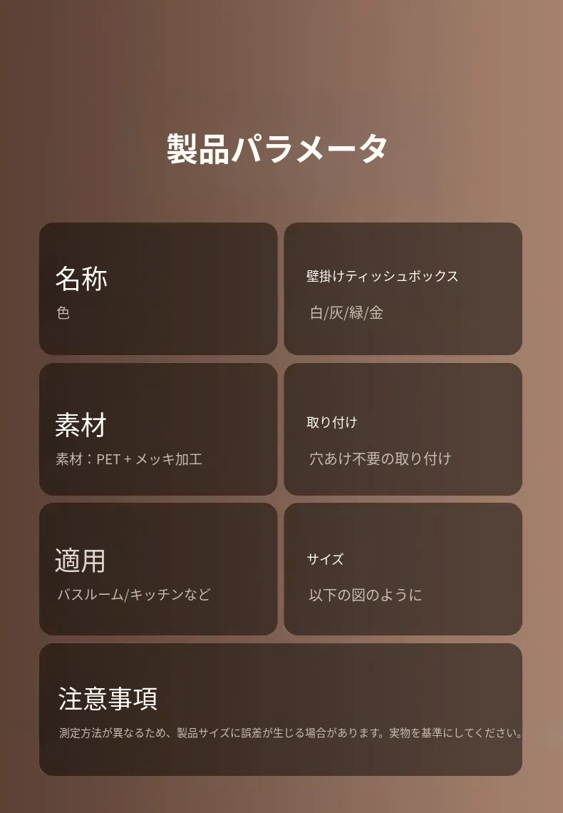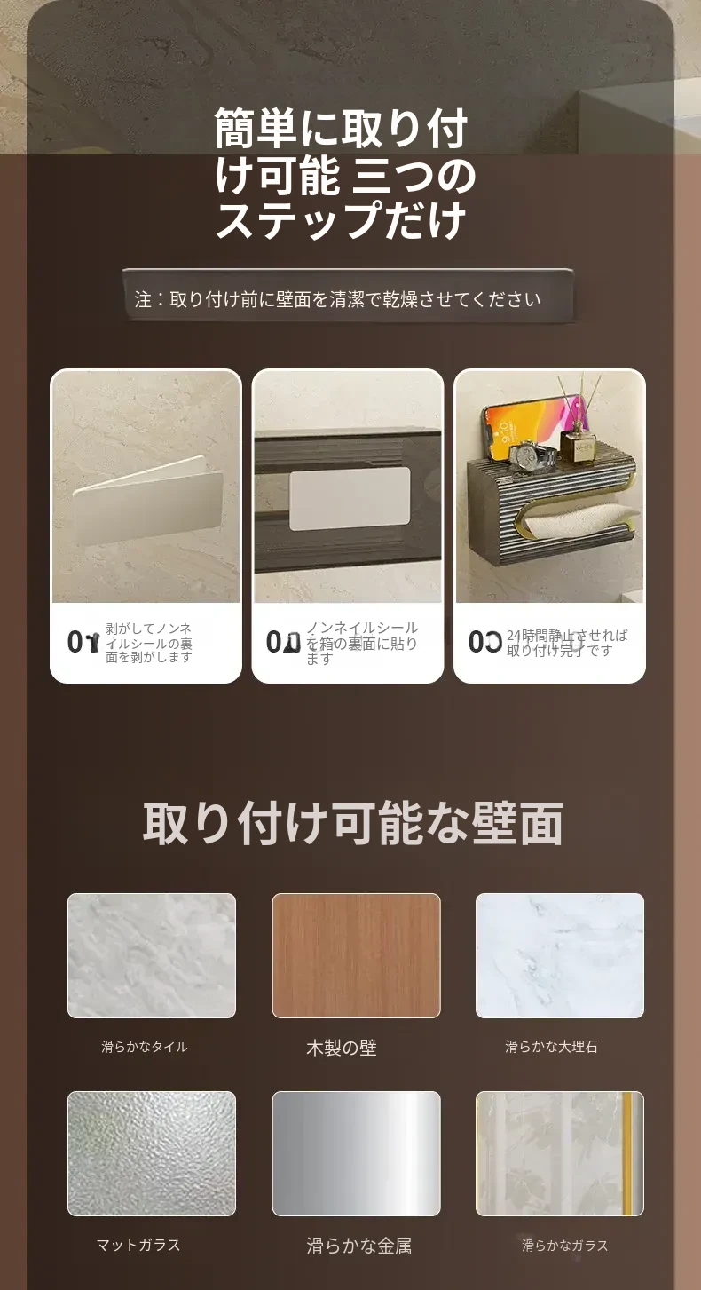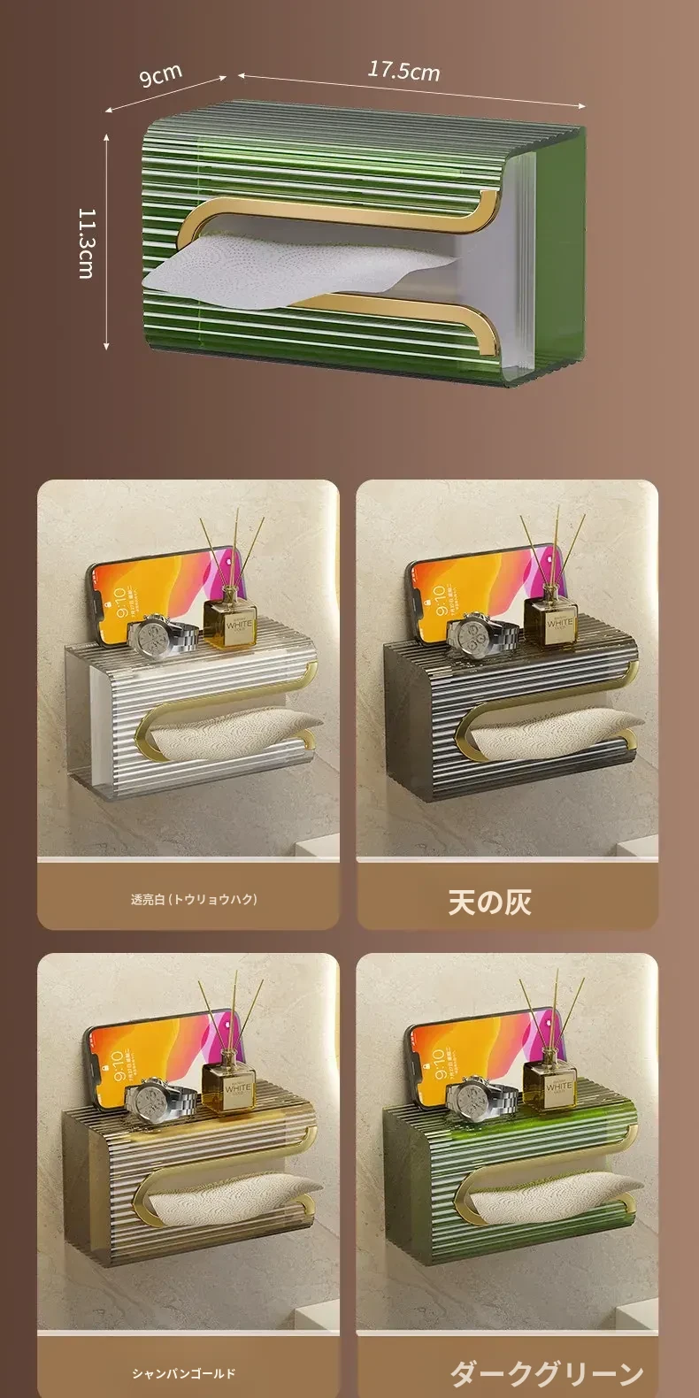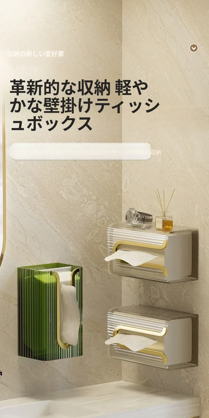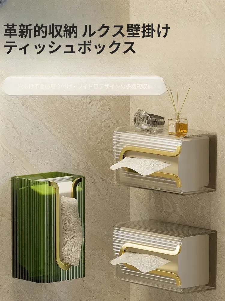 壁掛け式ティッシュボックス|家庭用トイレに最適|洗顔・フェイスタオル収納も可能|キッチンやダイニングでのナプキン整理に最適|倒掛けデザインで省スペース&スタイリッシュ!