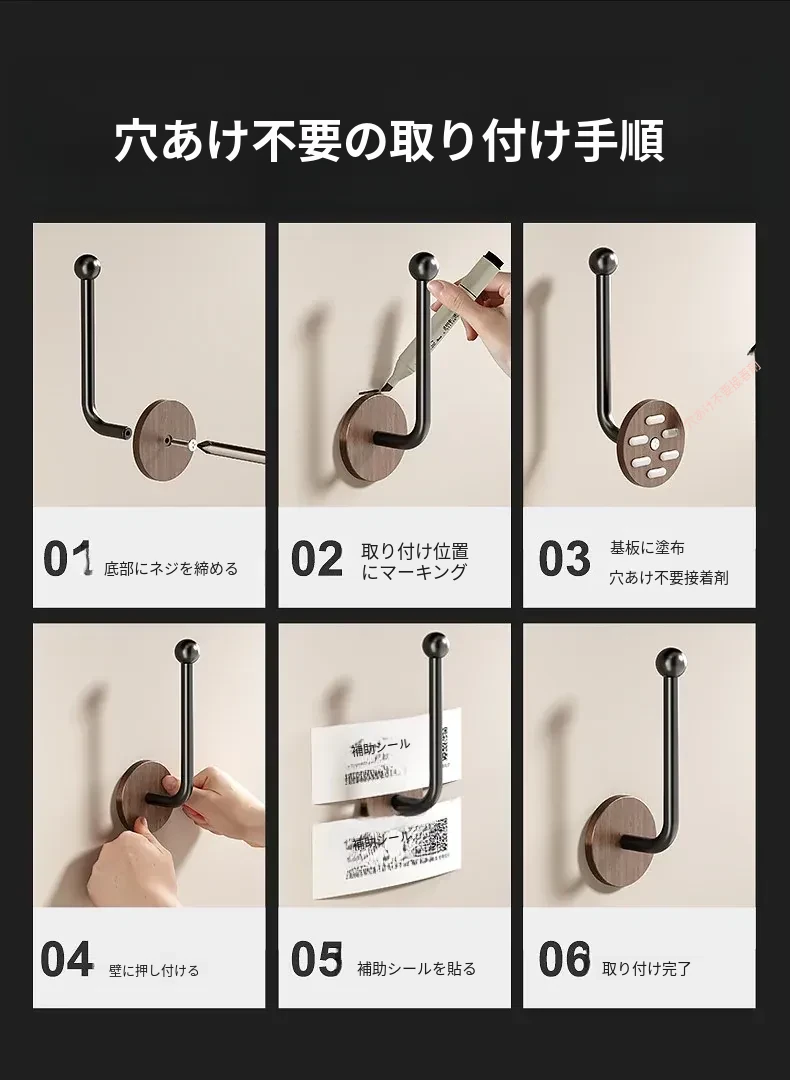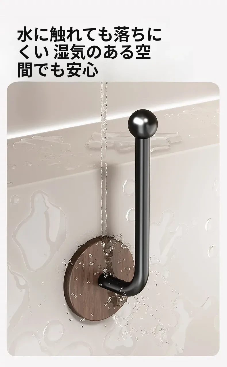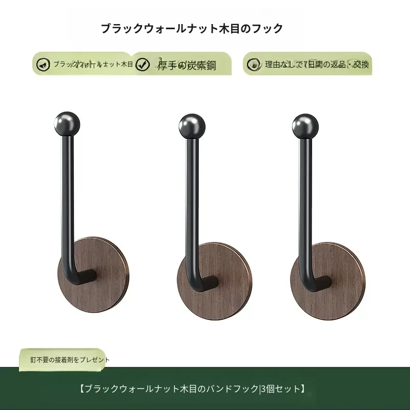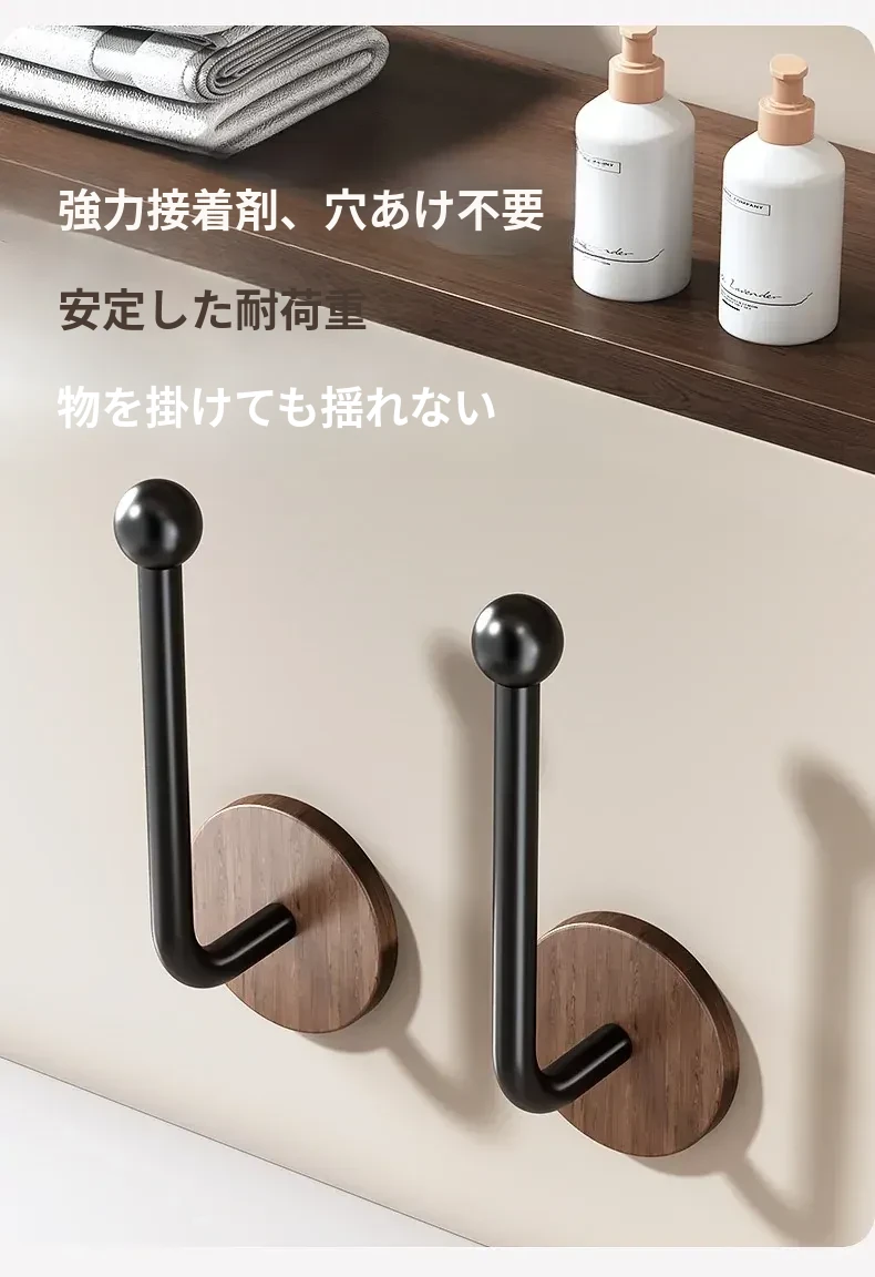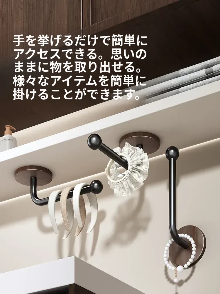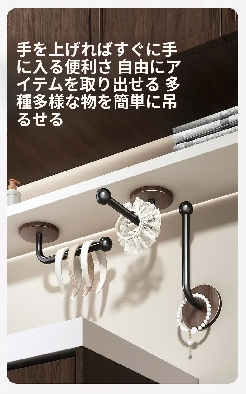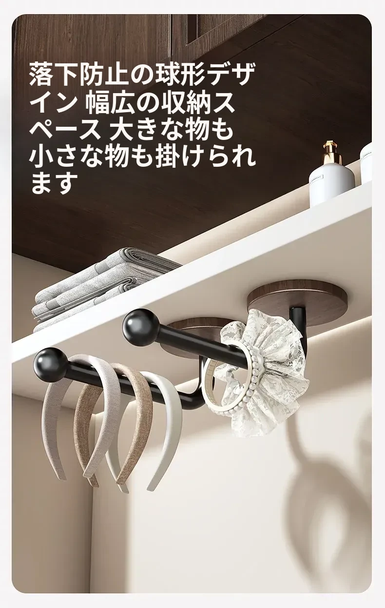 くるみ材のヘアバンドフック付き壁掛け収納!穴あけ不要で簡単取り付け、ヘアゴムやヘアアクセサリーをスッキリ整理。おしゃれなデザインでバスルームを美しく飾ります!