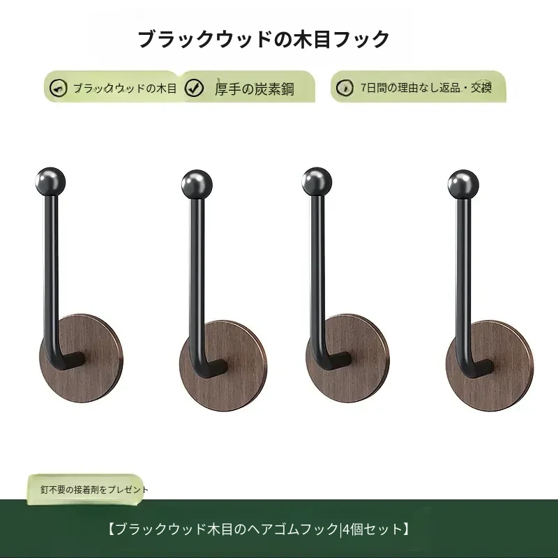 ウォールナット木目●ヘアゴムフック【4個入り】