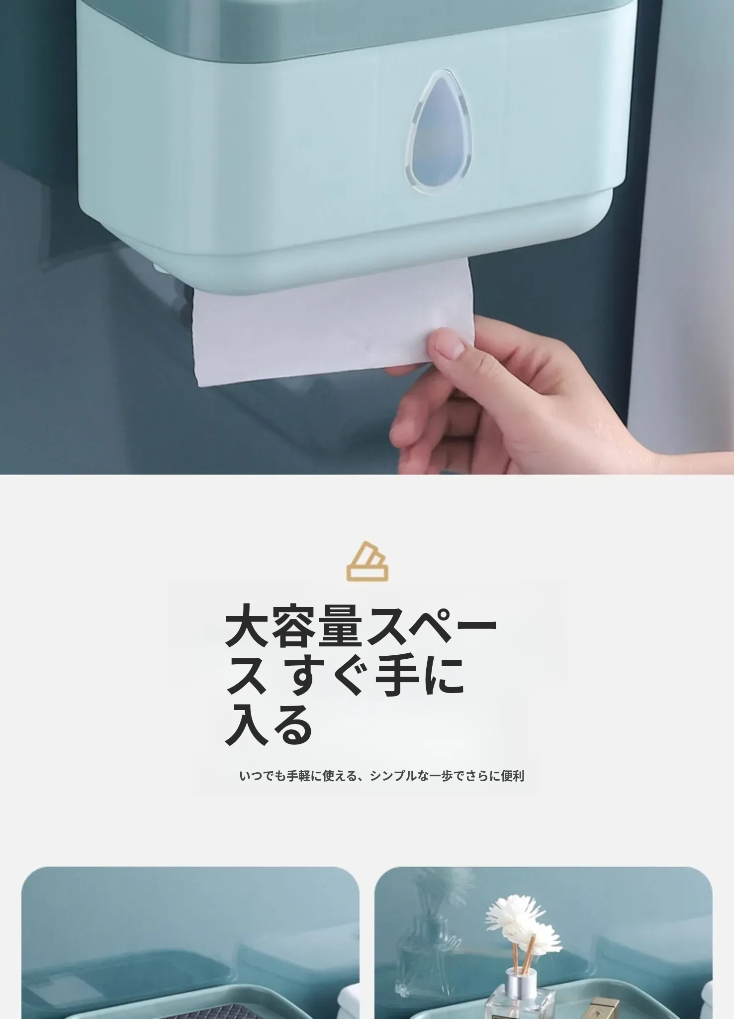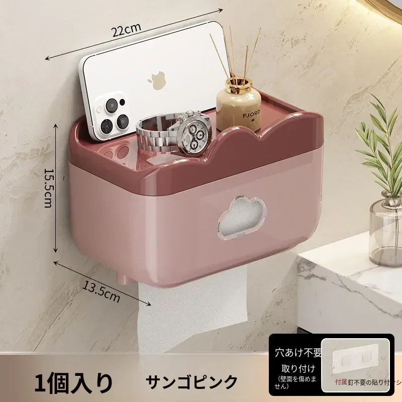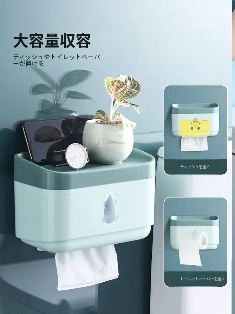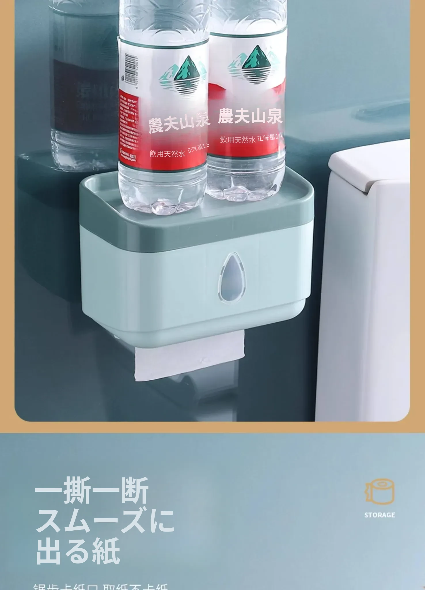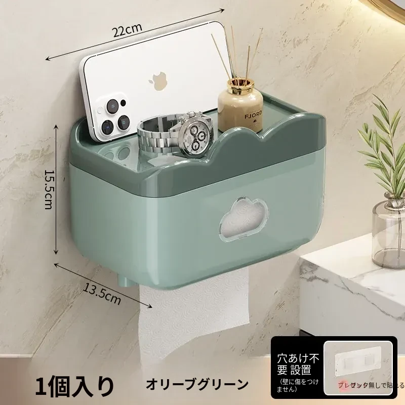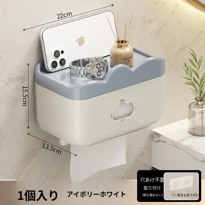 トイレ用ペーパーケース・ウォールマウント式!水に強く、穴あけ不要で簡単取り付け。家庭用のトイレットペーパー収納にも最適!清潔感あふれるデザインで、トイレをスタイリッシュに演出します。