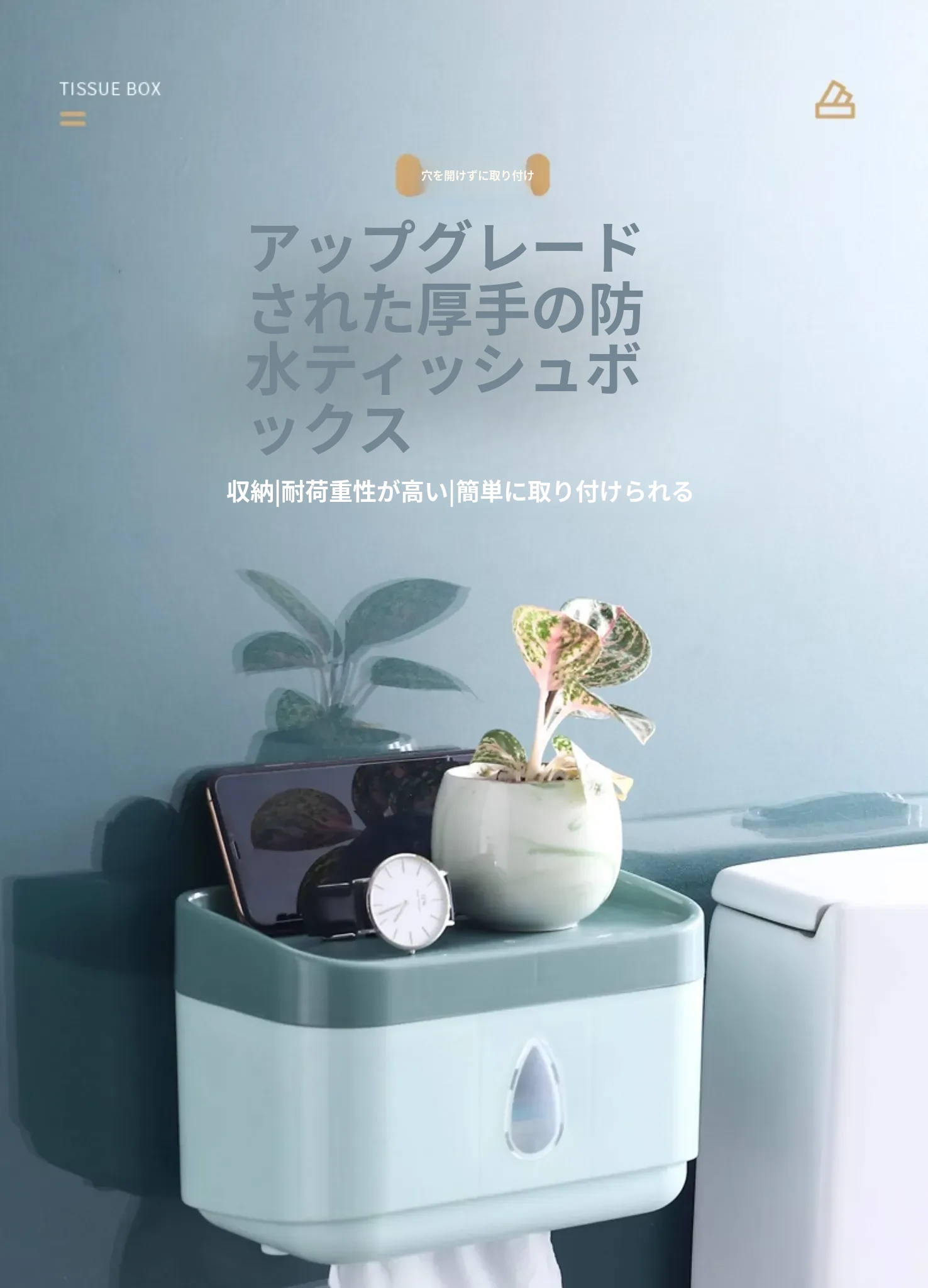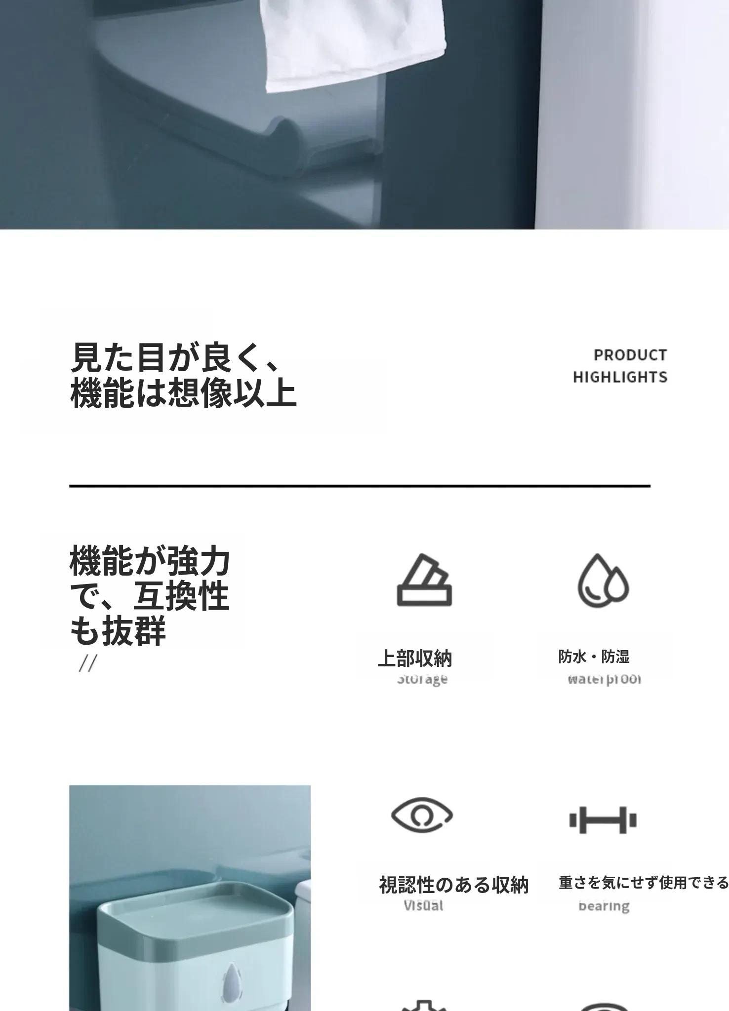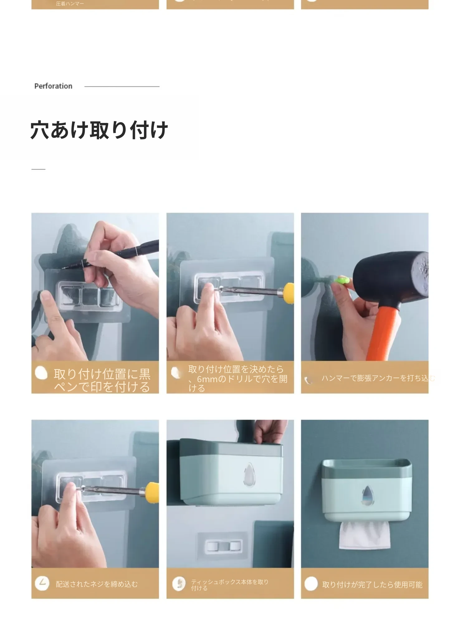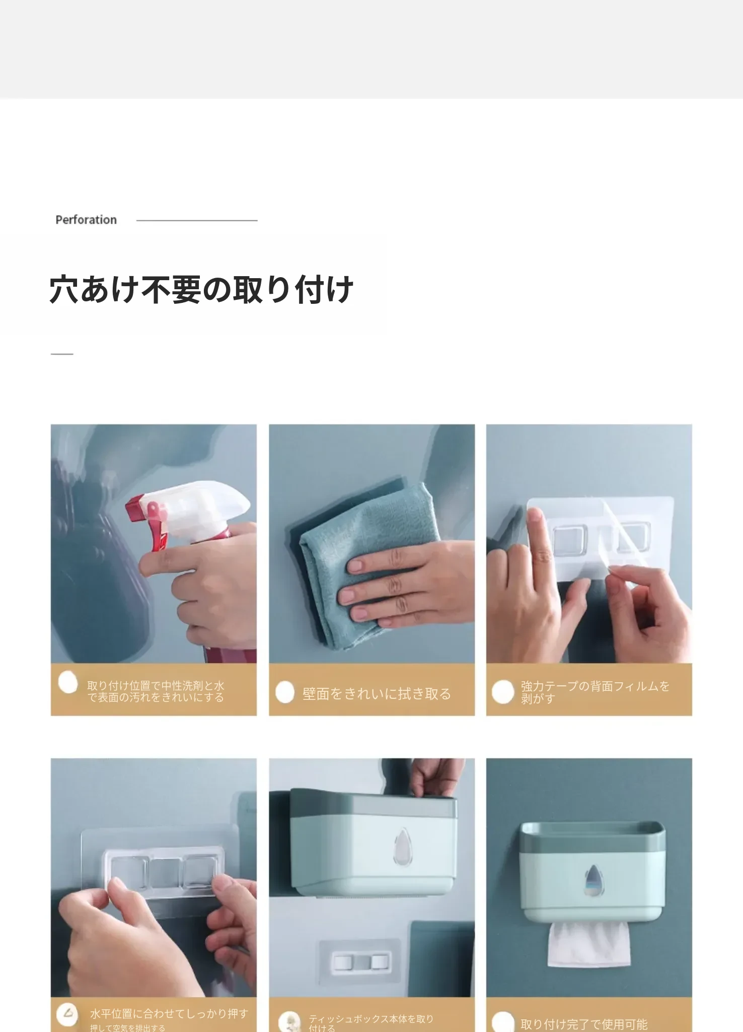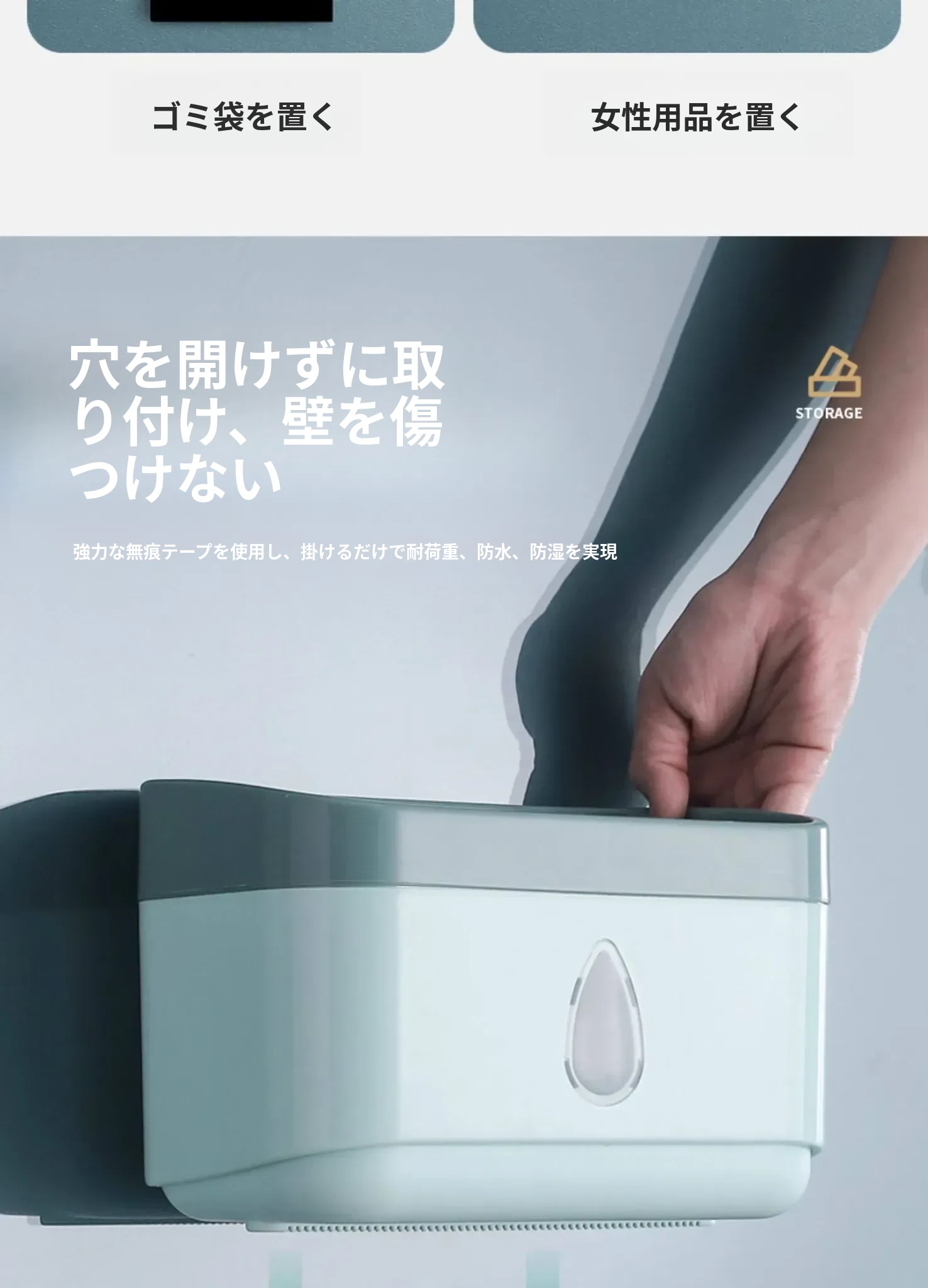トイレ用ペーパーケース・ウォールマウント式!水に強く、穴あけ不要で簡単取り付け。家庭用のトイレットペーパー収納にも最適!清潔感あふれるデザインで、トイレをスタイリッシュに演出します。