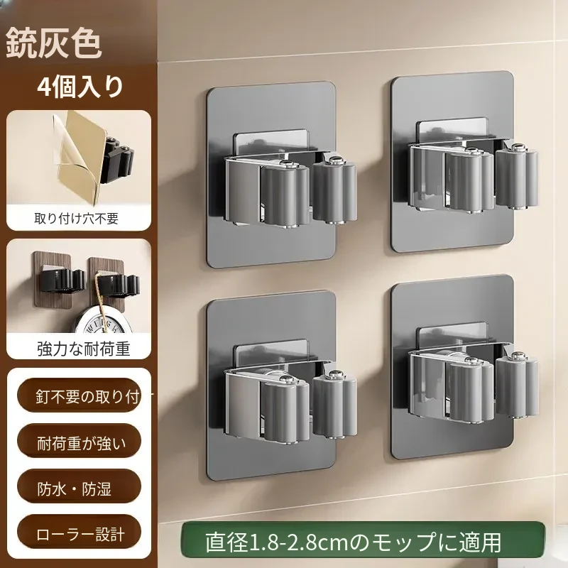 【ガンメタルカラー】モップ壁掛けクリップ✅4個入り