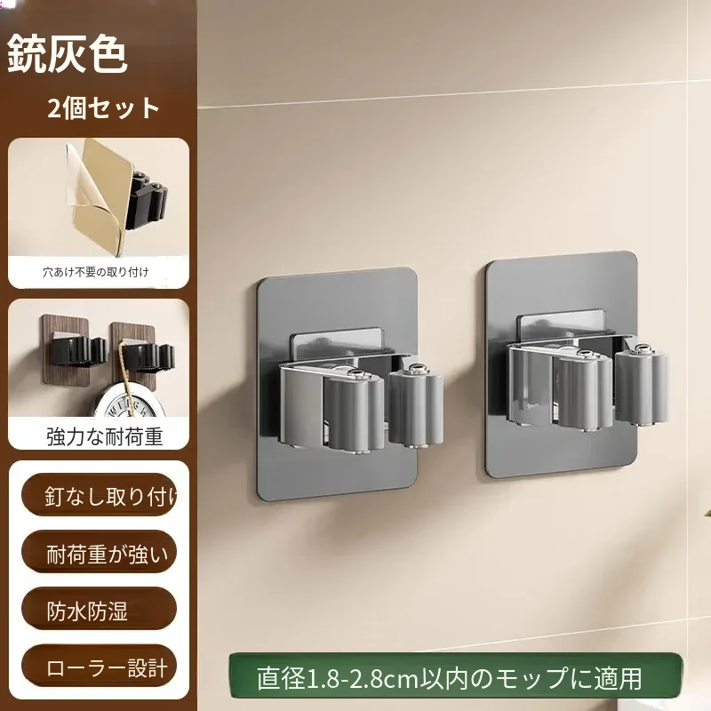 【ガンメタルカラー】モップ壁掛けクリップ✅2個入り