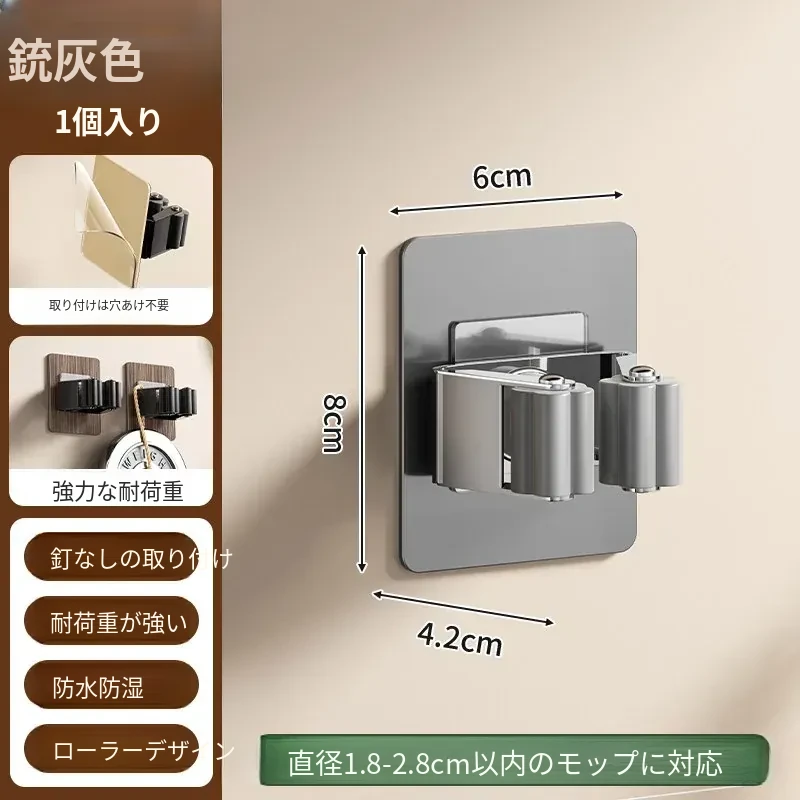 【ガンメタルカラー】モップ壁掛けクリップ✅1個入り