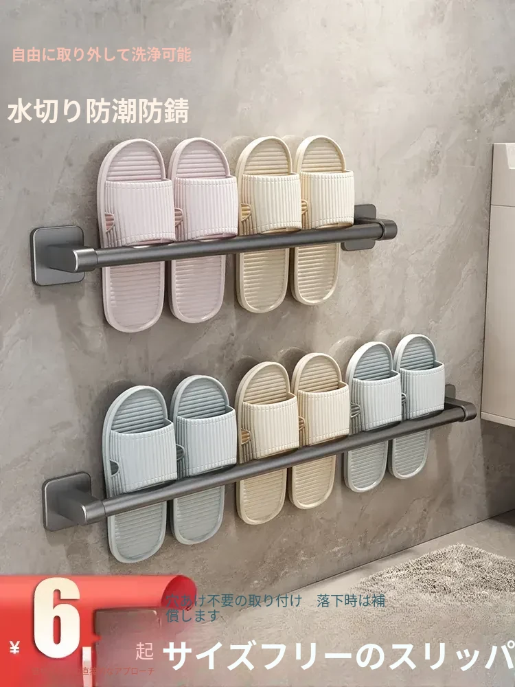 穴あけ不要!バスルームスリッパラック - 清潔感あふれるトイレ用壁掛け収納。水切り機能付きで、スリッパも靴もスッキリ整理!省スペースでおしゃれな収納を実現する便利アイテム。
