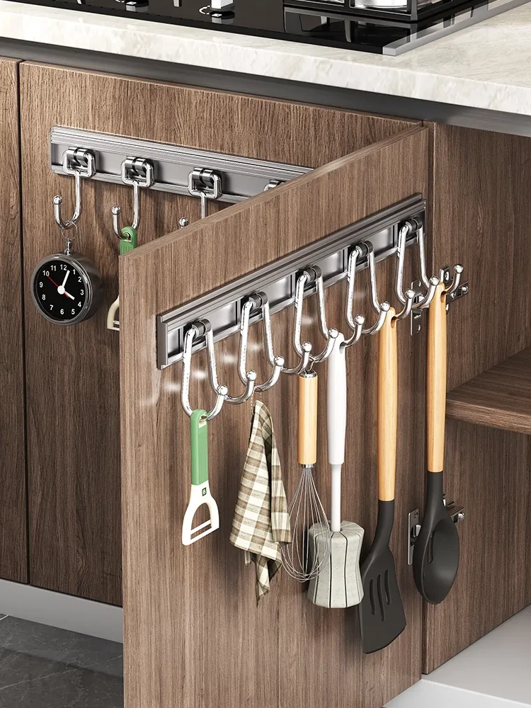 キッチン用フック 壁を傷つけずに取り付けできる収納スライドレール!扉の裏にスプーンやヘラをスマートに収納できる便利グッズ!整理整頓が簡単にできる魔法の収納ラック!