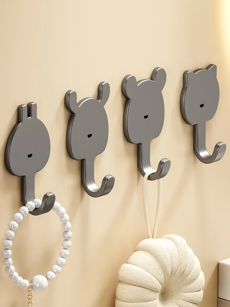 強力粘着フック - 穴なしで簡単取り付け!キッチンやバスルームの壁に最適、傷跡なしで服をしっかり掛けられるフック。おしゃれで実用的な収納ソリューション!